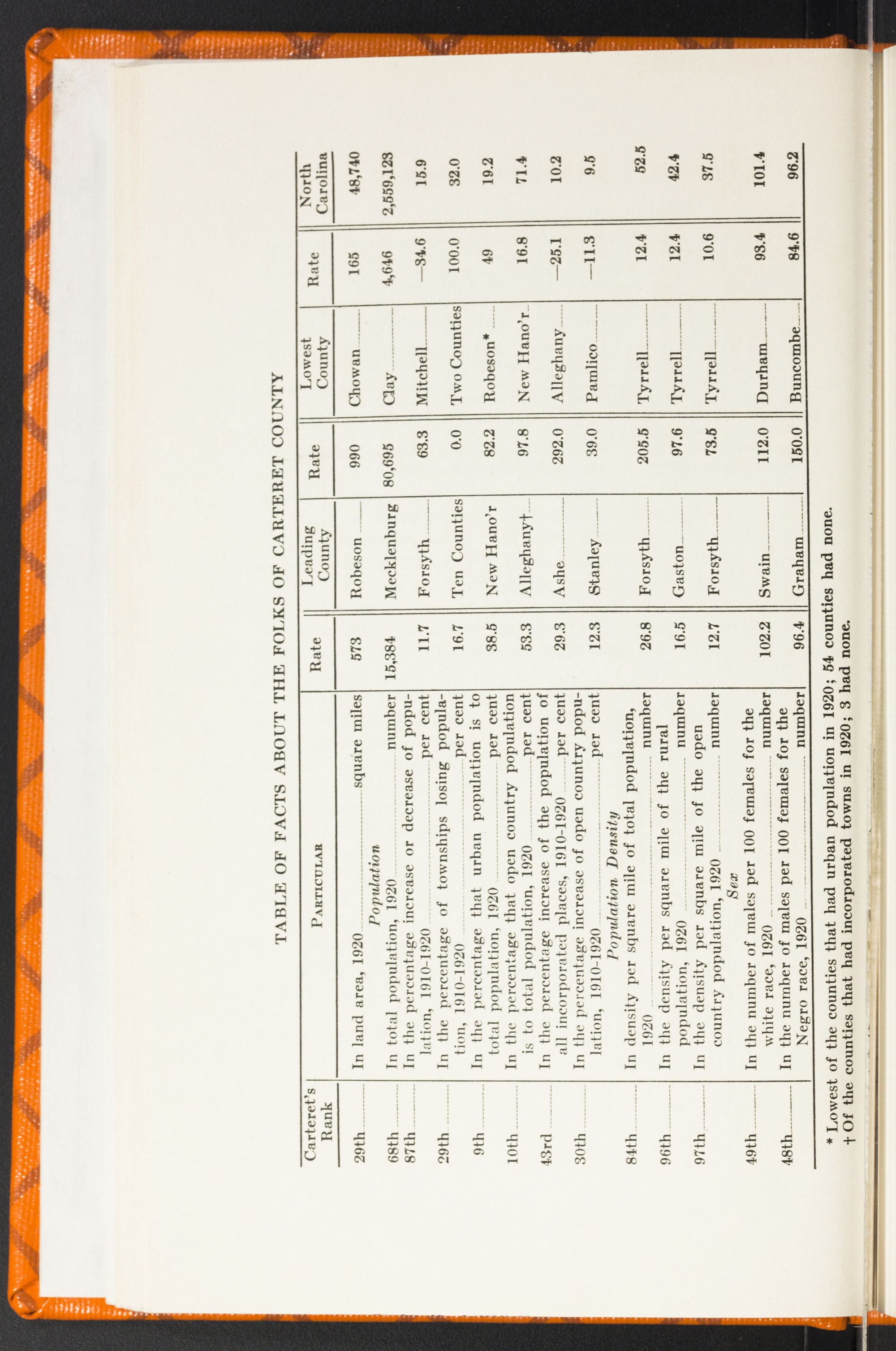 | 80th | Number of pupils having more than 160 days in rural schools, 1924 | 677 | Gaston | 7,732 | Tyrrell | 329 | |
