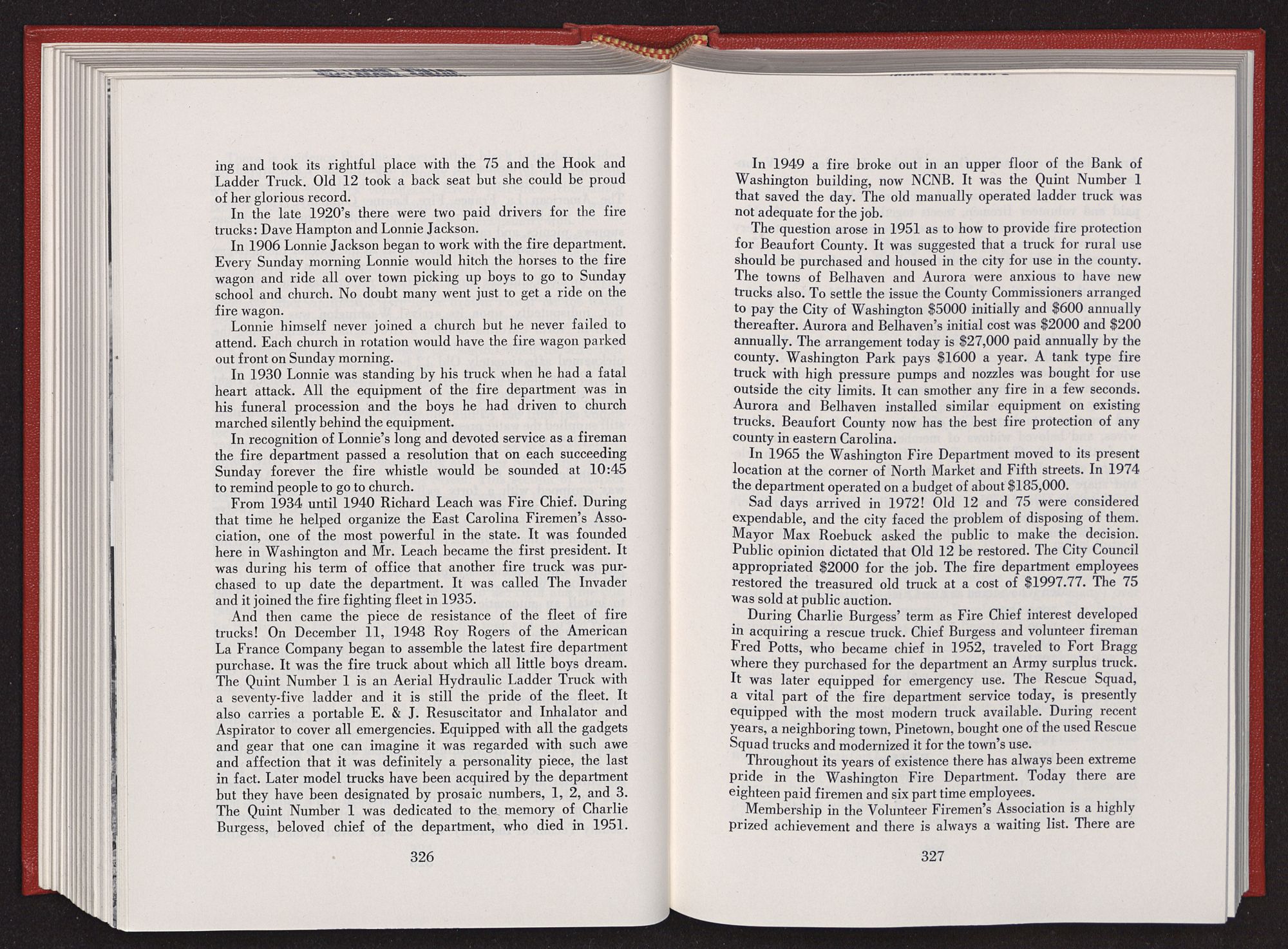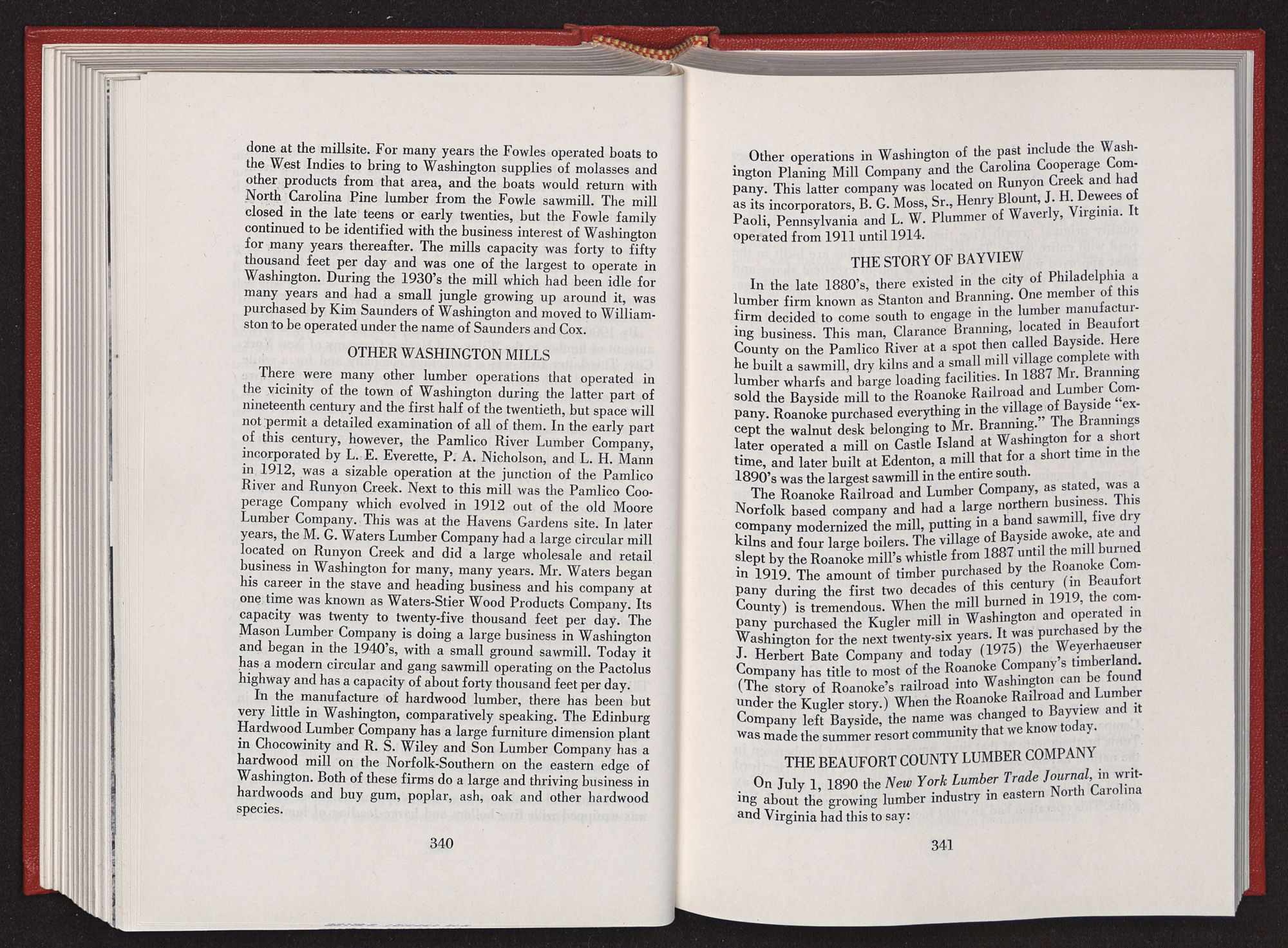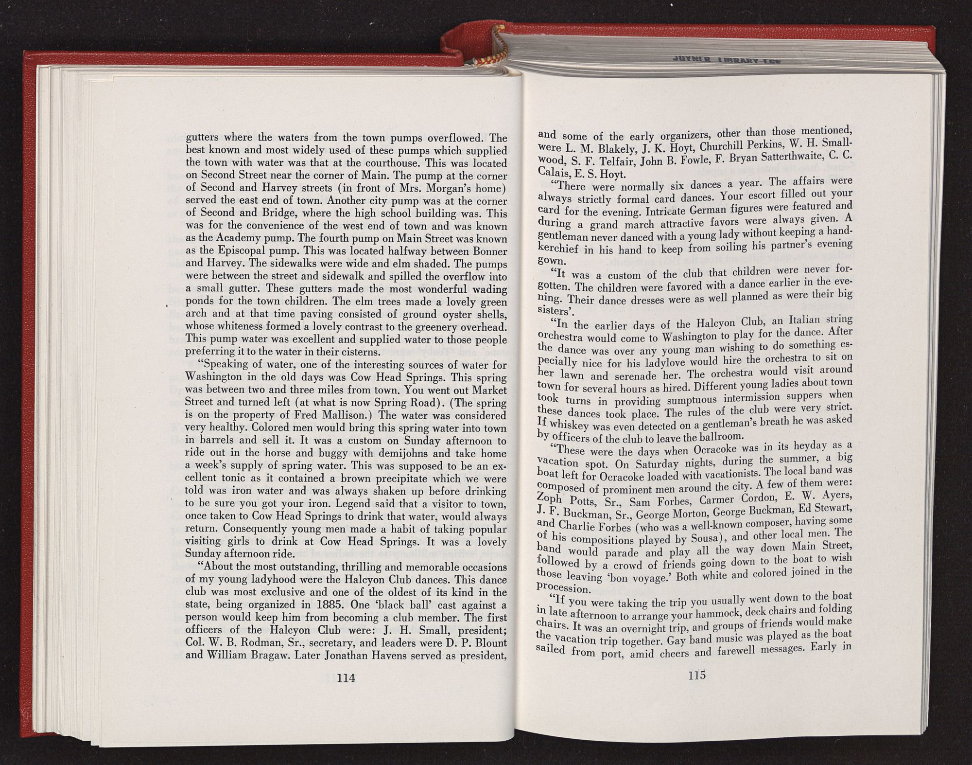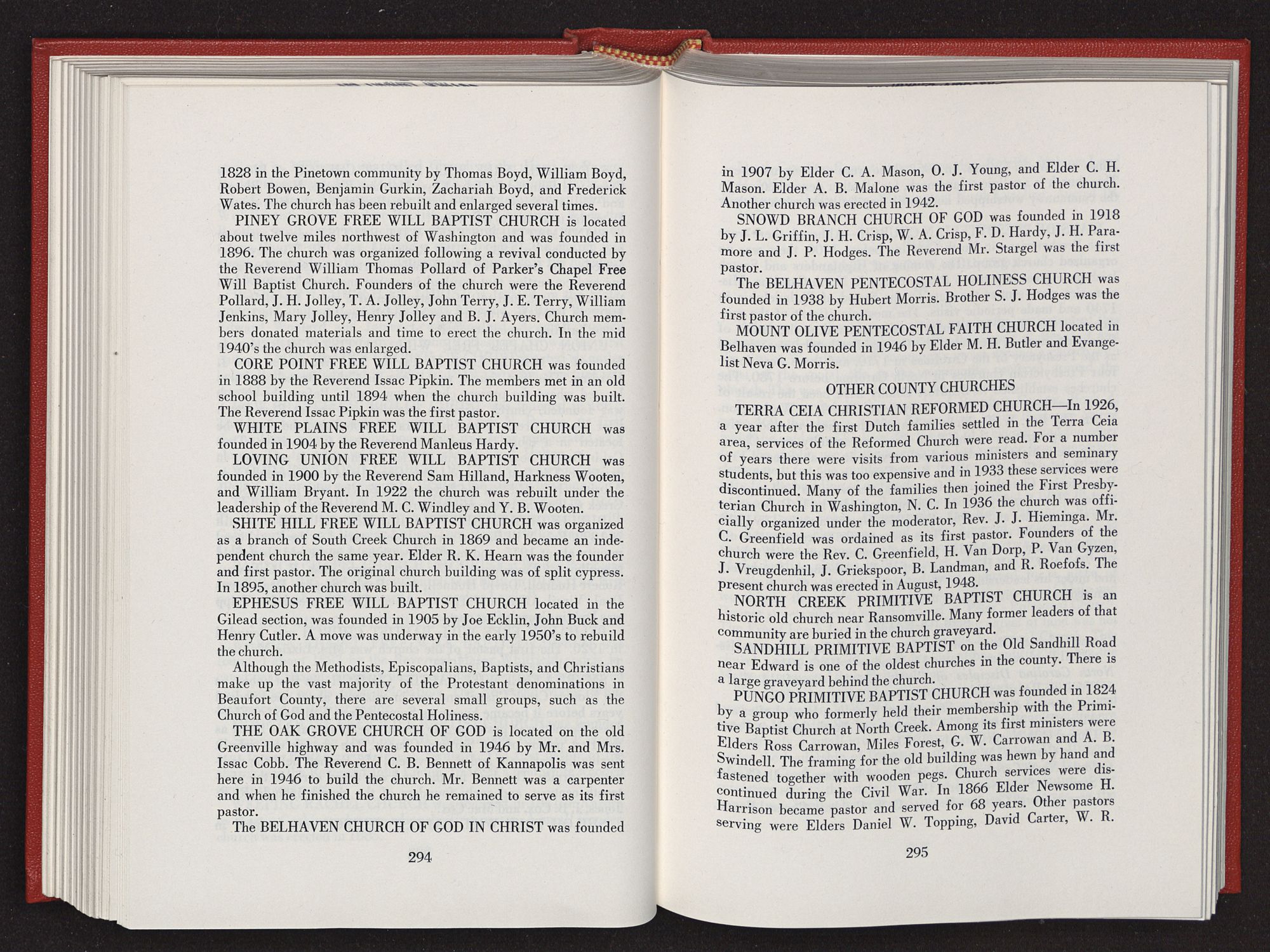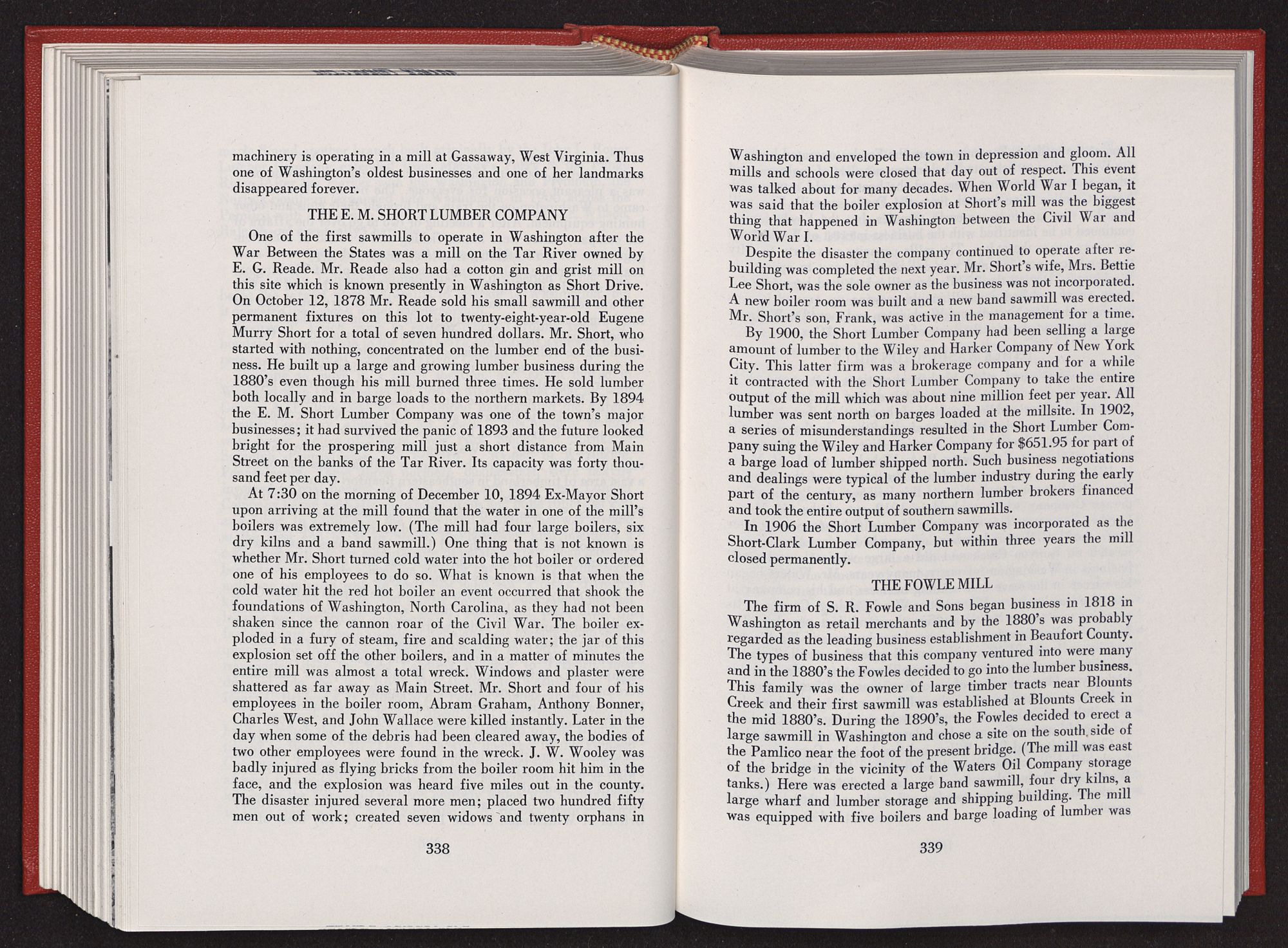FOREWORDActing on instructions from the Washington-Beaufort County Bicentennial Commission with Roland Modlin, Chairman, the History Committee, under the Chairmanship of John Morgan, began in 1974 a history of the Washington area. The committee decided to use articles which spoke more graphically of their periods than those written today as the chronological base for the history, and to enlist the aid of a number of people in researching and writing in the areas in which they were interested. The result is a collection of articles, both old and new, which supplements the earlier work, Beaufort County: Two Centuries of its History by Colonel Wingate Reed, and brings to print much data heretofore not published. Hundreds of people have been interviewed. Records, letters, ledgers and scrapbooks have been brought from attics and used. Old newspapers have been collected and consulted. Much had to be omitted but the committee hopes that further volumes of Beaufort County history will follow. Quantities of material are now available and more is constantly accumulating, which has not been touched in this volume. This material is in the files at the George H. and Laura E. Brown Library where the data used for this book is stored.