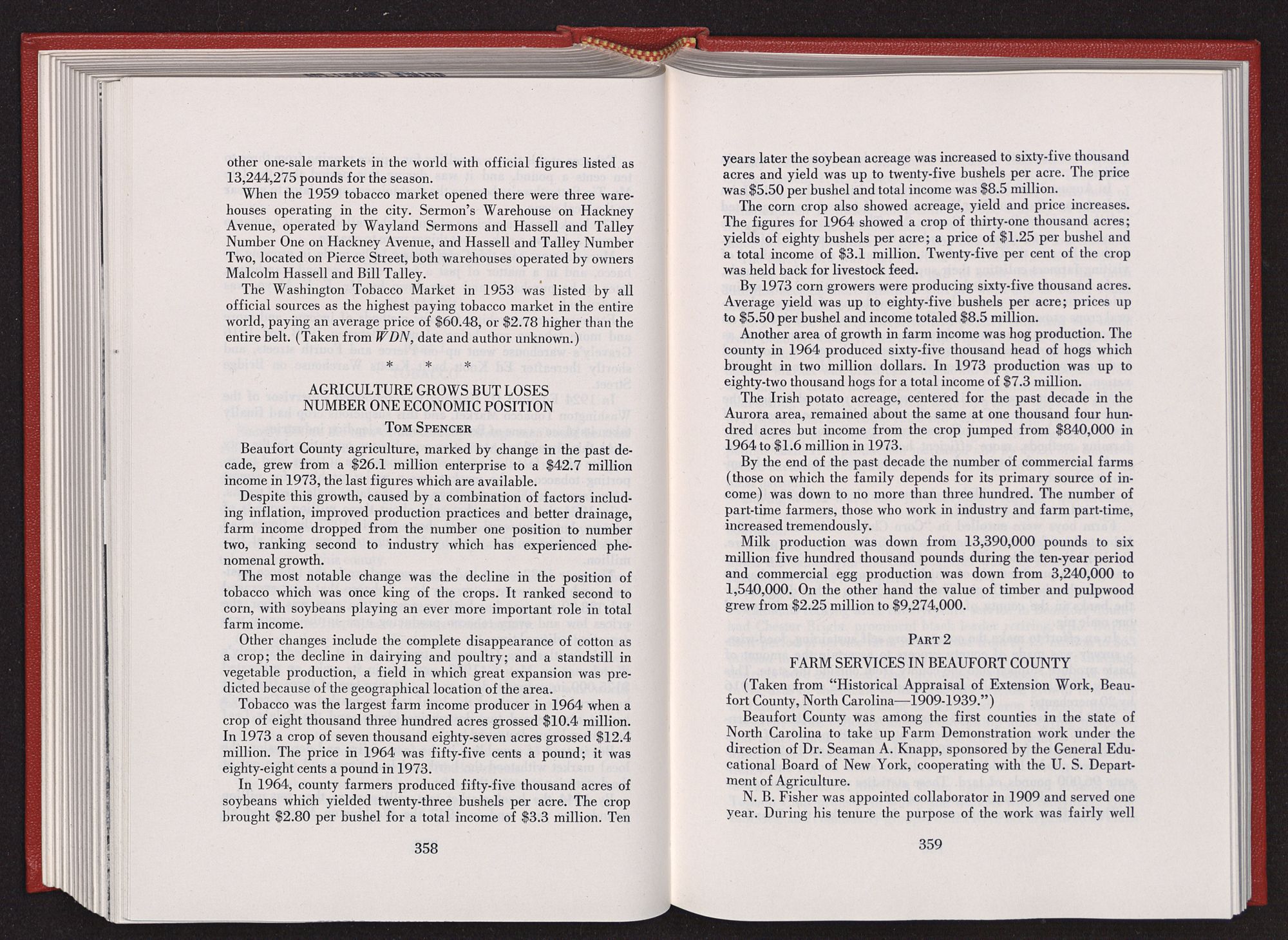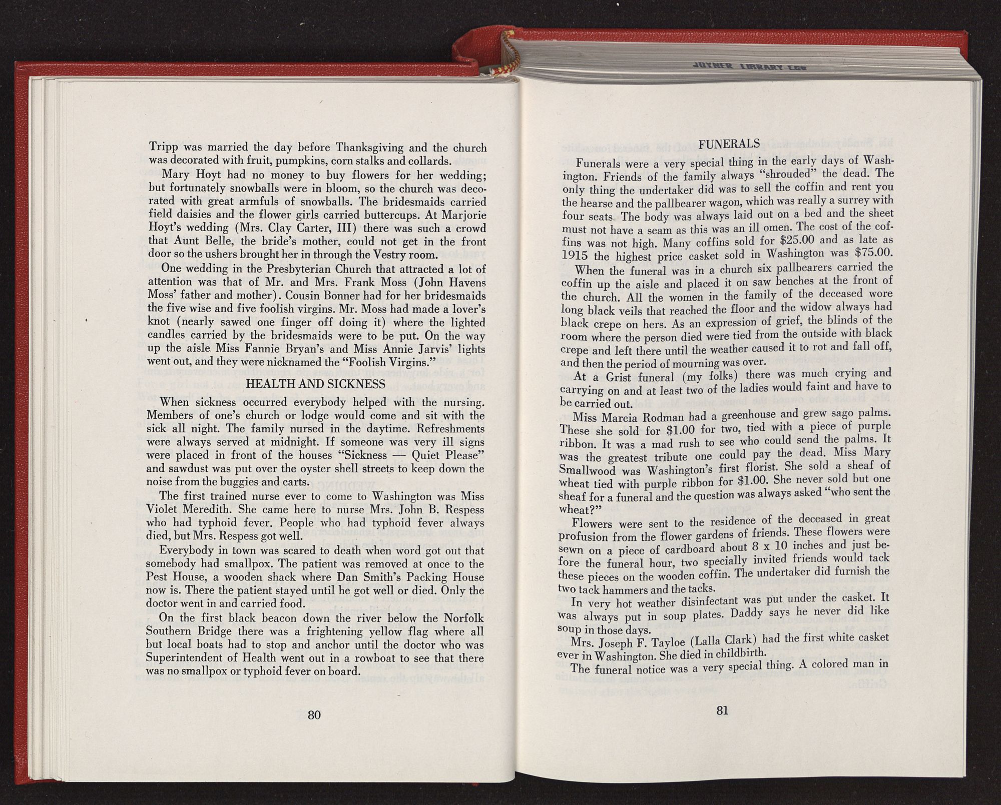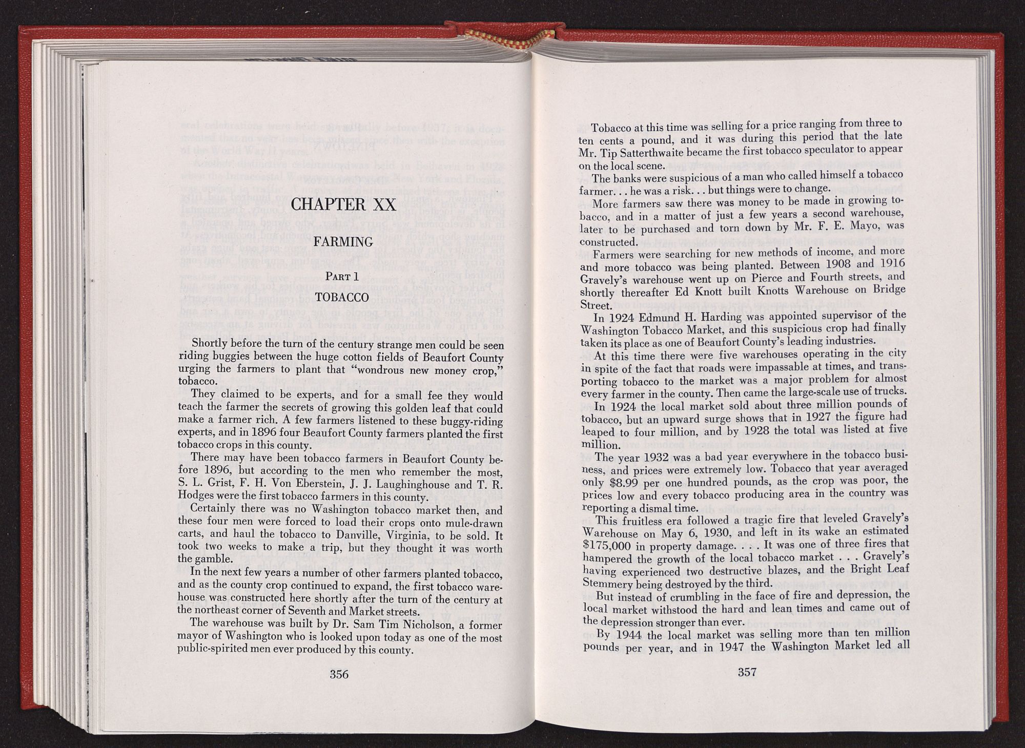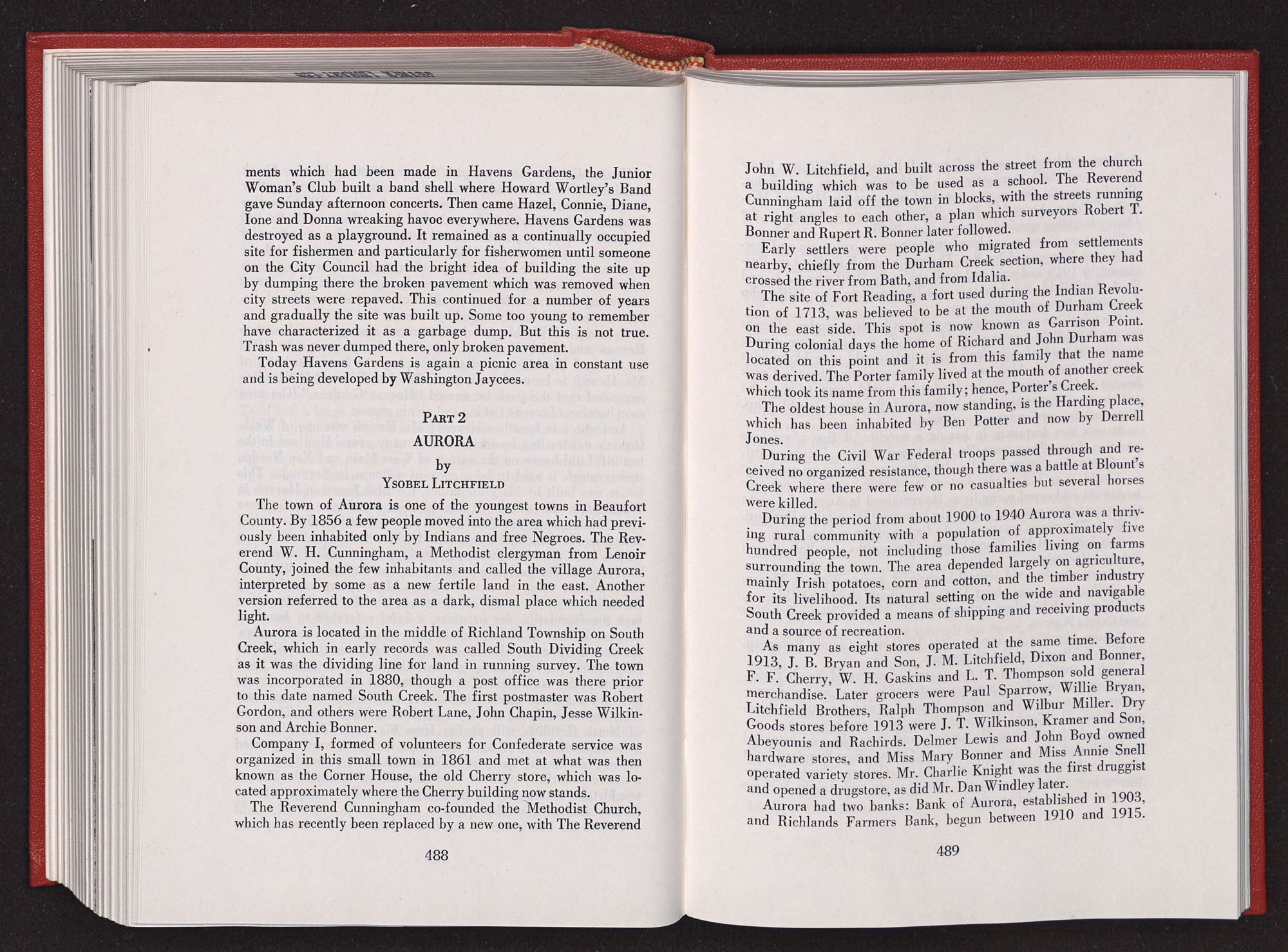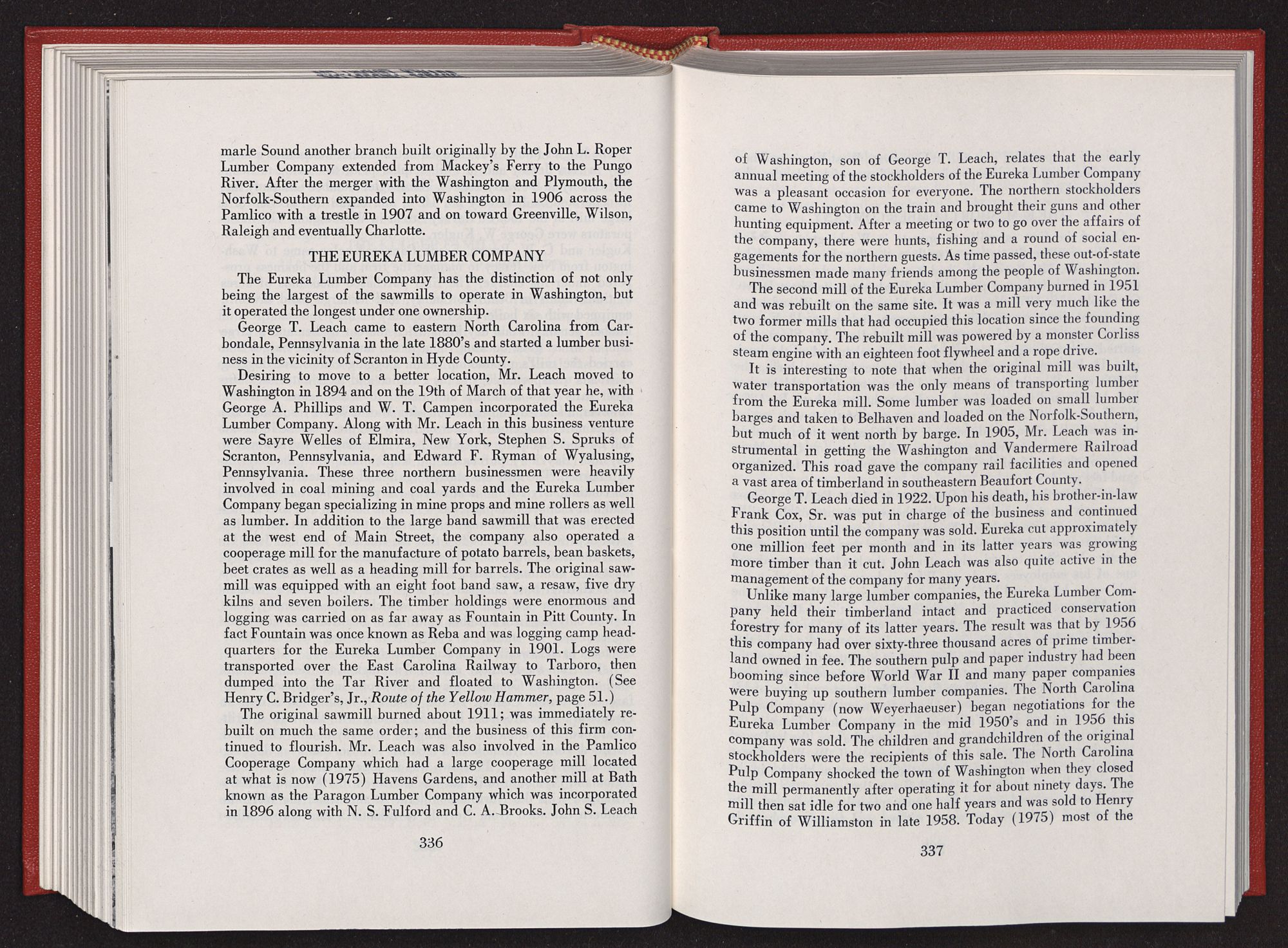 FOREWORDActing on instructions from the Washington-Beaufort County Bicentennial Commission with Roland Modlin, Chairman, the History Committee, under the Chairmanship of John Morgan, began in 1974 a history of the Washington area. The committee decided to use articles which spoke more graphically of their periods than those written today as the chronological base for the history, and to enlist the aid of a number of people in researching and writing in the areas in which they were interested. The result is a collection of articles, both old and new, which supplements the earlier work, Beaufort County: Two Centuries of its History by Colonel Wingate Reed, and brings to print much data heretofore not published. Hundreds of people have been interviewed. Records, letters, ledgers and scrapbooks have been brought from attics and used. Old newspapers have been collected and consulted. Much had to be omitted but the committee hopes that further volumes of Beaufort County history will follow. Quantities of material are now available and more is constantly accumulating, which has not been touched in this volume. This material is in the files at the George H. and Laura E. Brown Library where the data used for this book is stored.
