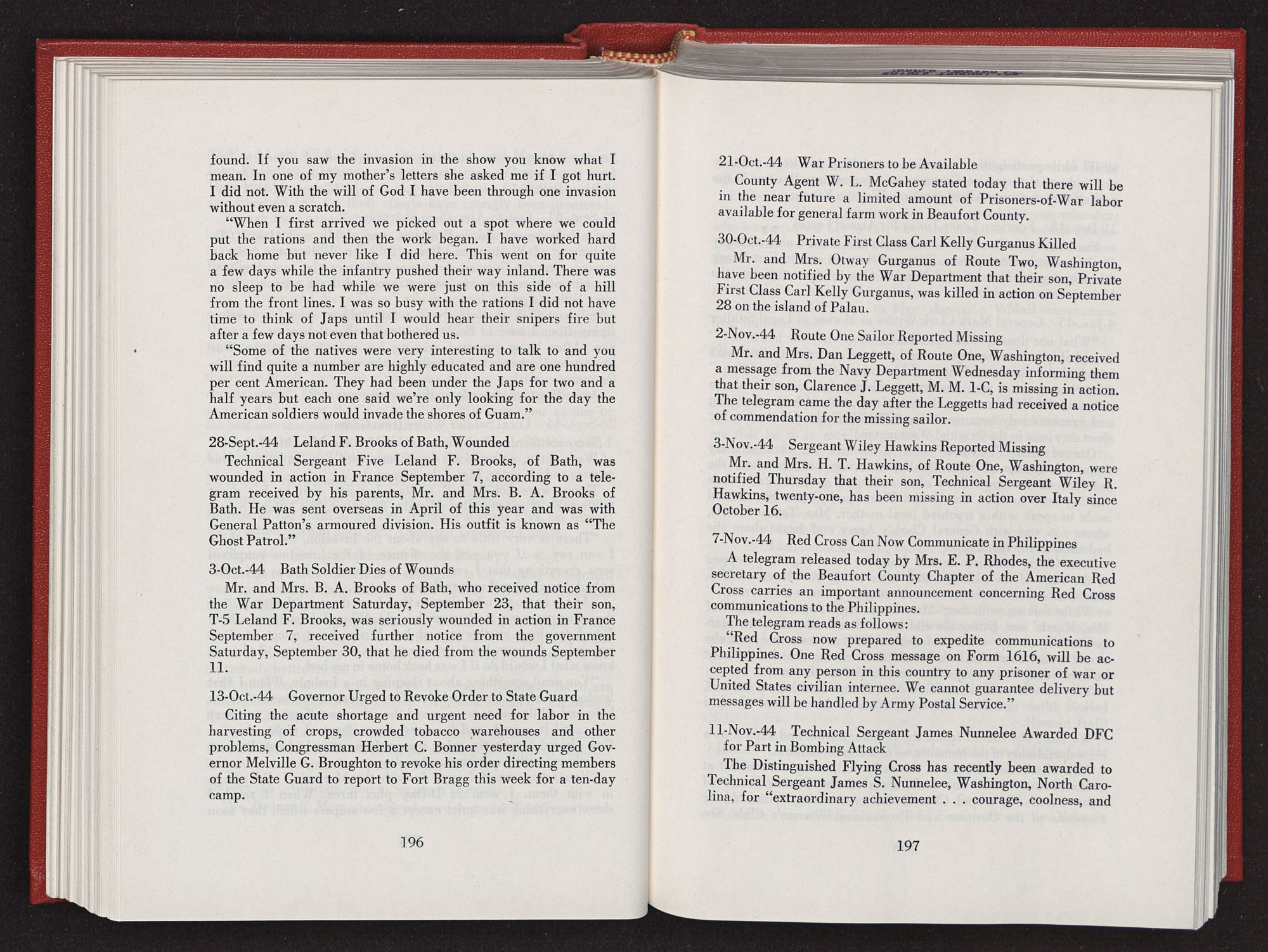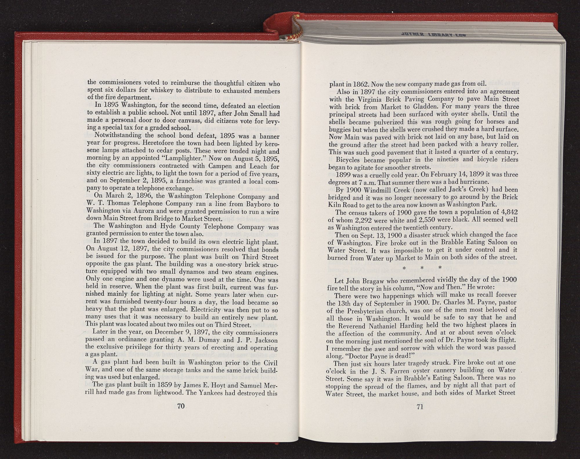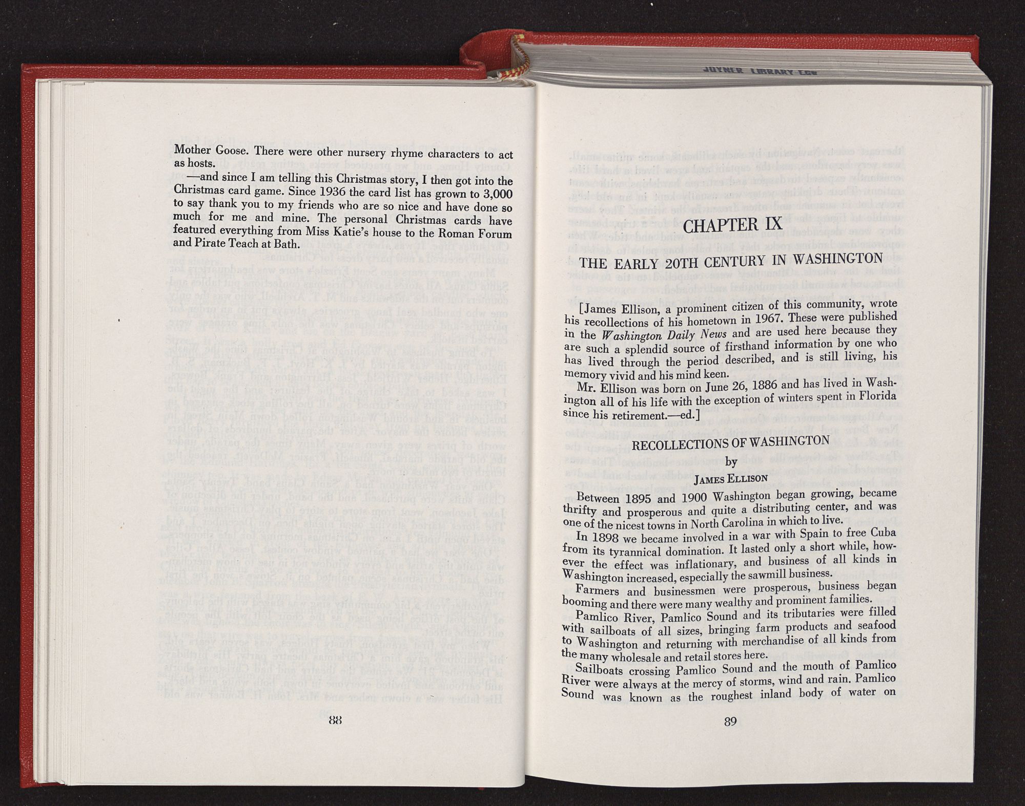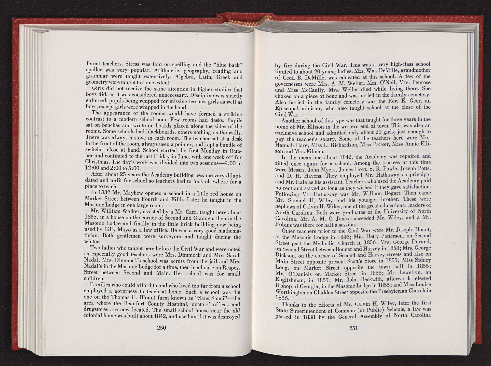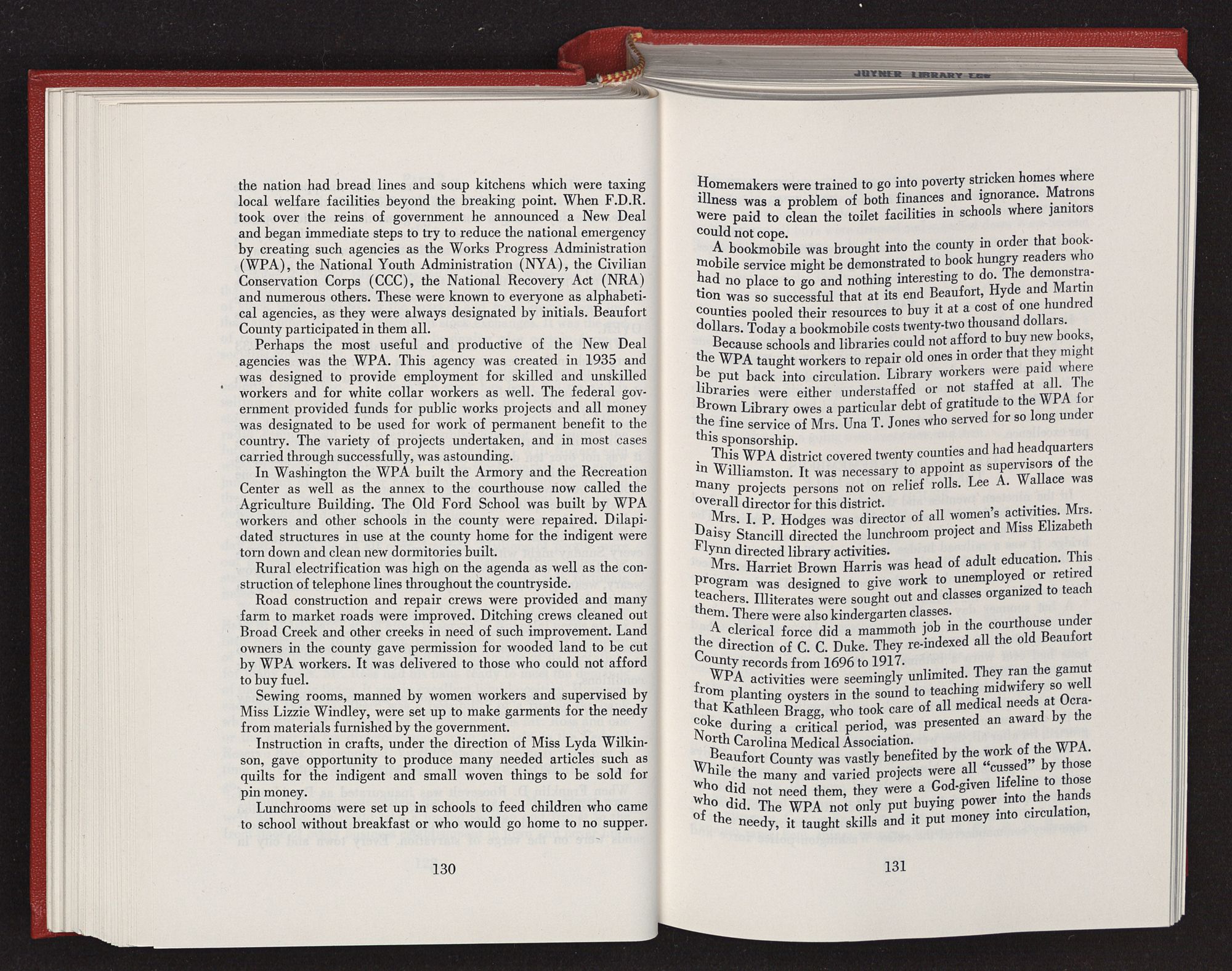 FOREWORDActing on instructions from the Washington-Beaufort County Bicentennial Commission with Roland Modlin, Chairman, the History Committee, under the Chairmanship of John Morgan, began in 1974 a history of the Washington area. The committee decided to use articles which spoke more graphically of their periods than those written today as the chronological base for the history, and to enlist the aid of a number of people in researching and writing in the areas in which they were interested. The result is a collection of articles, both old and new, which supplements the earlier work, Beaufort County: Two Centuries of its History by Colonel Wingate Reed, and brings to print much data heretofore not published. Hundreds of people have been interviewed. Records, letters, ledgers and scrapbooks have been brought from attics and used. Old newspapers have been collected and consulted. Much had to be omitted but the committee hopes that further volumes of Beaufort County history will follow. Quantities of material are now available and more is constantly accumulating, which has not been touched in this volume. This material is in the files at the George H. and Laura E. Brown Library where the data used for this book is stored.