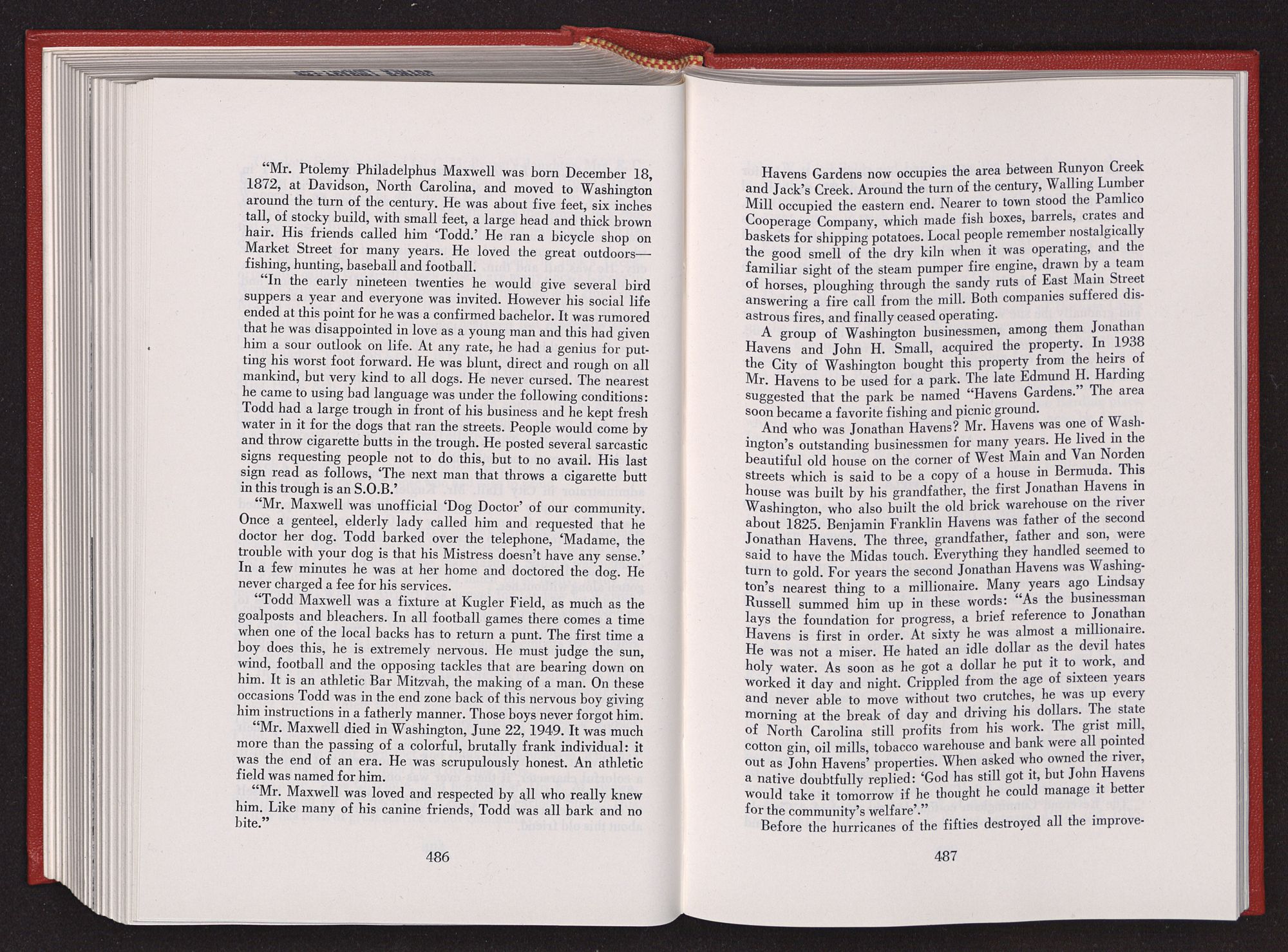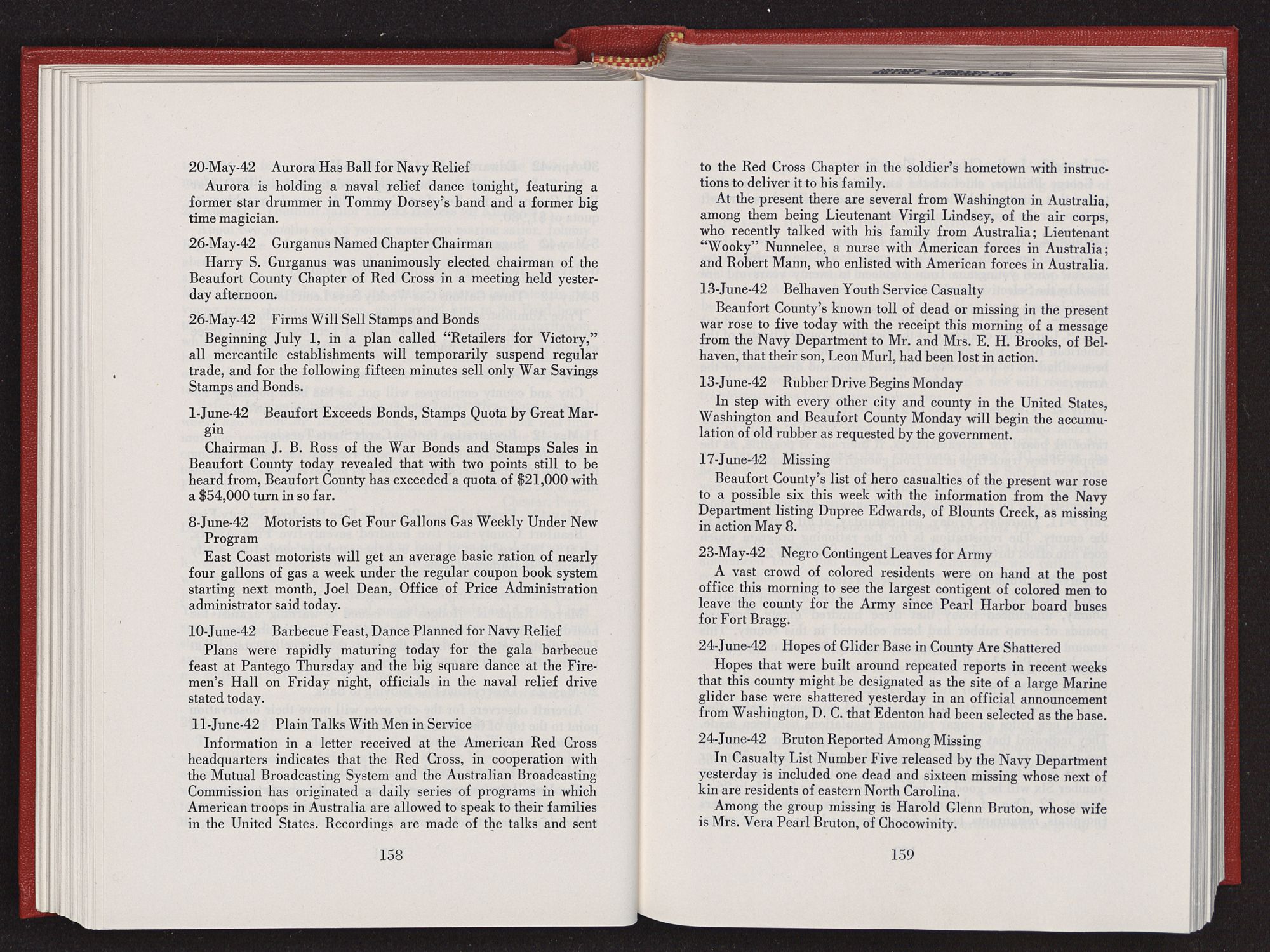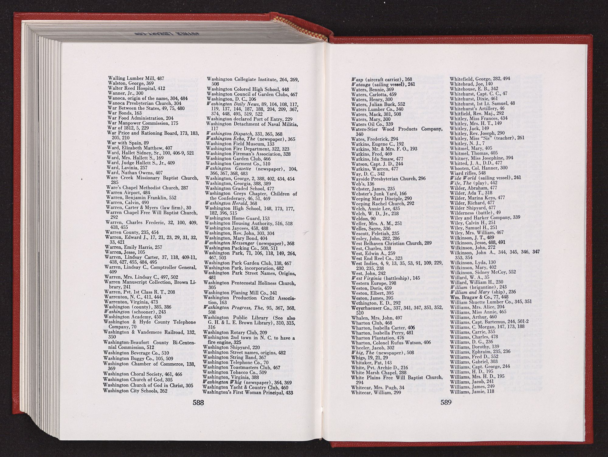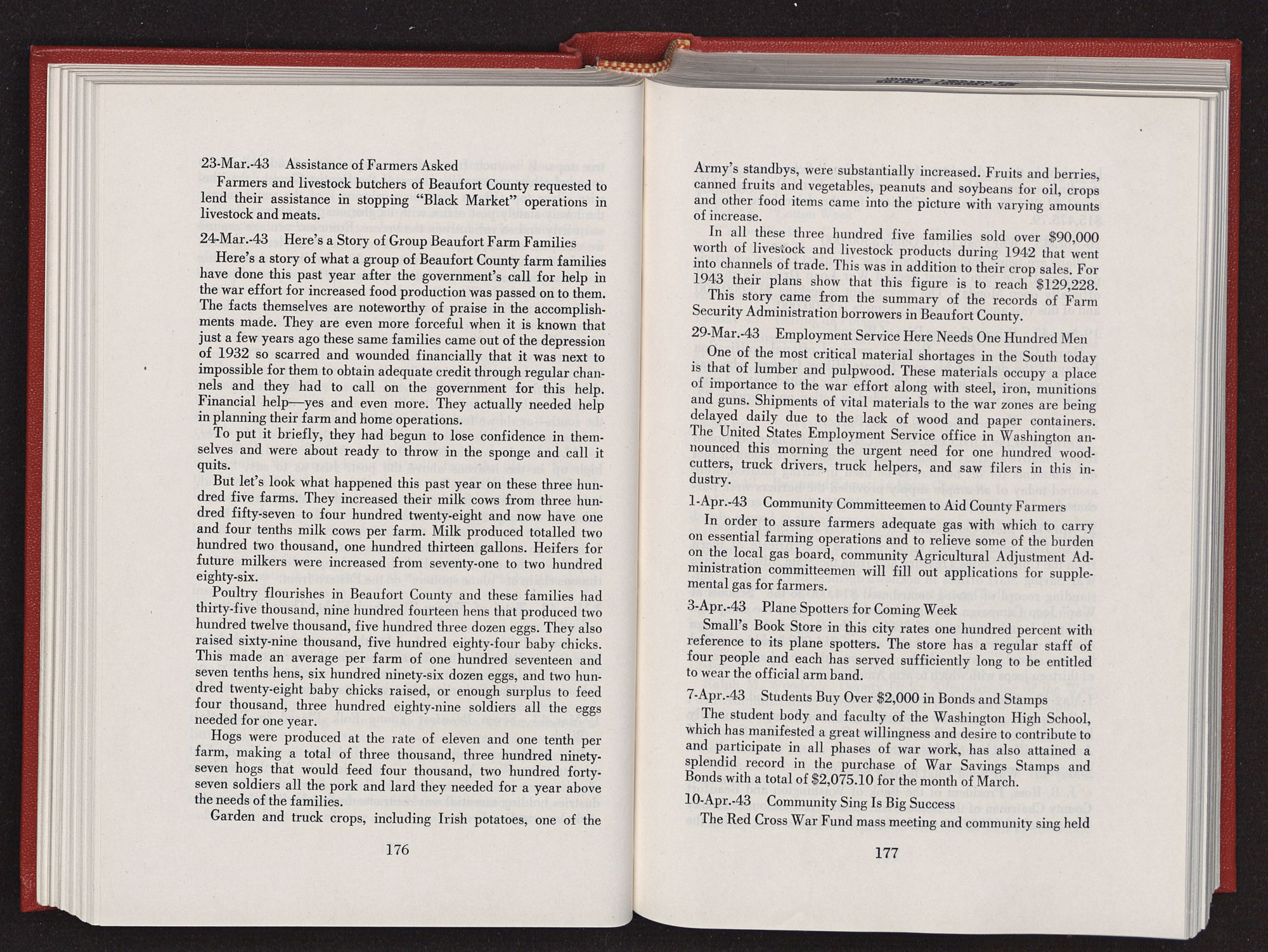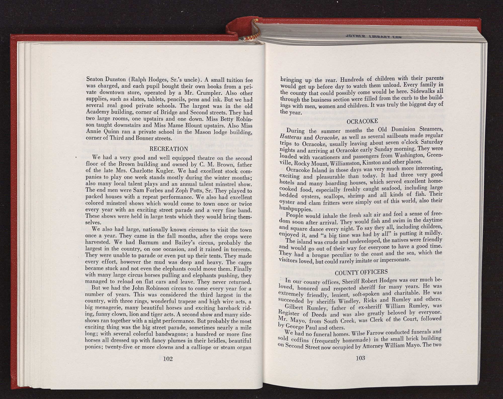 FOREWORDActing on instructions from the Washington-Beaufort County Bicentennial Commission with Roland Modlin, Chairman, the History Committee, under the Chairmanship of John Morgan, began in 1974 a history of the Washington area. The committee decided to use articles which spoke more graphically of their periods than those written today as the chronological base for the history, and to enlist the aid of a number of people in researching and writing in the areas in which they were interested. The result is a collection of articles, both old and new, which supplements the earlier work, Beaufort County: Two Centuries of its History by Colonel Wingate Reed, and brings to print much data heretofore not published. Hundreds of people have been interviewed. Records, letters, ledgers and scrapbooks have been brought from attics and used. Old newspapers have been collected and consulted. Much had to be omitted but the committee hopes that further volumes of Beaufort County history will follow. Quantities of material are now available and more is constantly accumulating, which has not been touched in this volume. This material is in the files at the George H. and Laura E. Brown Library where the data used for this book is stored.
