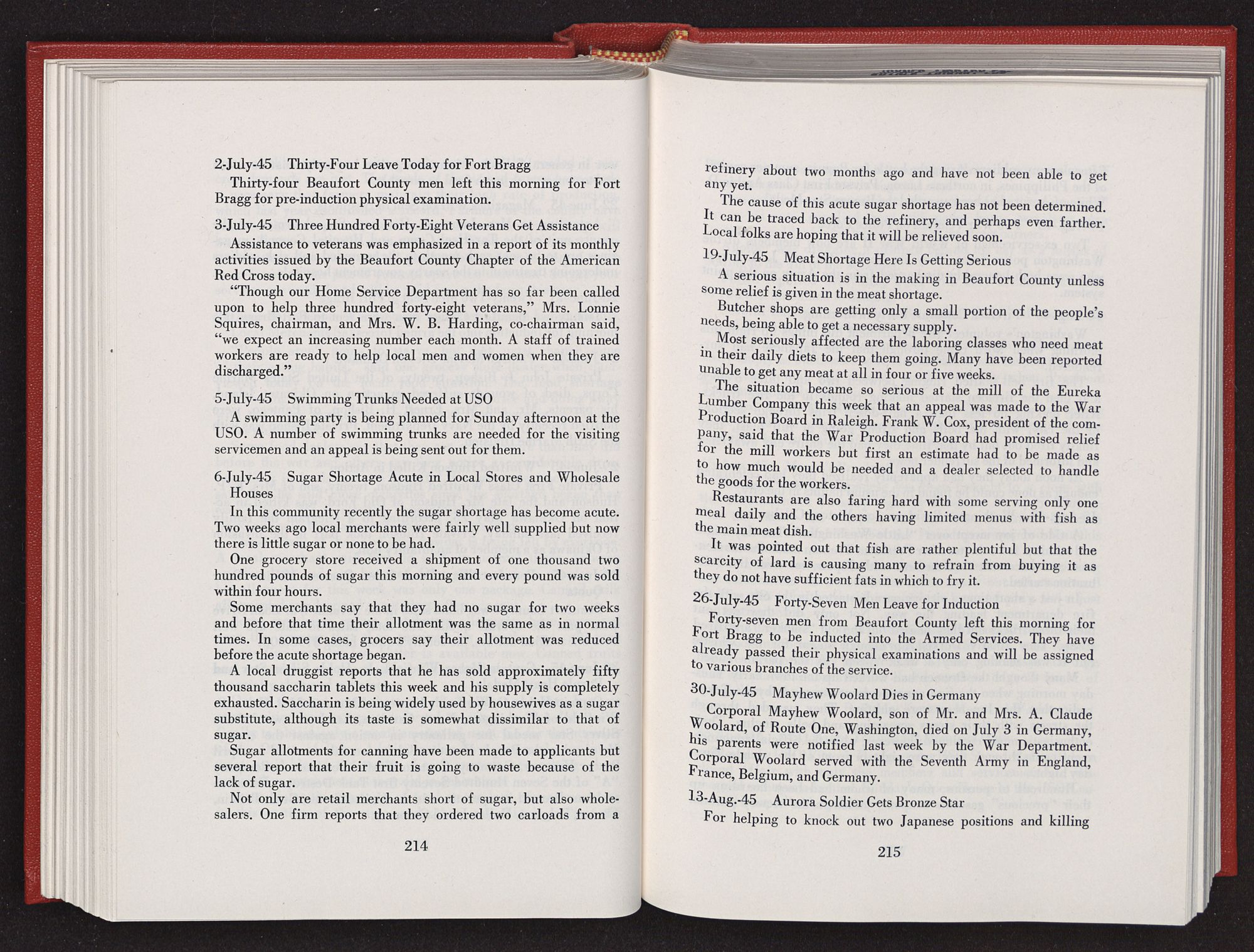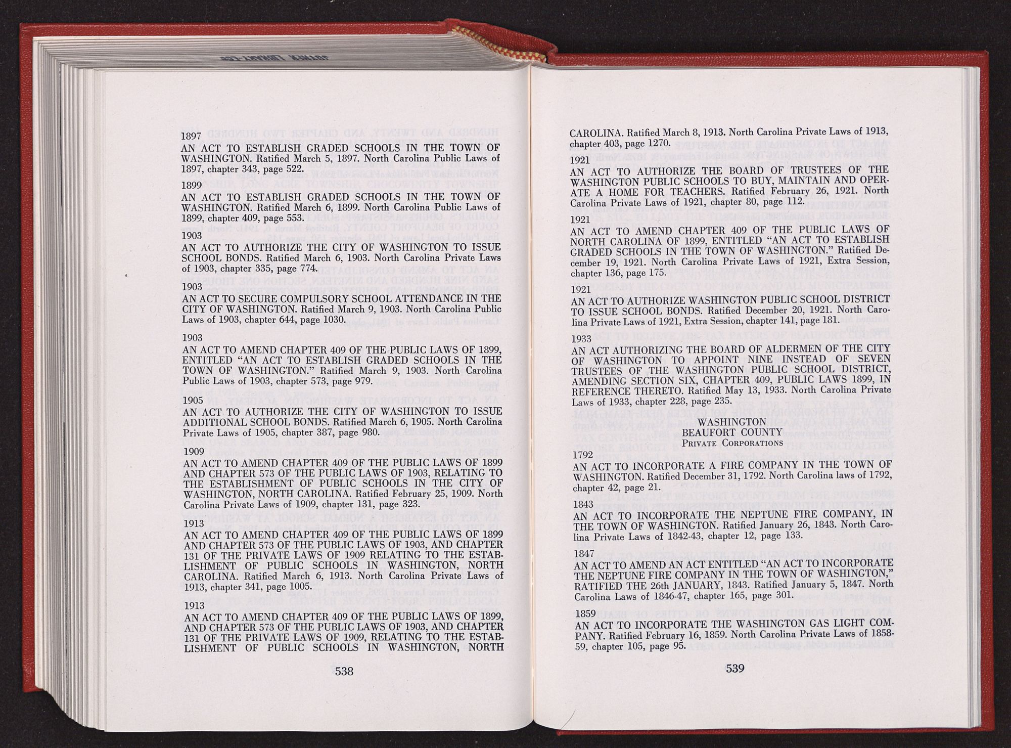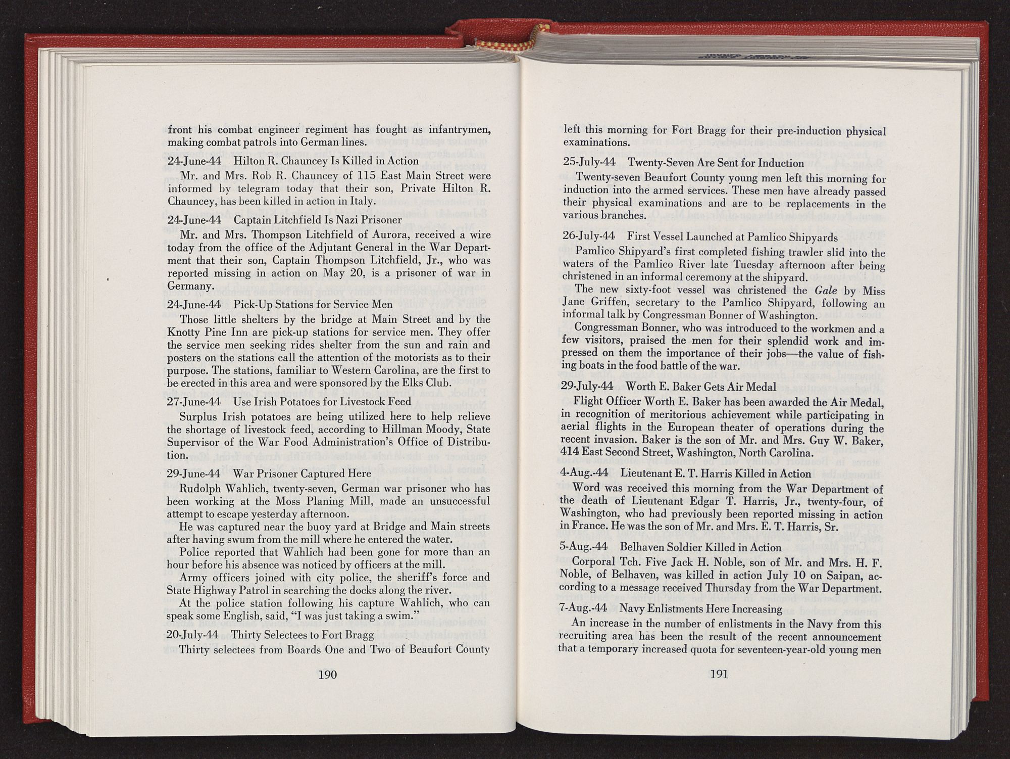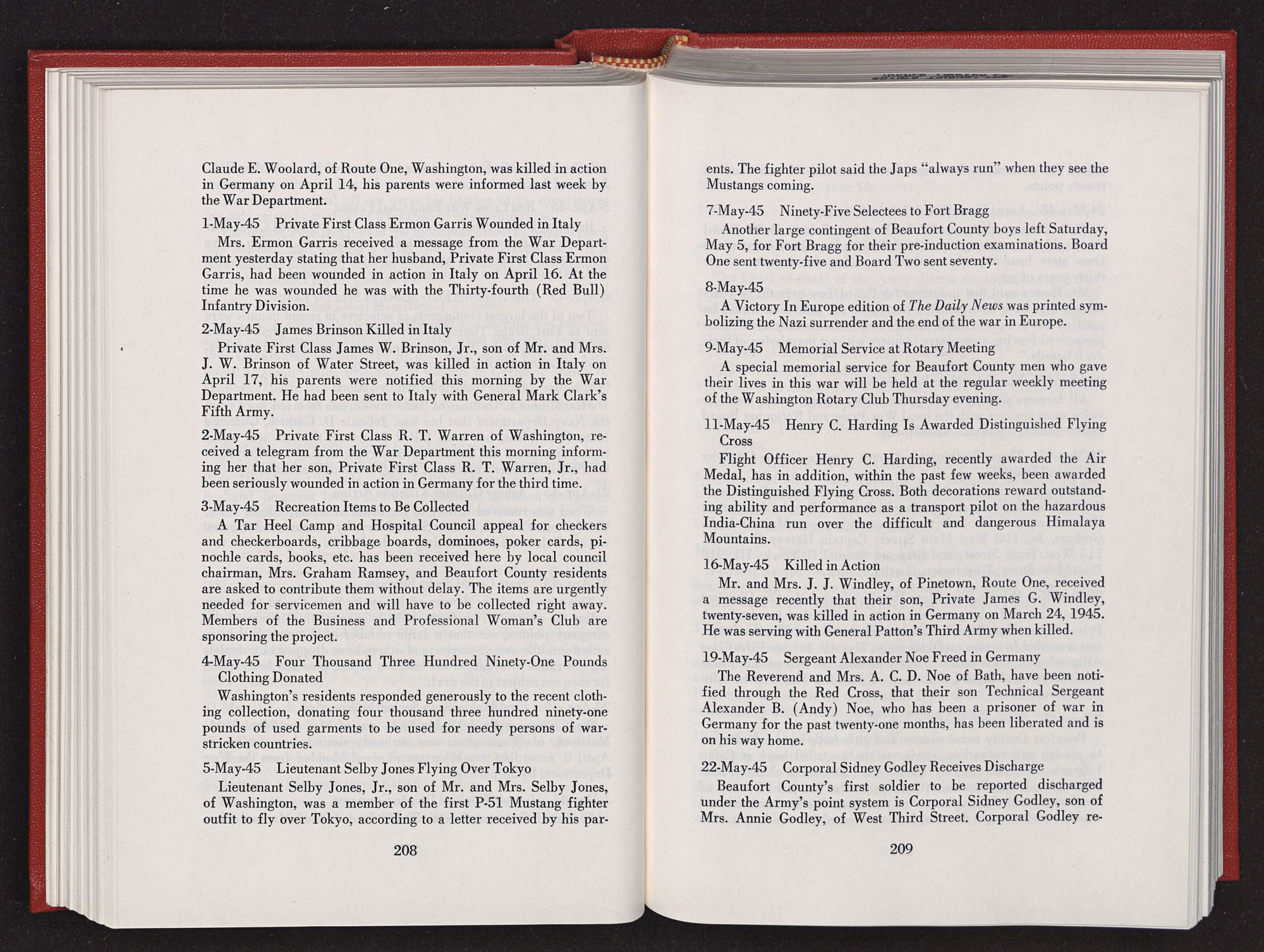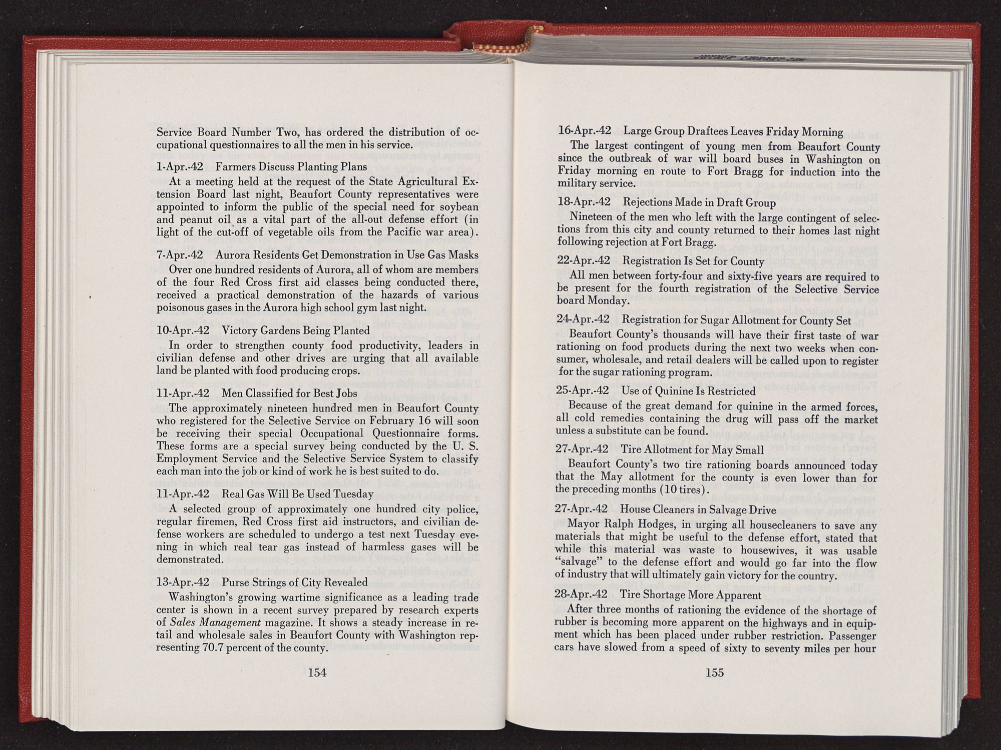 FOREWORDActing on instructions from the Washington-Beaufort County Bicentennial Commission with Roland Modlin, Chairman, the History Committee, under the Chairmanship of John Morgan, began in 1974 a history of the Washington area. The committee decided to use articles which spoke more graphically of their periods than those written today as the chronological base for the history, and to enlist the aid of a number of people in researching and writing in the areas in which they were interested. The result is a collection of articles, both old and new, which supplements the earlier work, Beaufort County: Two Centuries of its History by Colonel Wingate Reed, and brings to print much data heretofore not published. Hundreds of people have been interviewed. Records, letters, ledgers and scrapbooks have been brought from attics and used. Old newspapers have been collected and consulted. Much had to be omitted but the committee hopes that further volumes of Beaufort County history will follow. Quantities of material are now available and more is constantly accumulating, which has not been touched in this volume. This material is in the files at the George H. and Laura E. Brown Library where the data used for this book is stored.