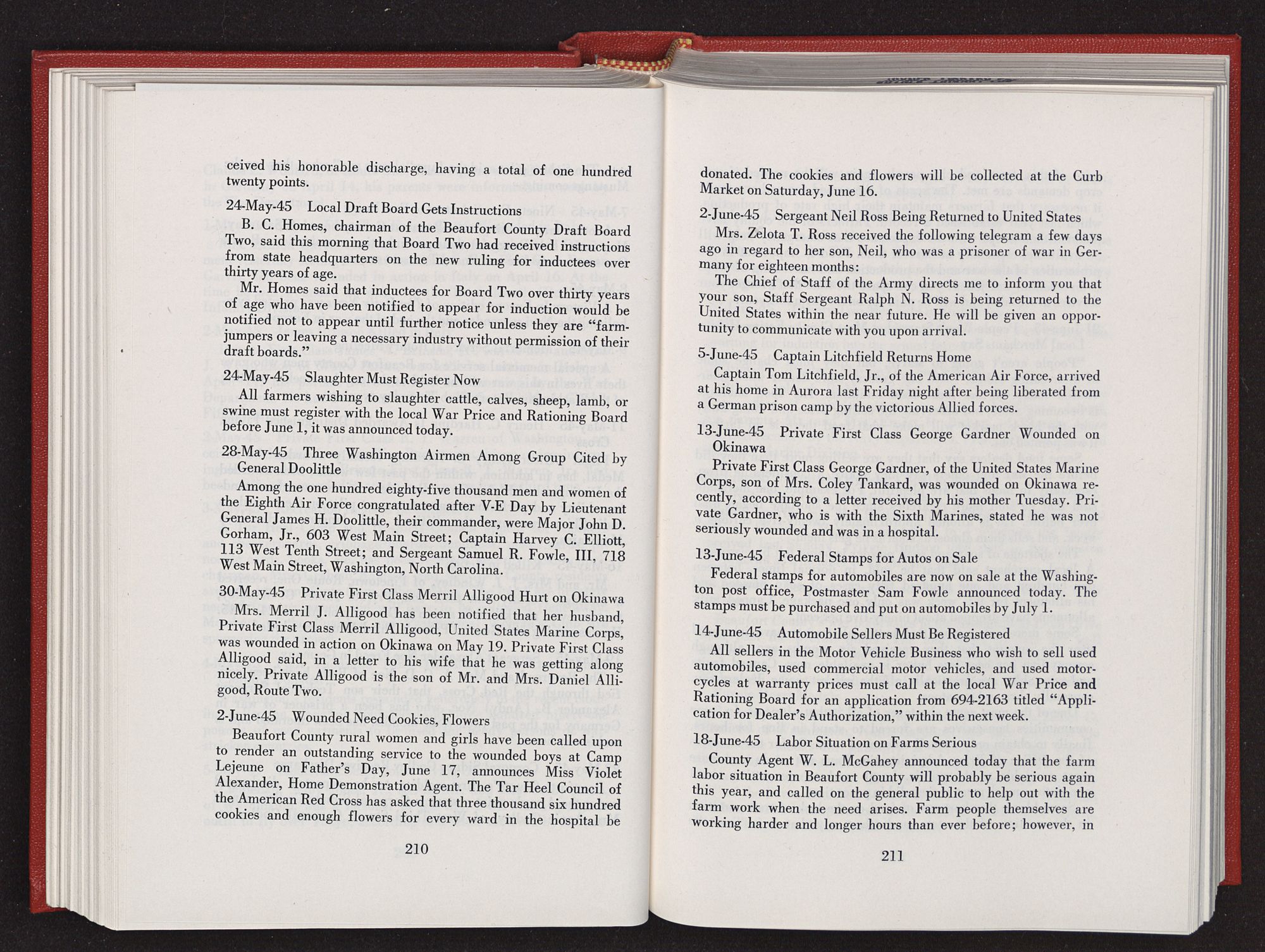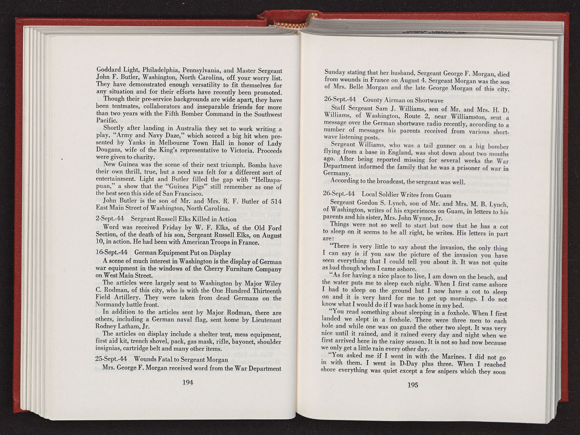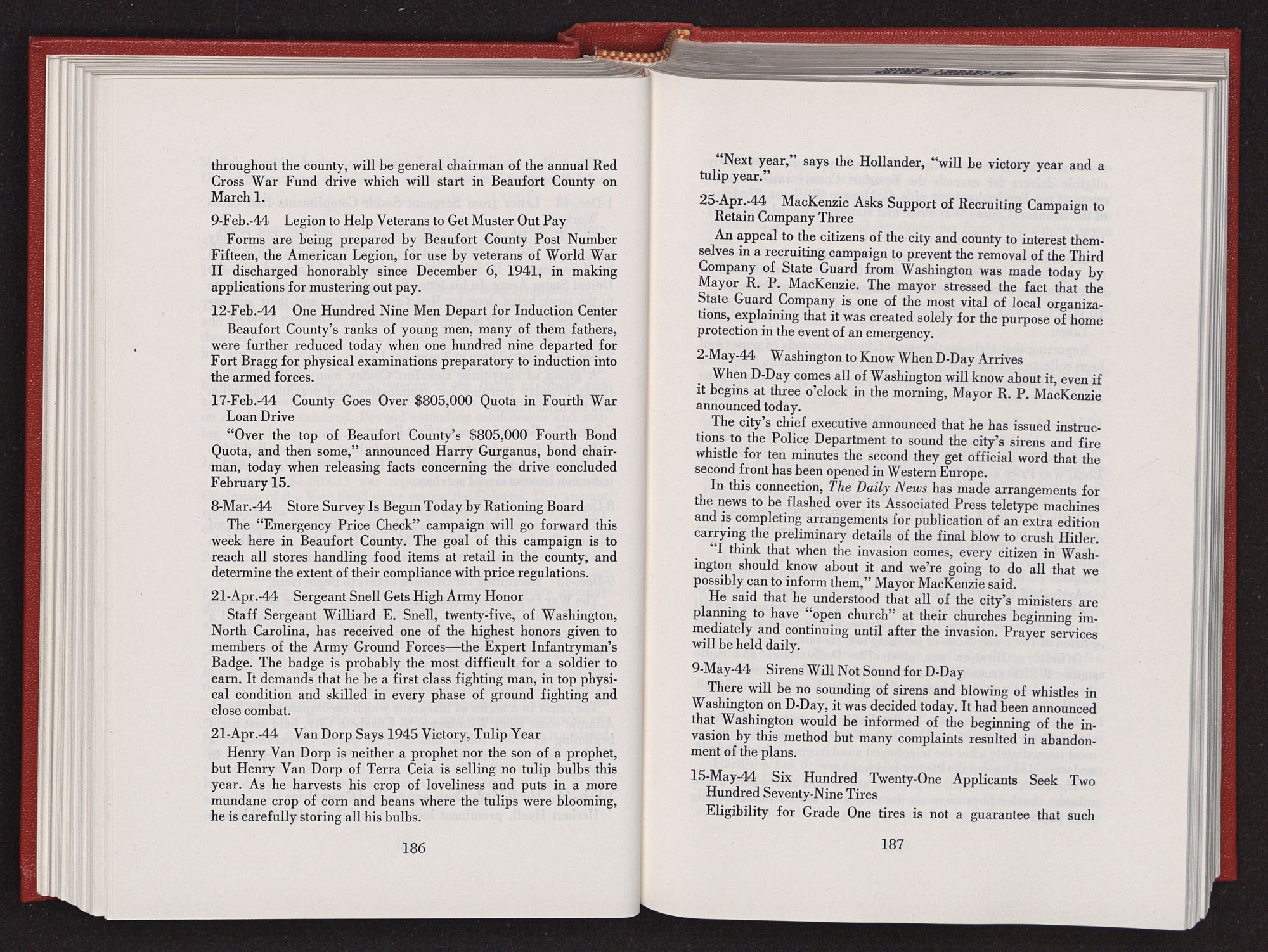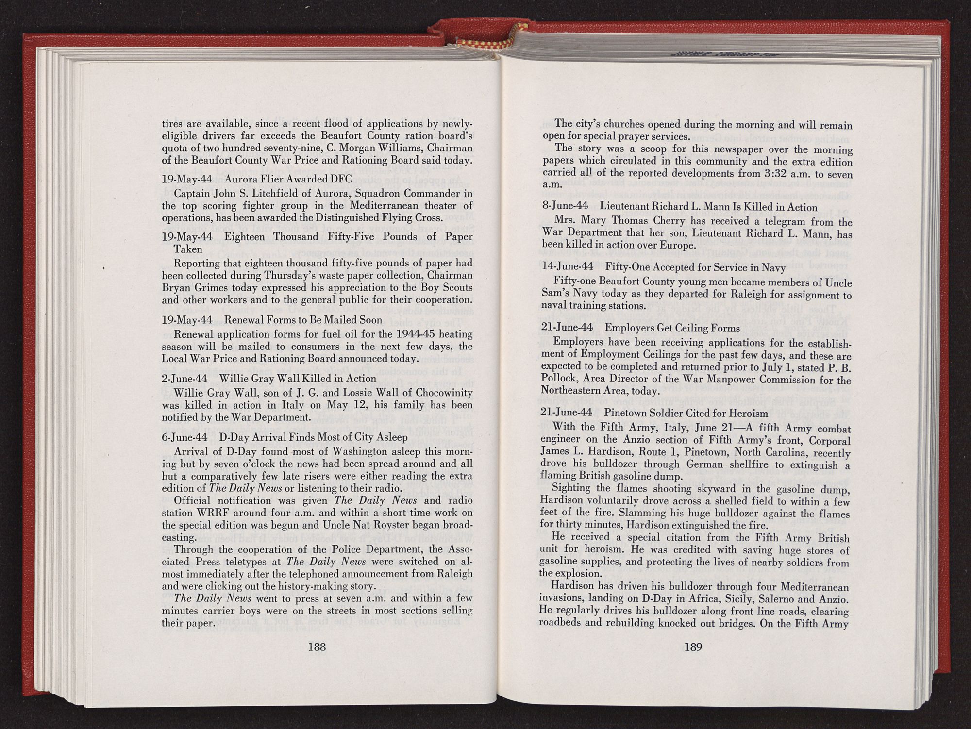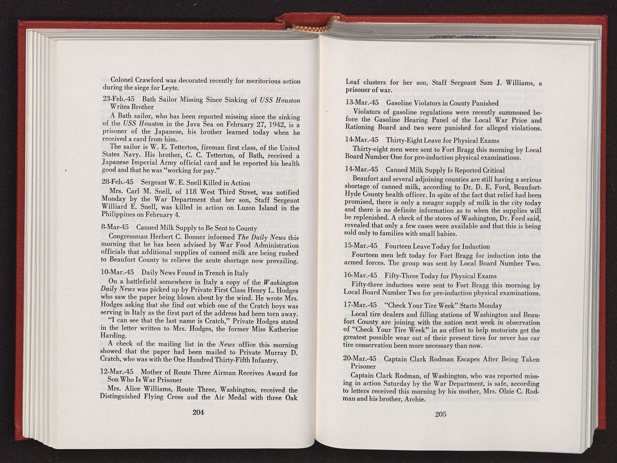 FOREWORDActing on instructions from the Washington-Beaufort County Bicentennial Commission with Roland Modlin, Chairman, the History Committee, under the Chairmanship of John Morgan, began in 1974 a history of the Washington area. The committee decided to use articles which spoke more graphically of their periods than those written today as the chronological base for the history, and to enlist the aid of a number of people in researching and writing in the areas in which they were interested. The result is a collection of articles, both old and new, which supplements the earlier work, Beaufort County: Two Centuries of its History by Colonel Wingate Reed, and brings to print much data heretofore not published. Hundreds of people have been interviewed. Records, letters, ledgers and scrapbooks have been brought from attics and used. Old newspapers have been collected and consulted. Much had to be omitted but the committee hopes that further volumes of Beaufort County history will follow. Quantities of material are now available and more is constantly accumulating, which has not been touched in this volume. This material is in the files at the George H. and Laura E. Brown Library where the data used for this book is stored.
