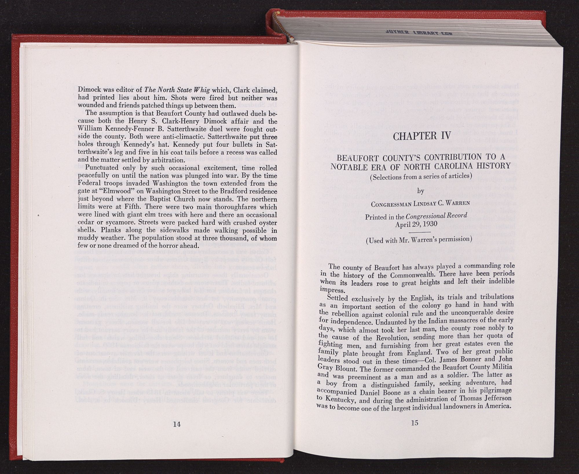 | Beaufort County's Contribution to a Notable Era—Congressman Lindsay C. Warren | 15 |