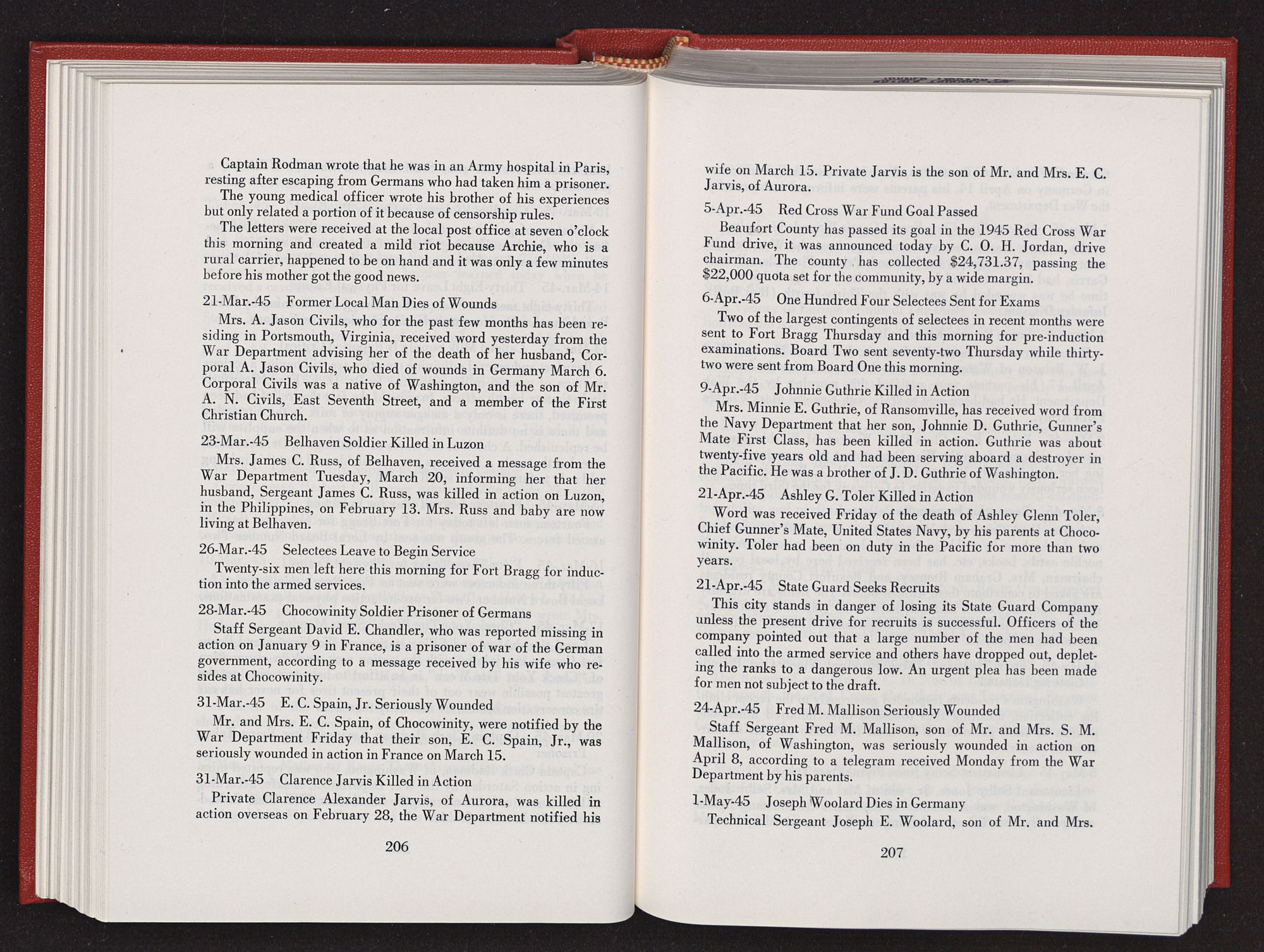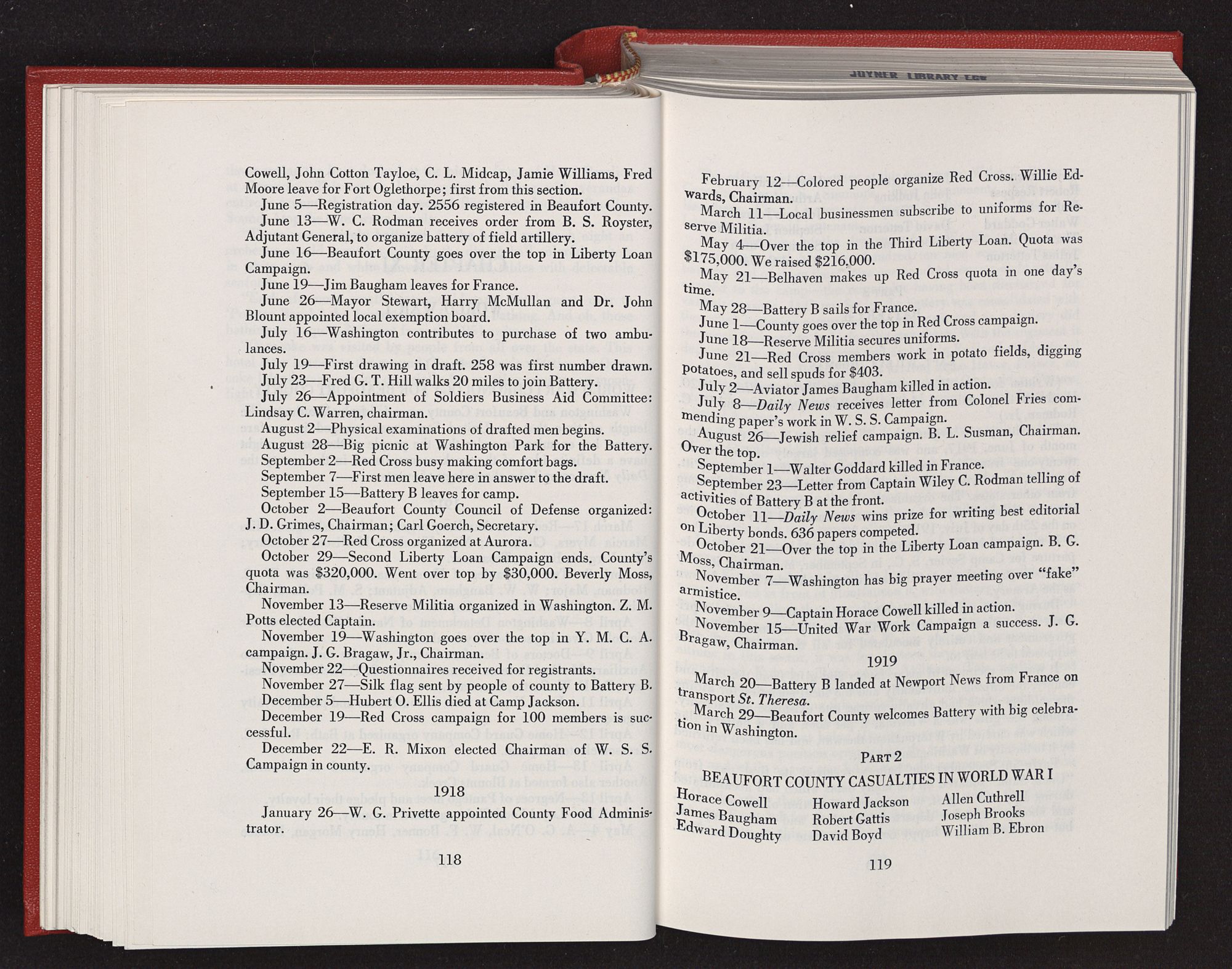 | Part 2: Beaufort County Casualties in WWI | 119 |