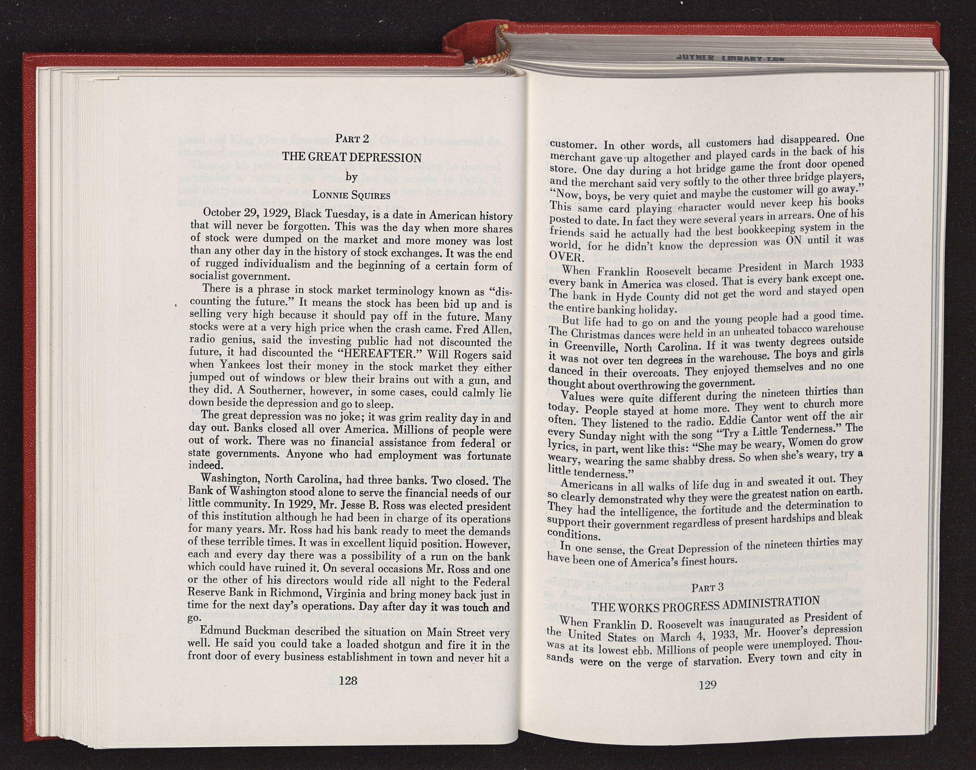 | Part 2: The Great Depression—Lonnie Squires | 128 |