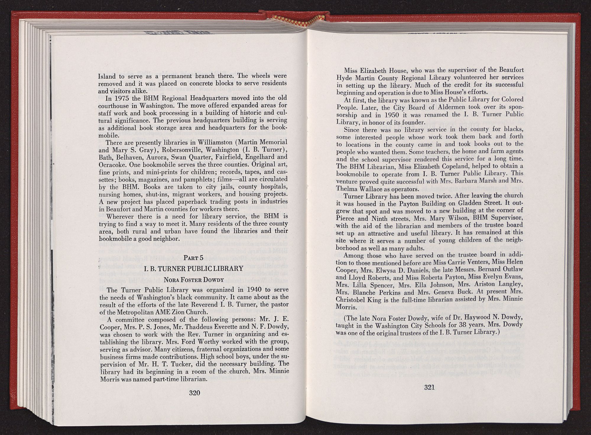 | Part 5: I. B. Turner Library—Nora Foster Dowdy | 320 |