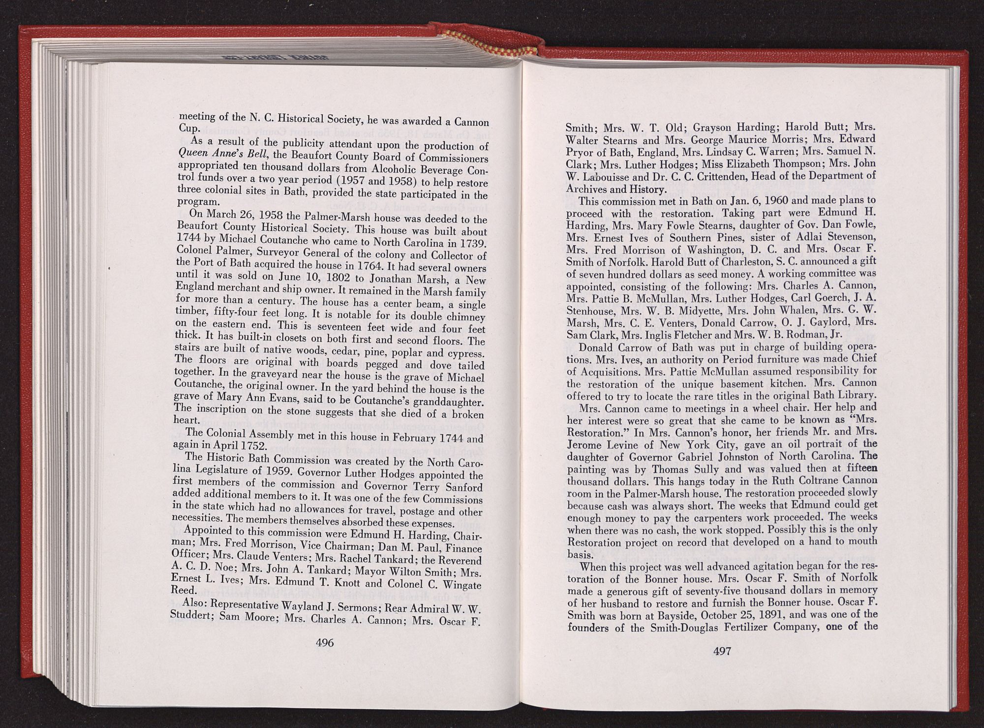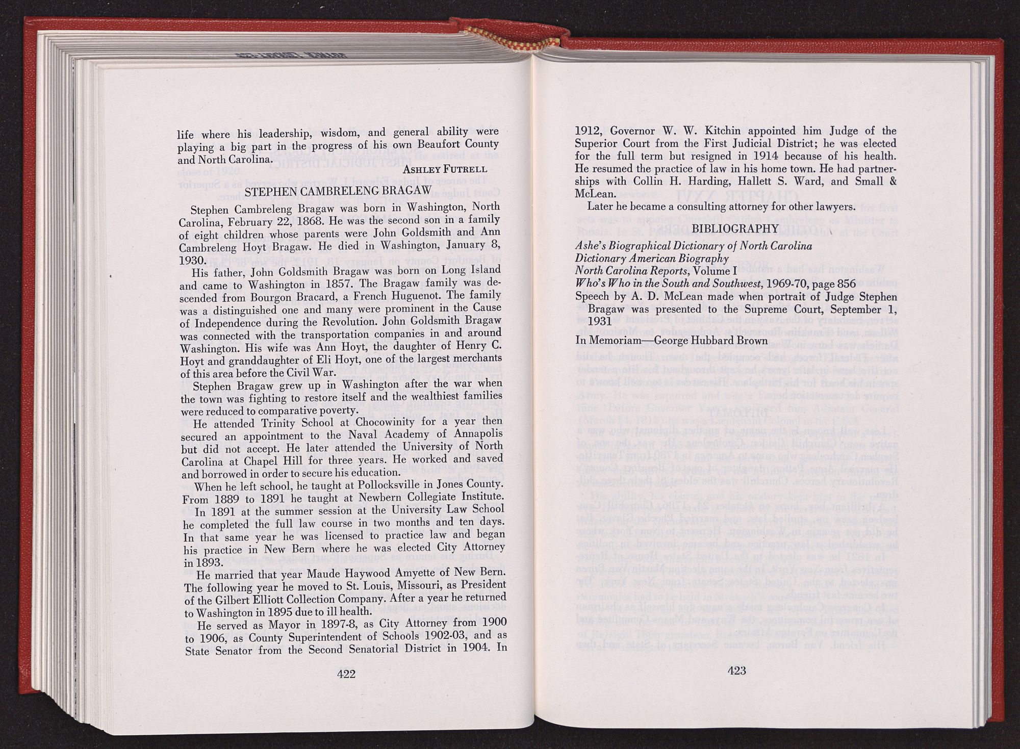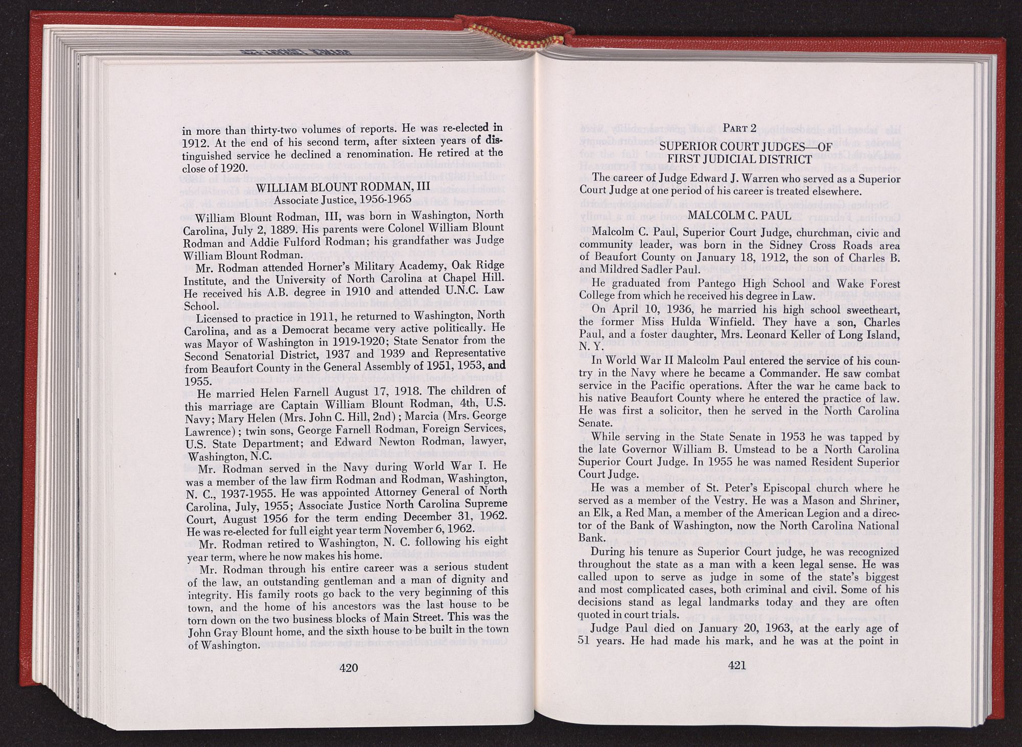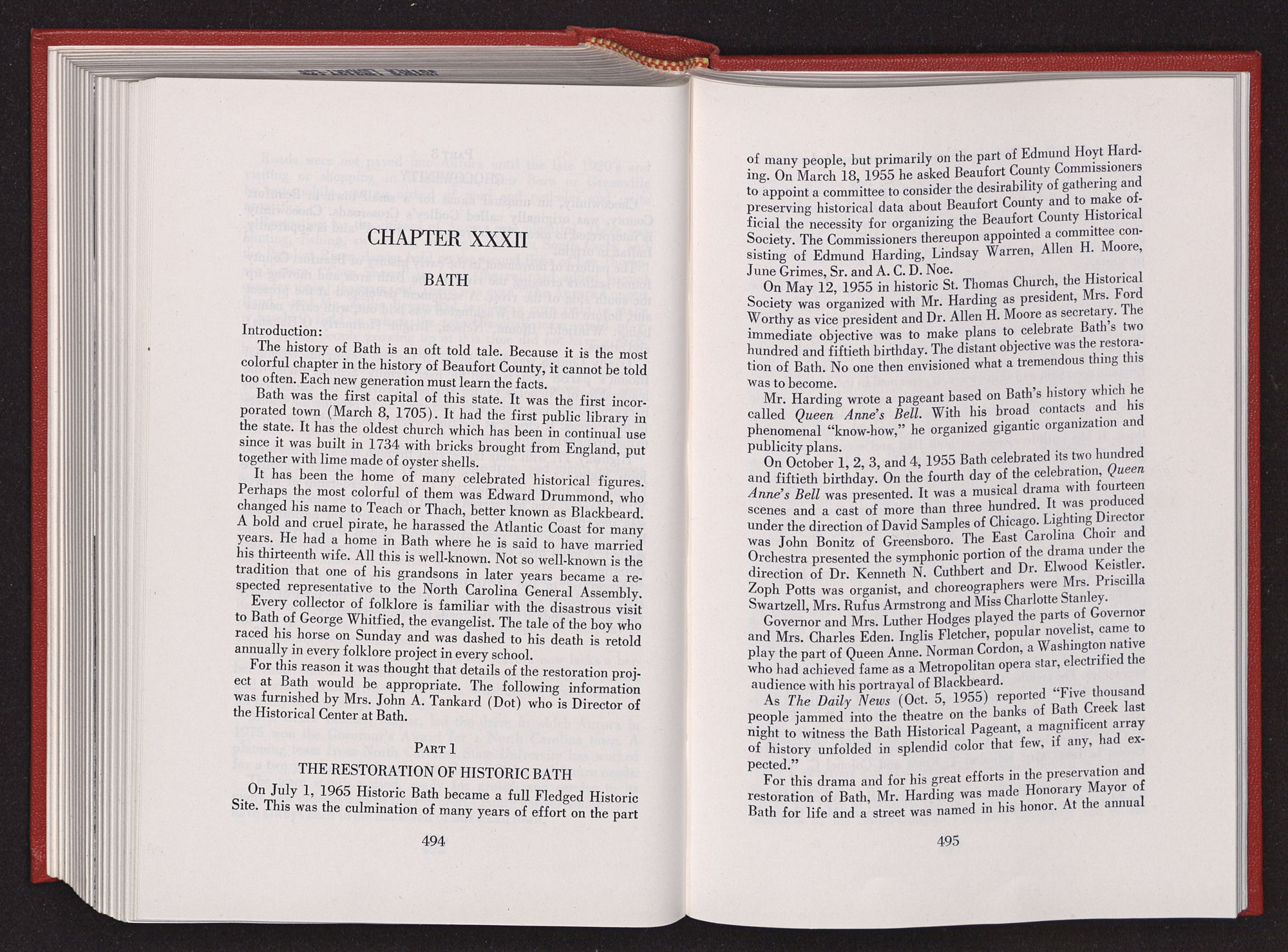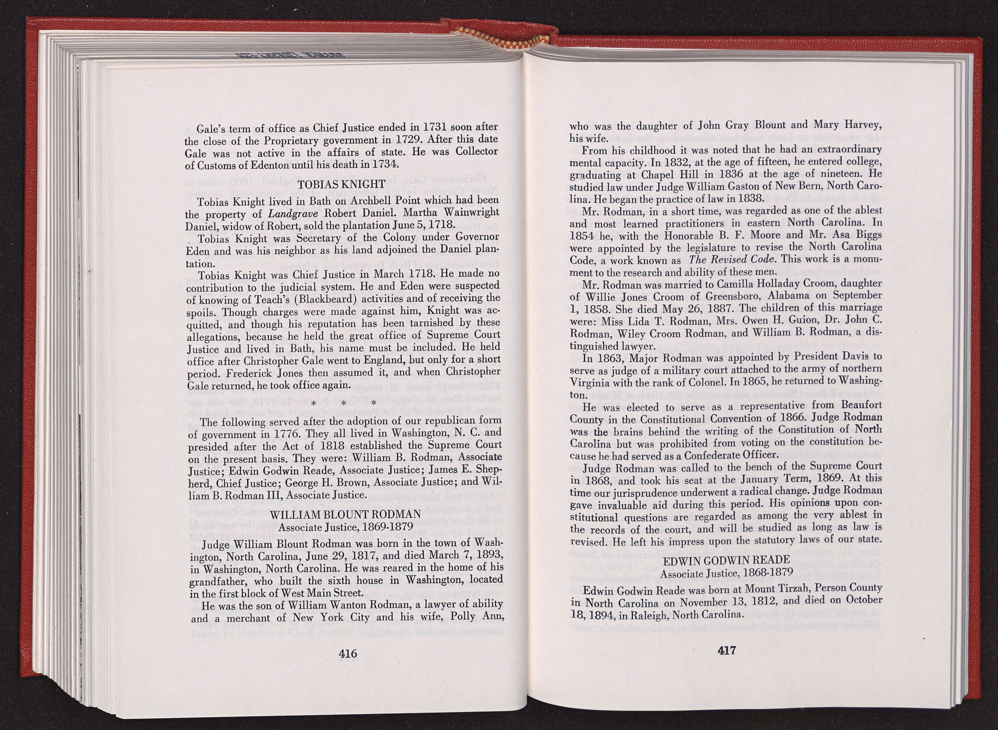 The collection and preparation of this effort has been, in large part, a community project. It is impossible to note the names of all those who have contributed, either material, pictures, advice or labor, but the help of a few must be acknowledged: Raymond M. Taylor, Marshal of the Supreme Court and Librarian of the Supreme Court Library, State of North Carolina; Lee Wallace, Jr., Historian with National Parks Services; Shirley Dunston Glover who typed and proof-read; Ethel Jensen, typist; Betsy Blount Swanner, typist and Betty Jean Brinson, typist.