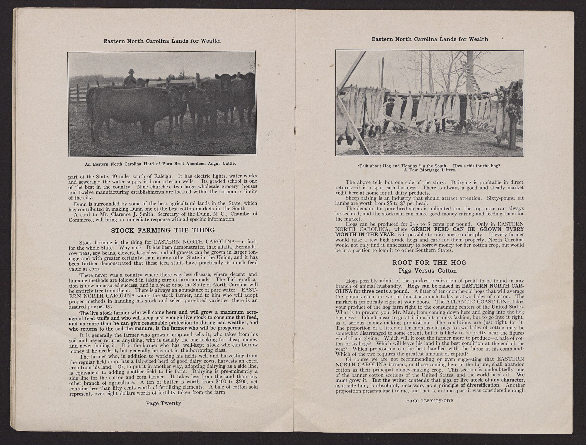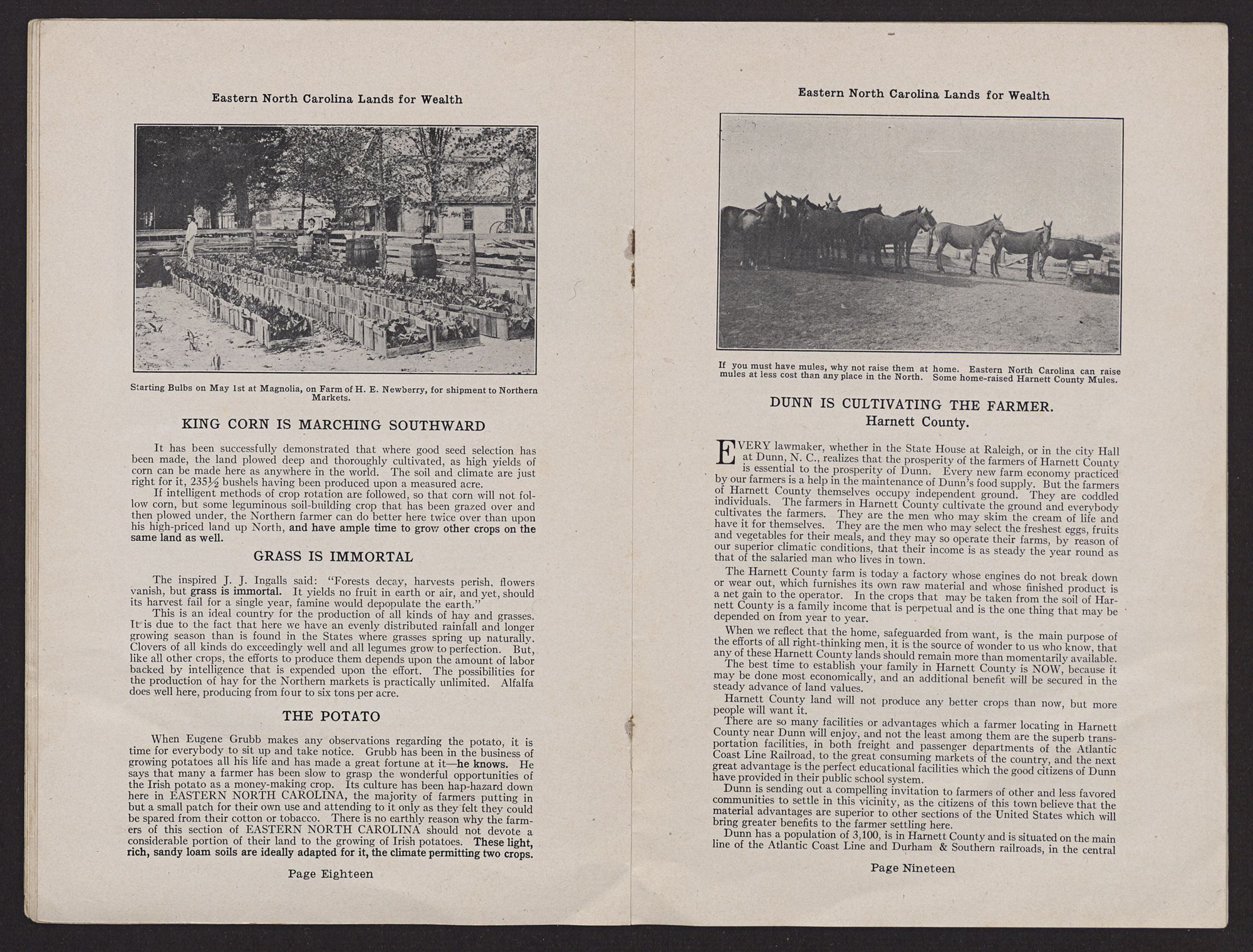 If you will farm RIGHT upon the good EASTERN NORTH CAROLINA land you are going to buy you will not only “make two blades of grass grow where one grew before,” but you will be making dollars grow for yourself where only pennies grew before. There is a wealth of gold in EASTERN NORTH CAROLINA soil, but you have to work to get it out, and only as you work will you prosper.