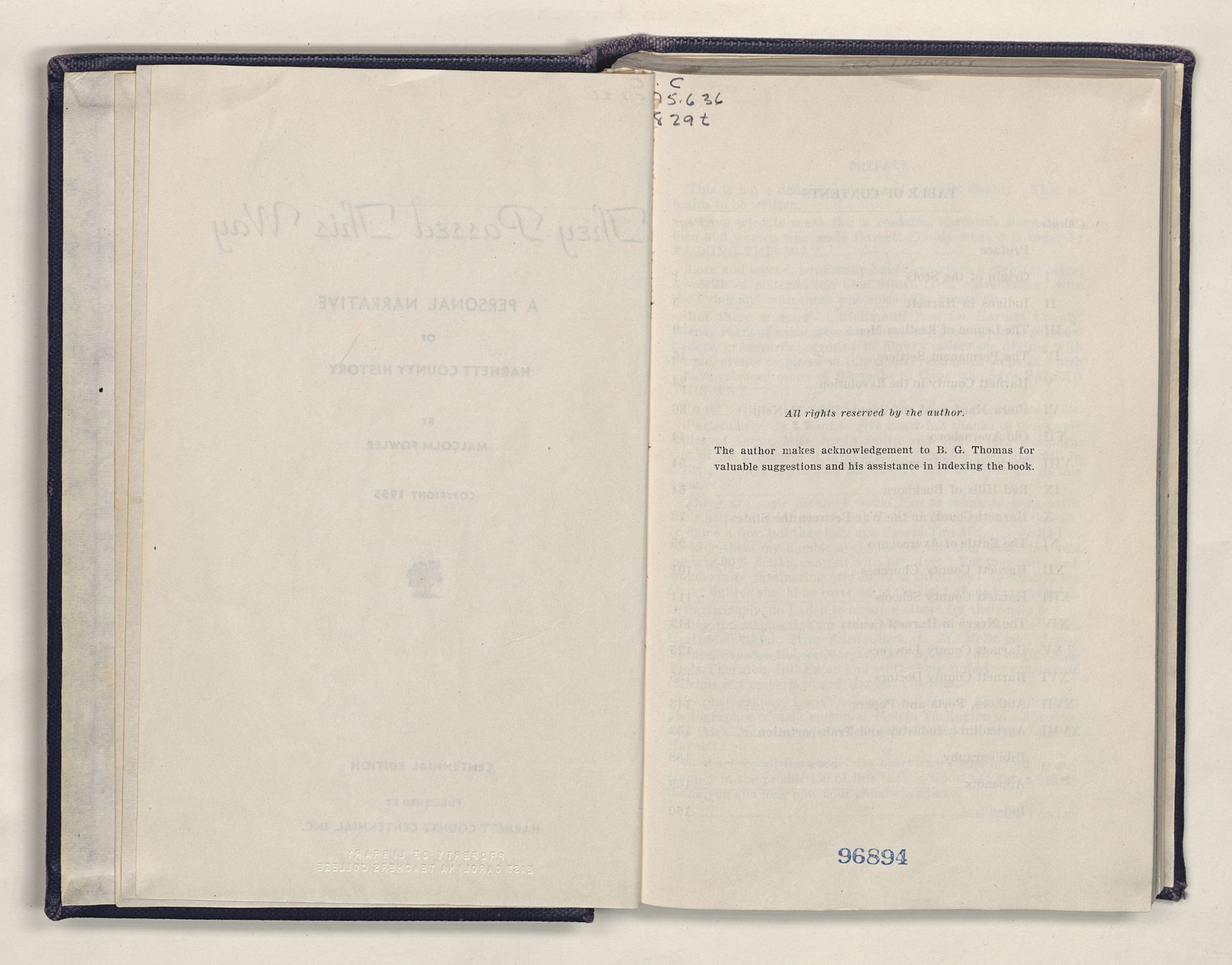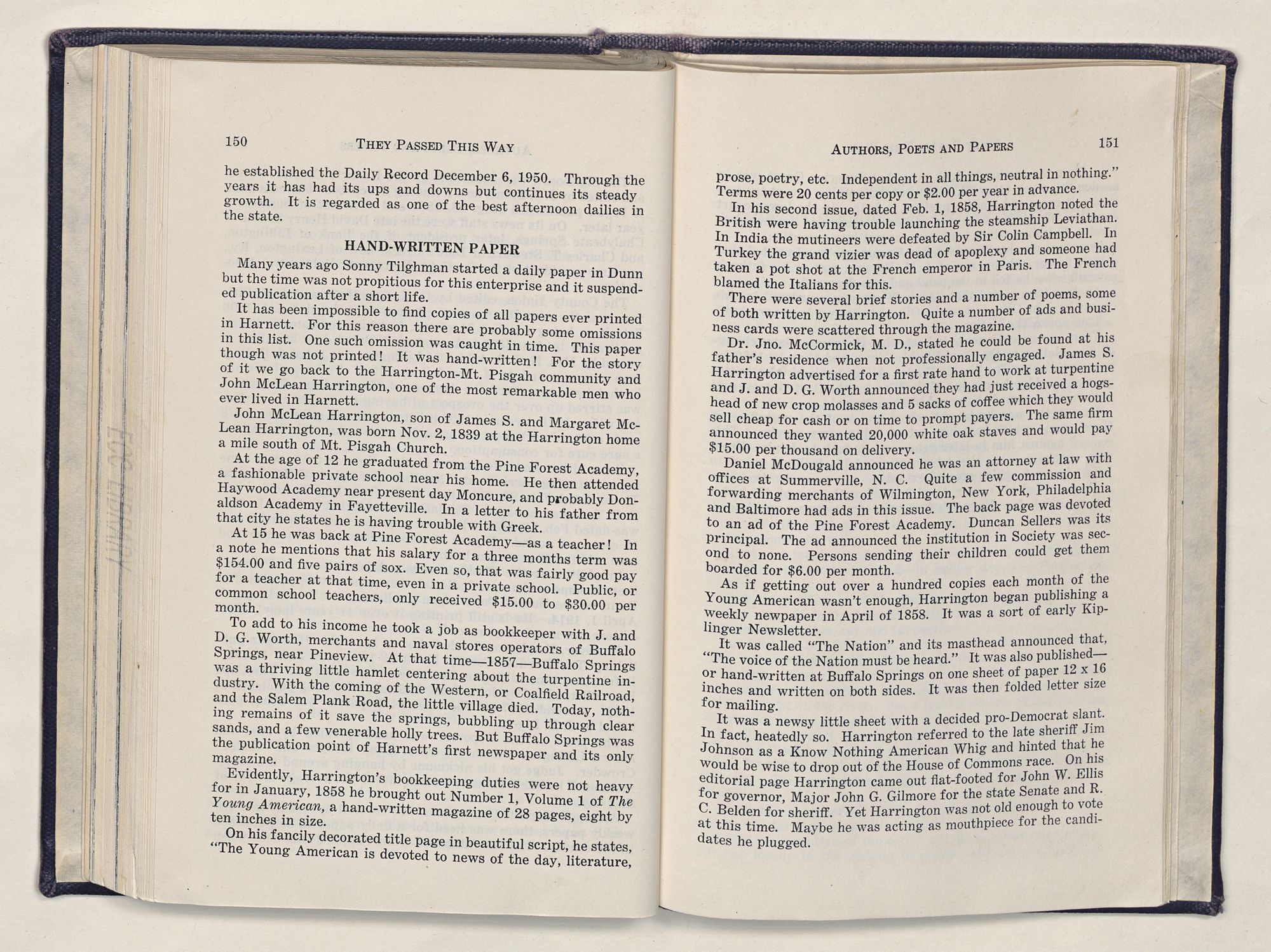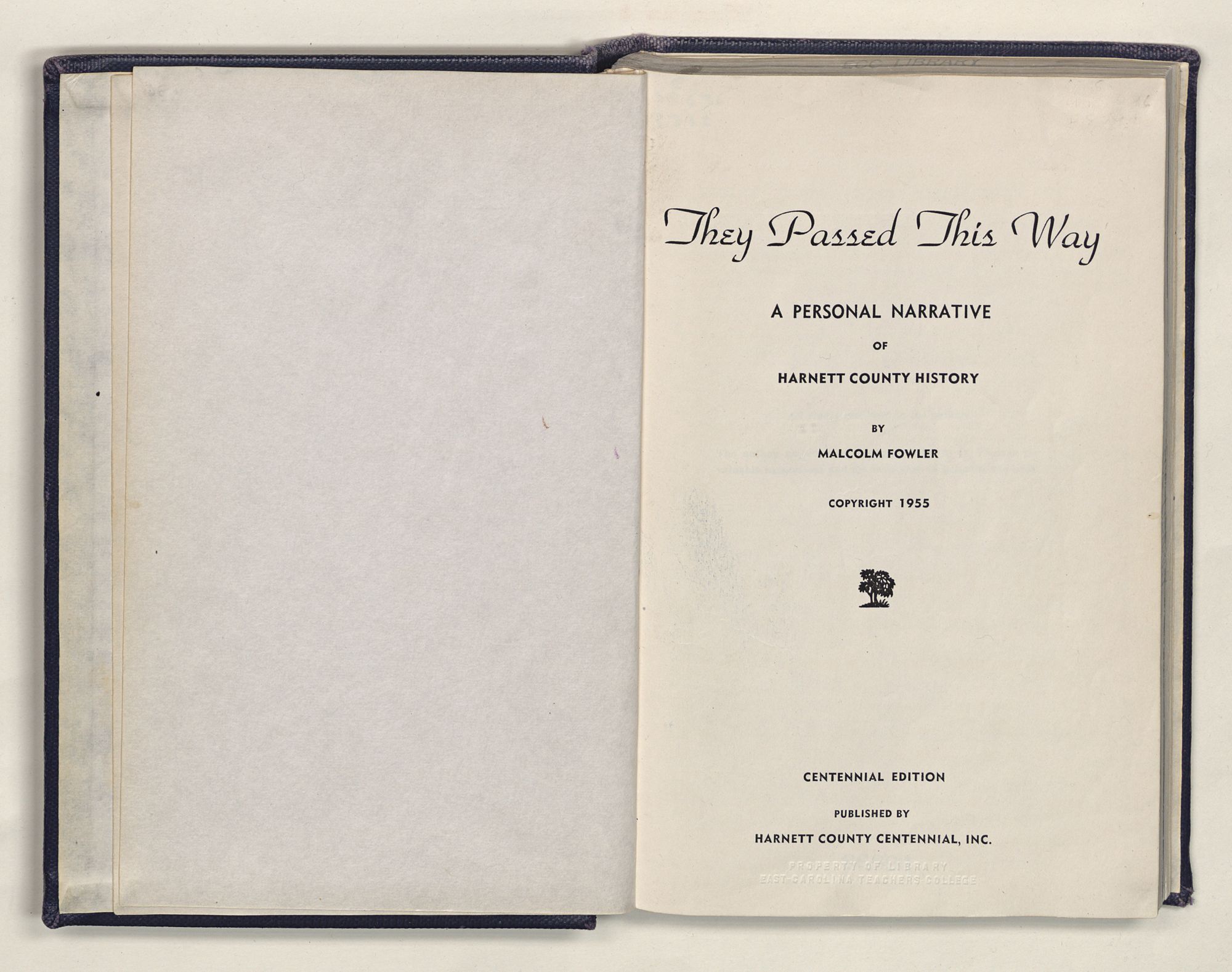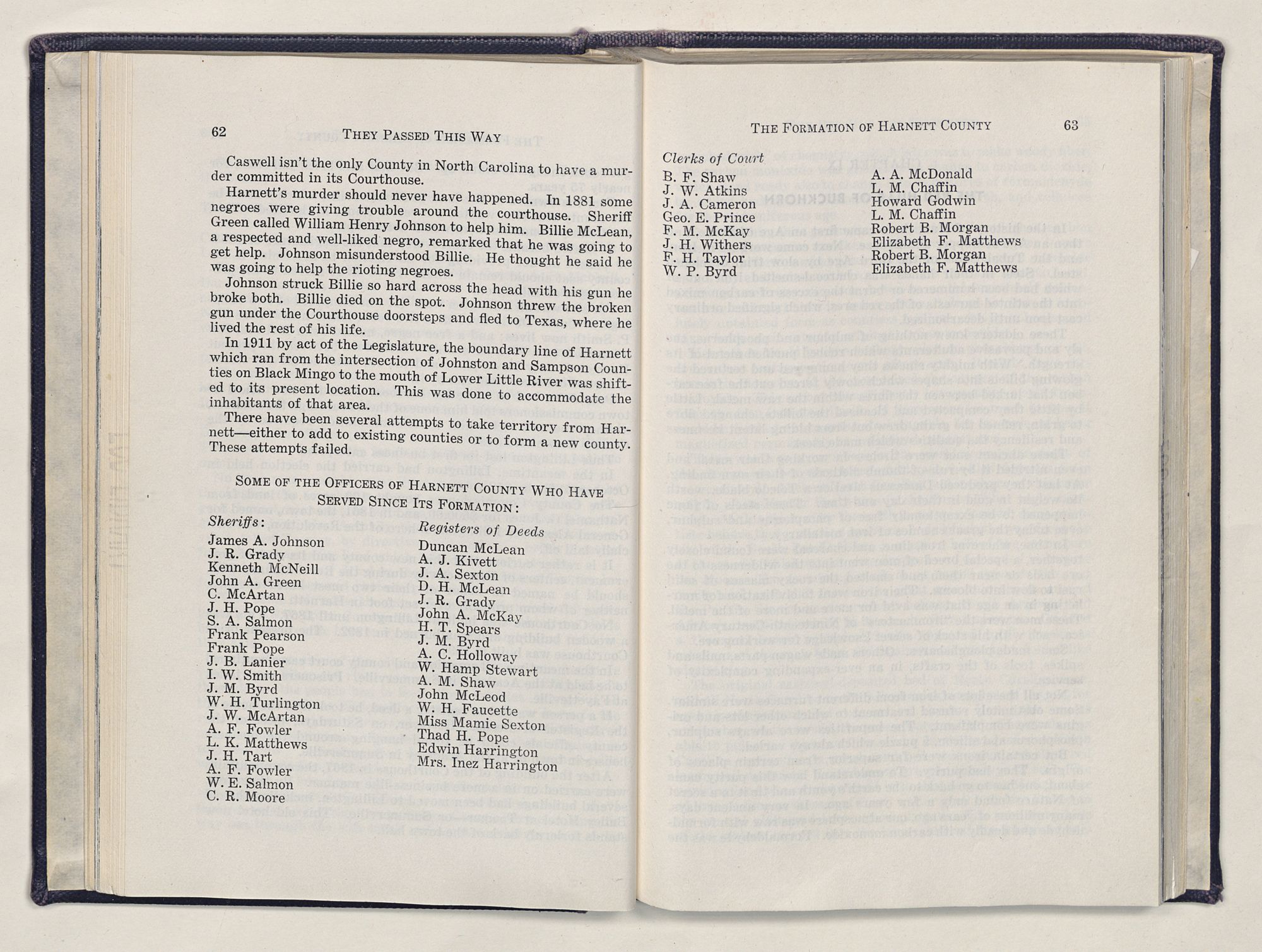 They Passed This WayA PERSONAL NARRATIVE OF HARNETT COUNTY HISTORYBY MALCOLM FOWLERCOPYRIGHT 1955