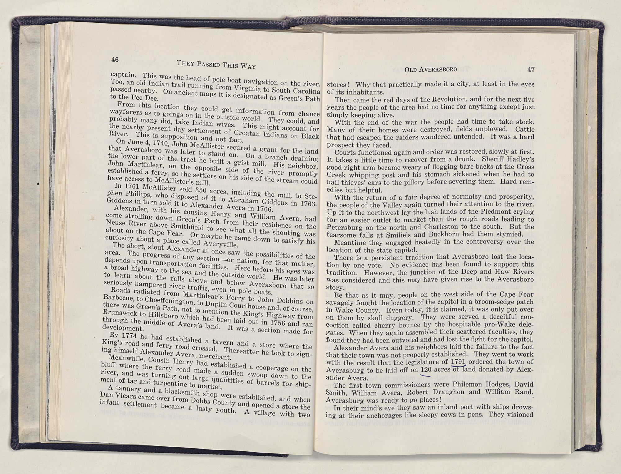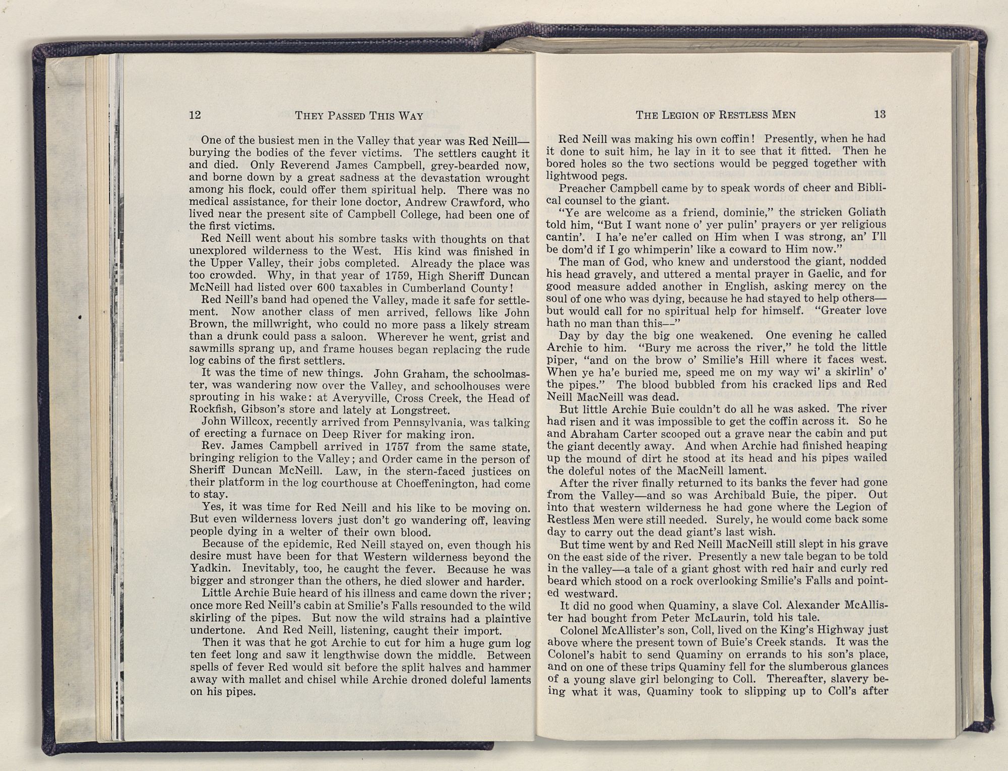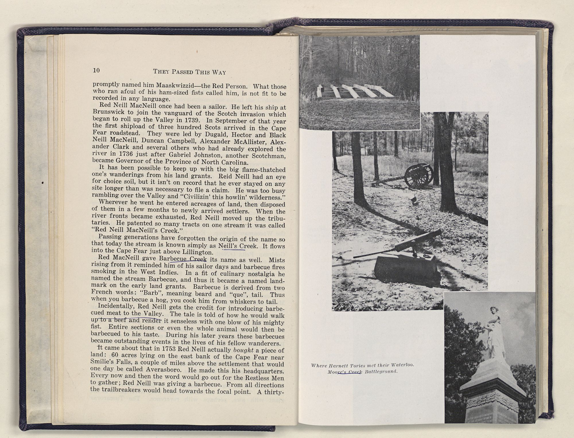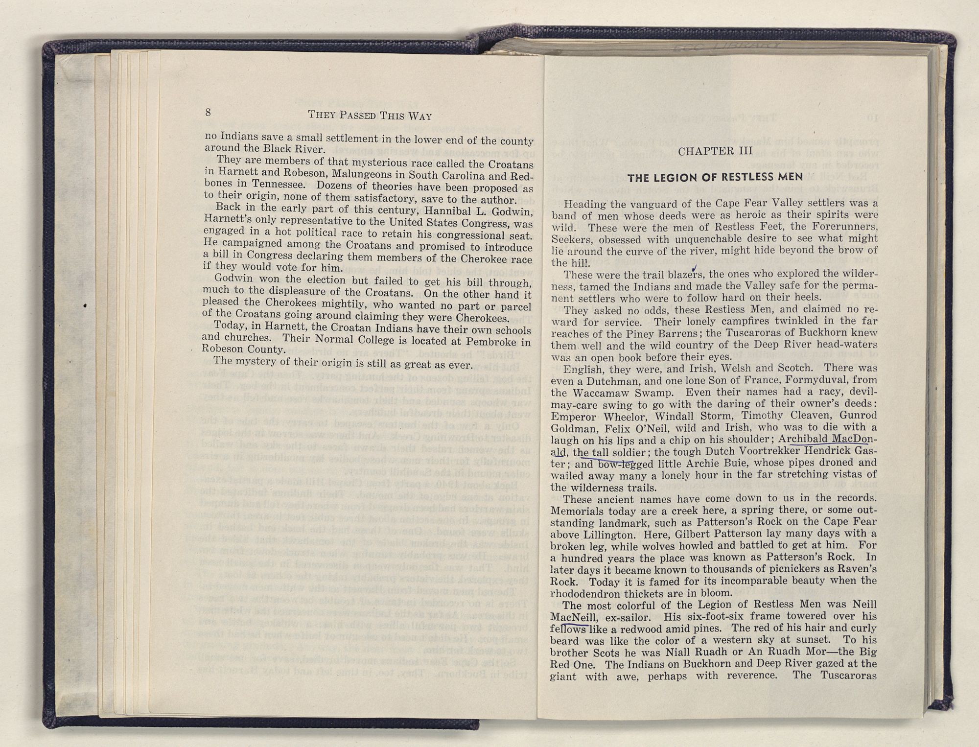 But there is more—a lifetime of love for Harnett County, twenty years of exhaustive search of land grants, deeds, personal papers, graveyards; scrutiny of library collections dealing with people, events or places in this county; countless steps in which I have retraced many of the paths of those who have PASSED THIS WAY.