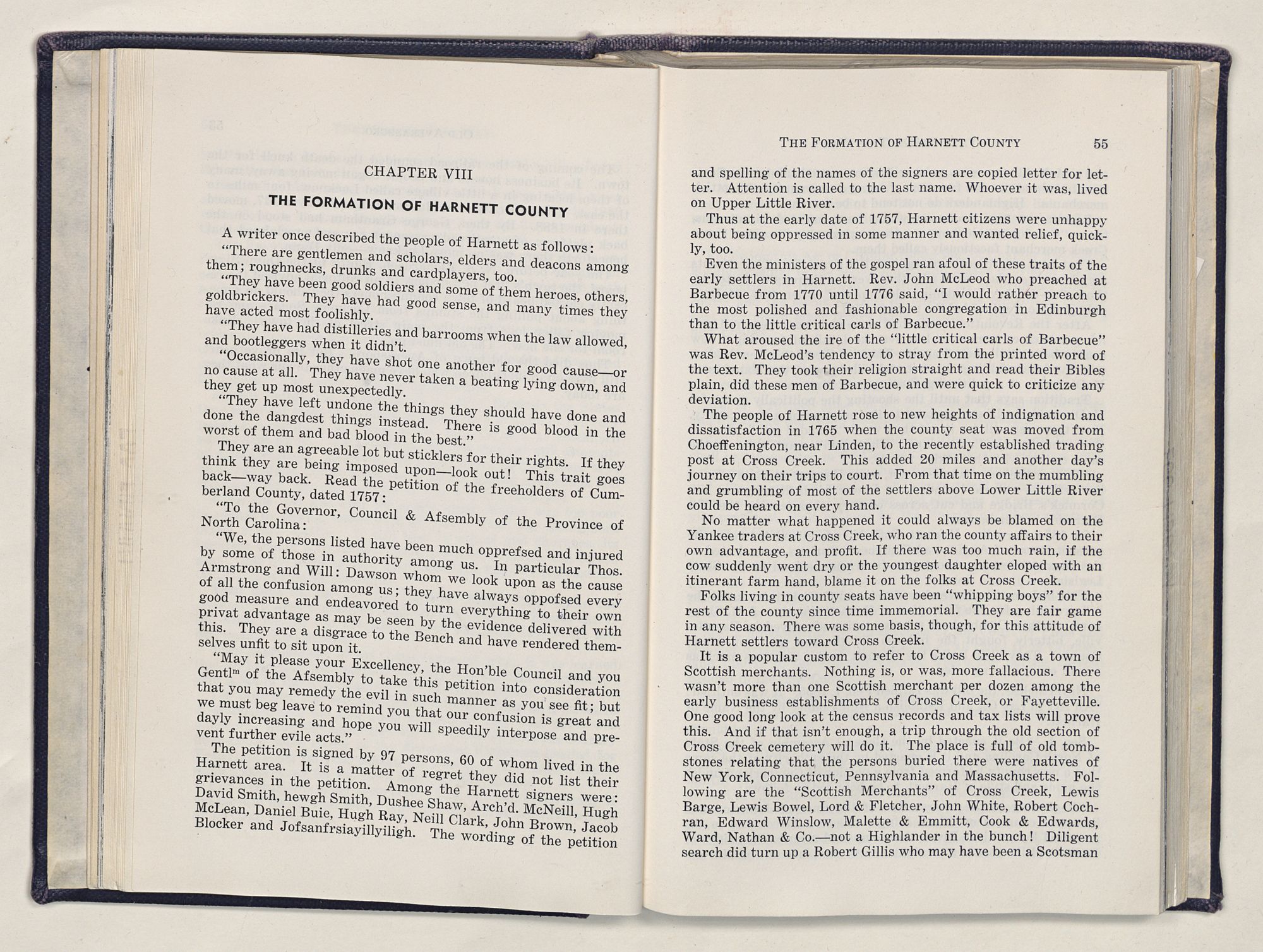 | VIII | Formation of Harnett County | 54 |