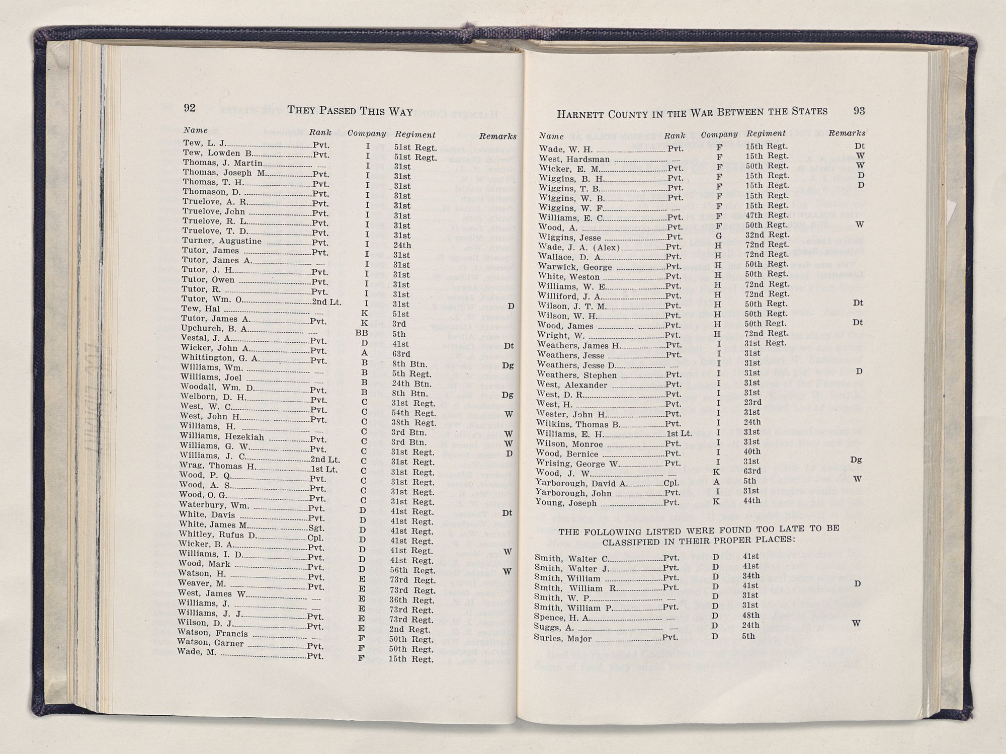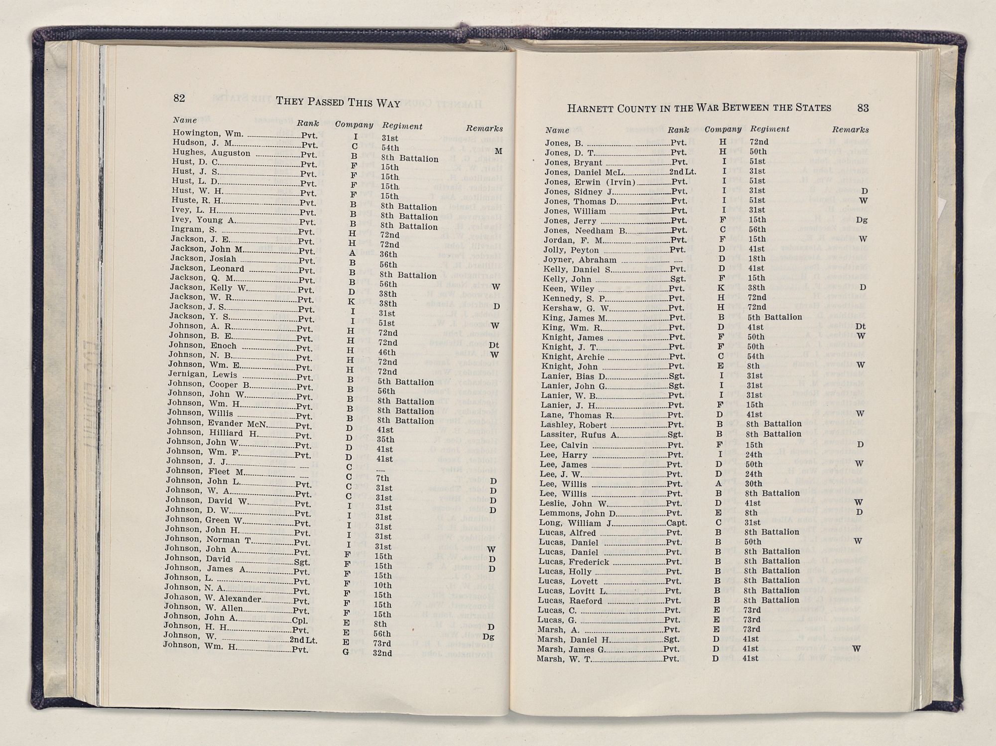 | X | Harnett County in the War Between the States | 73 |