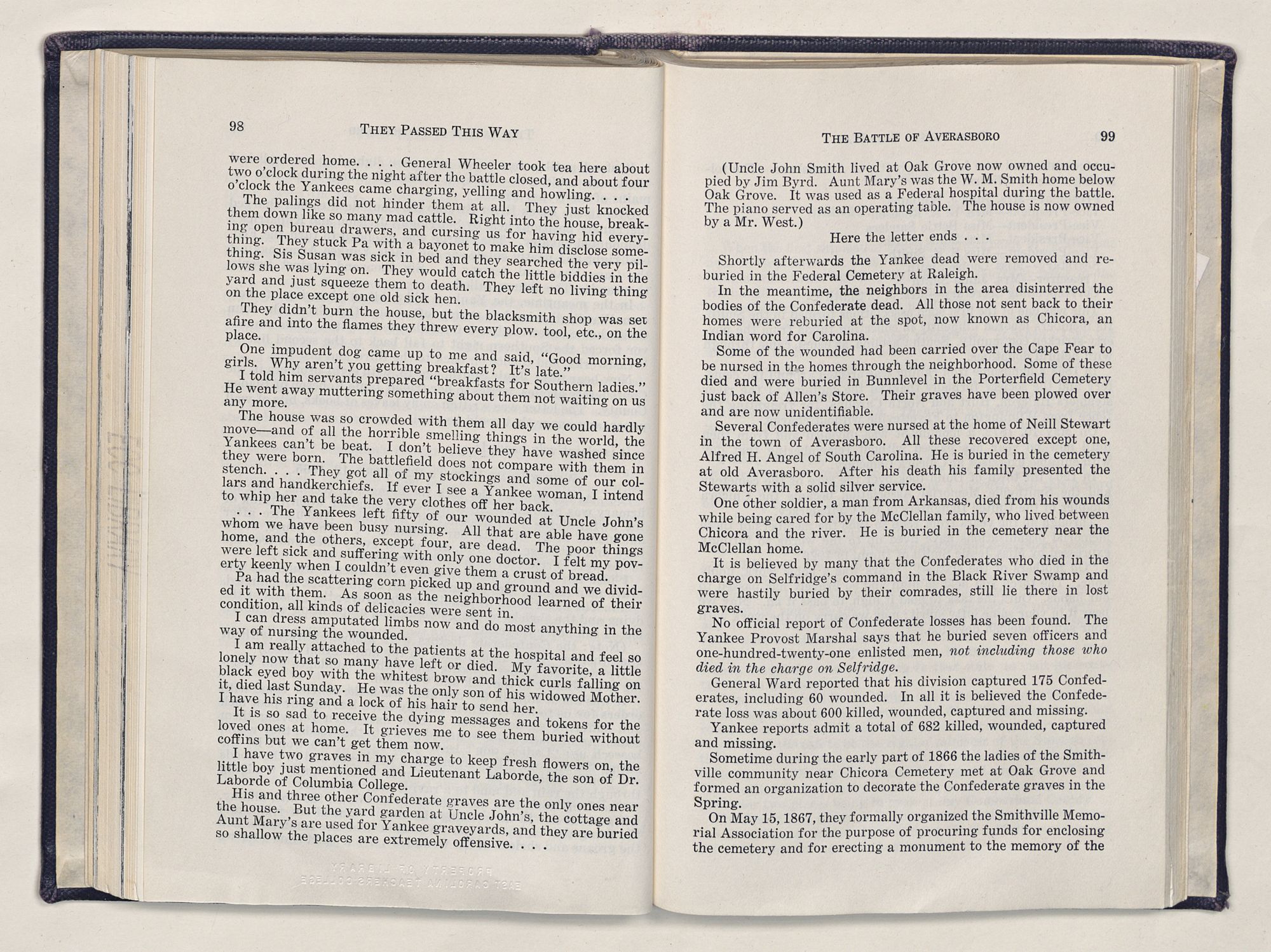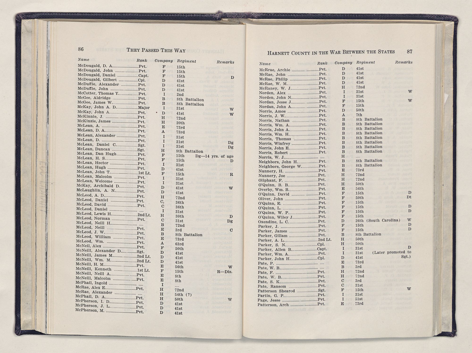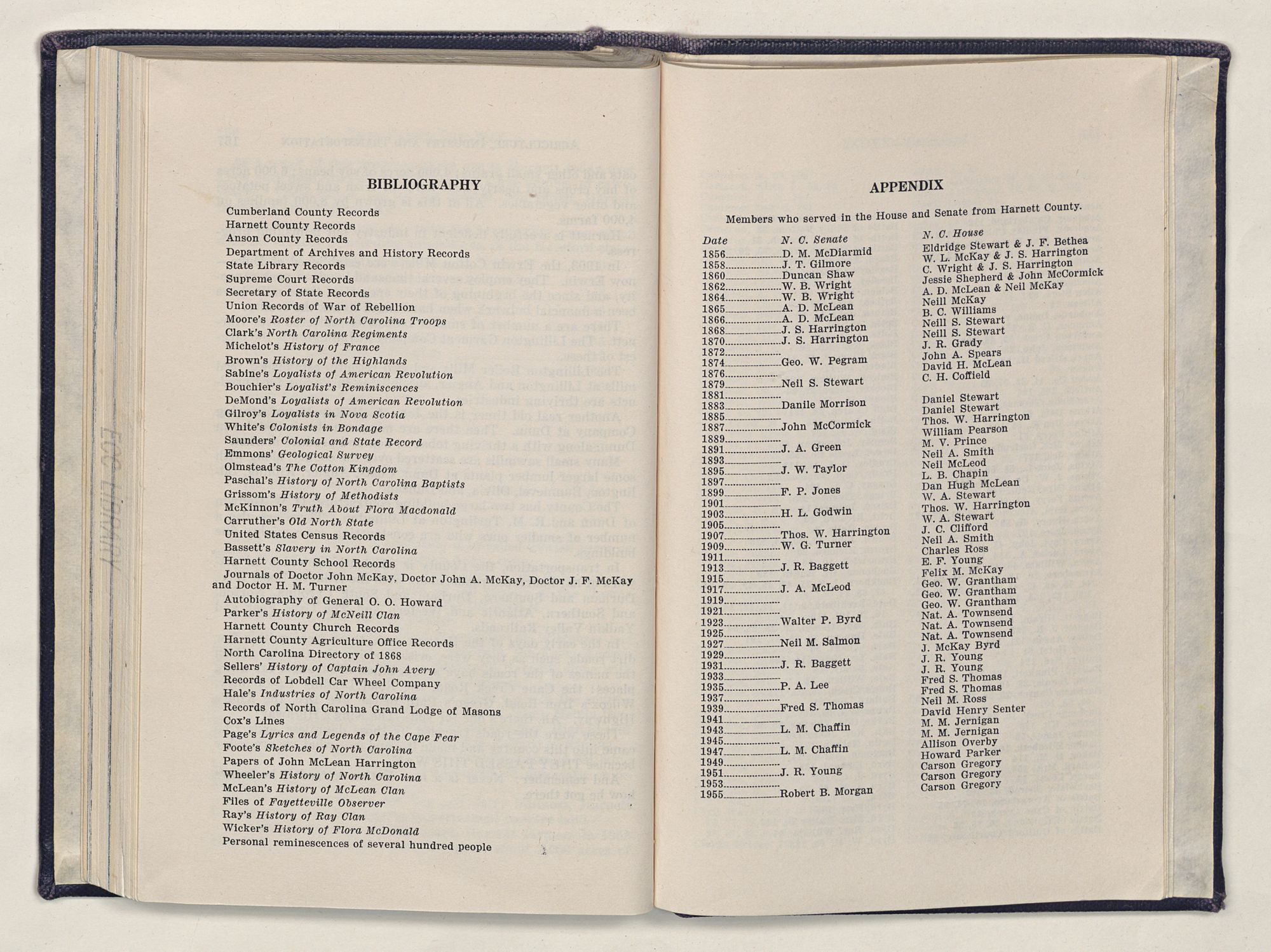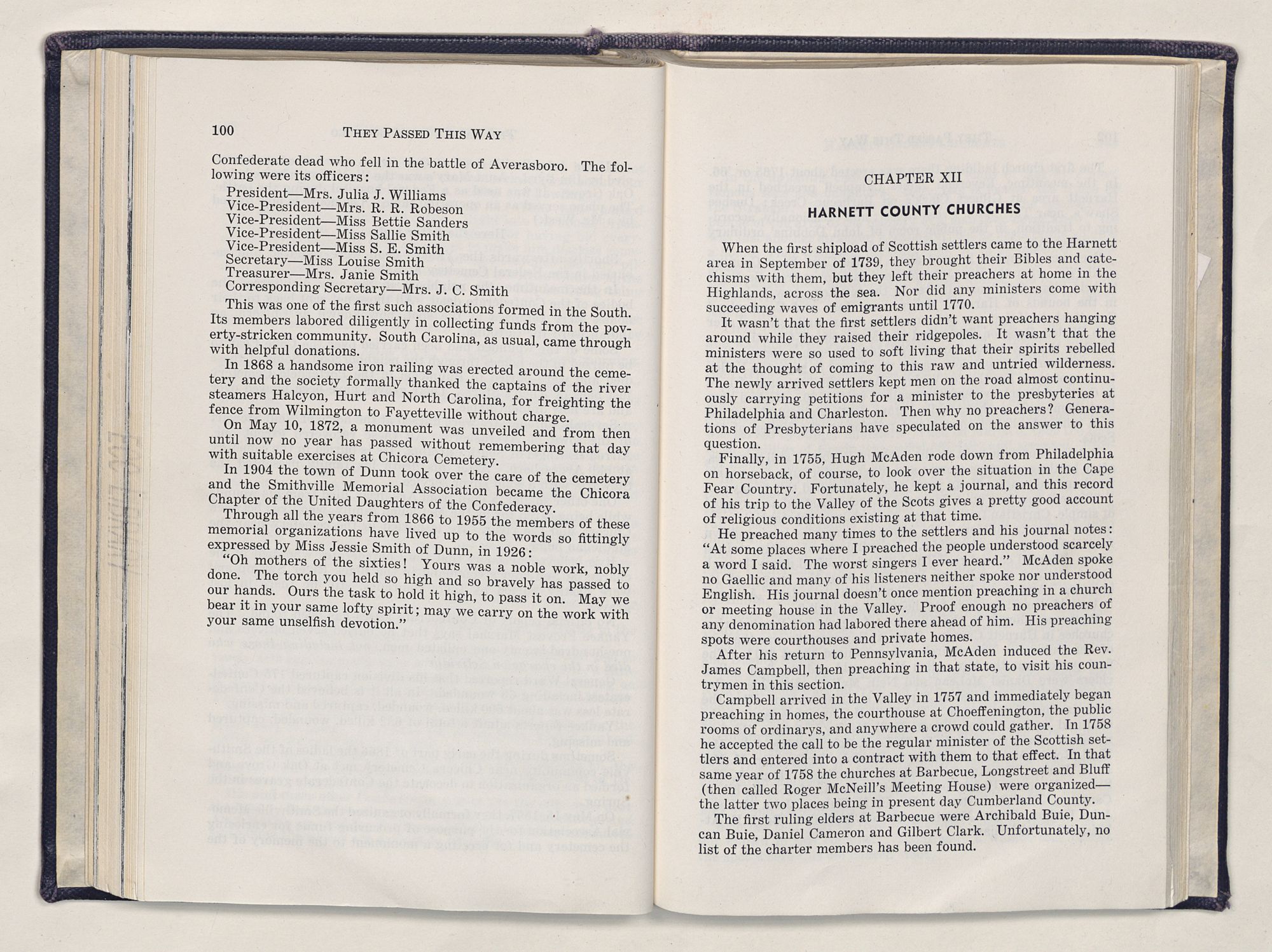 Particularly, do I want to give heart-felt thanks to two lovely ladies of Dunn, Miss Jessie Smith and Miss Flora McQueen. Out of the greatness of their hearts, they took time to instill in a little country boy a love for history that has resulted in this book.