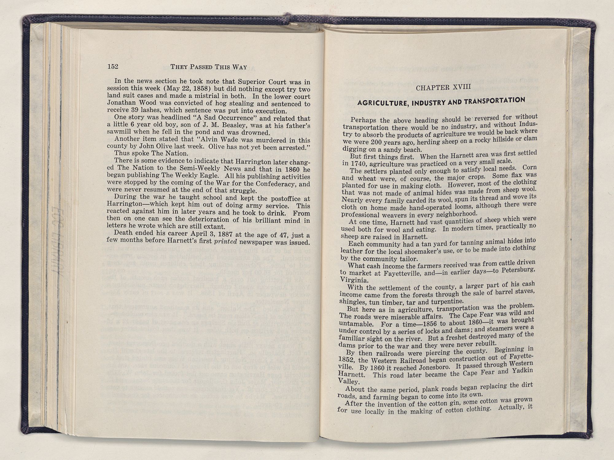 I have tried to make this a readable, narrative story of the men and women who made Harnett County what it is today by PASSING THIS WAY.