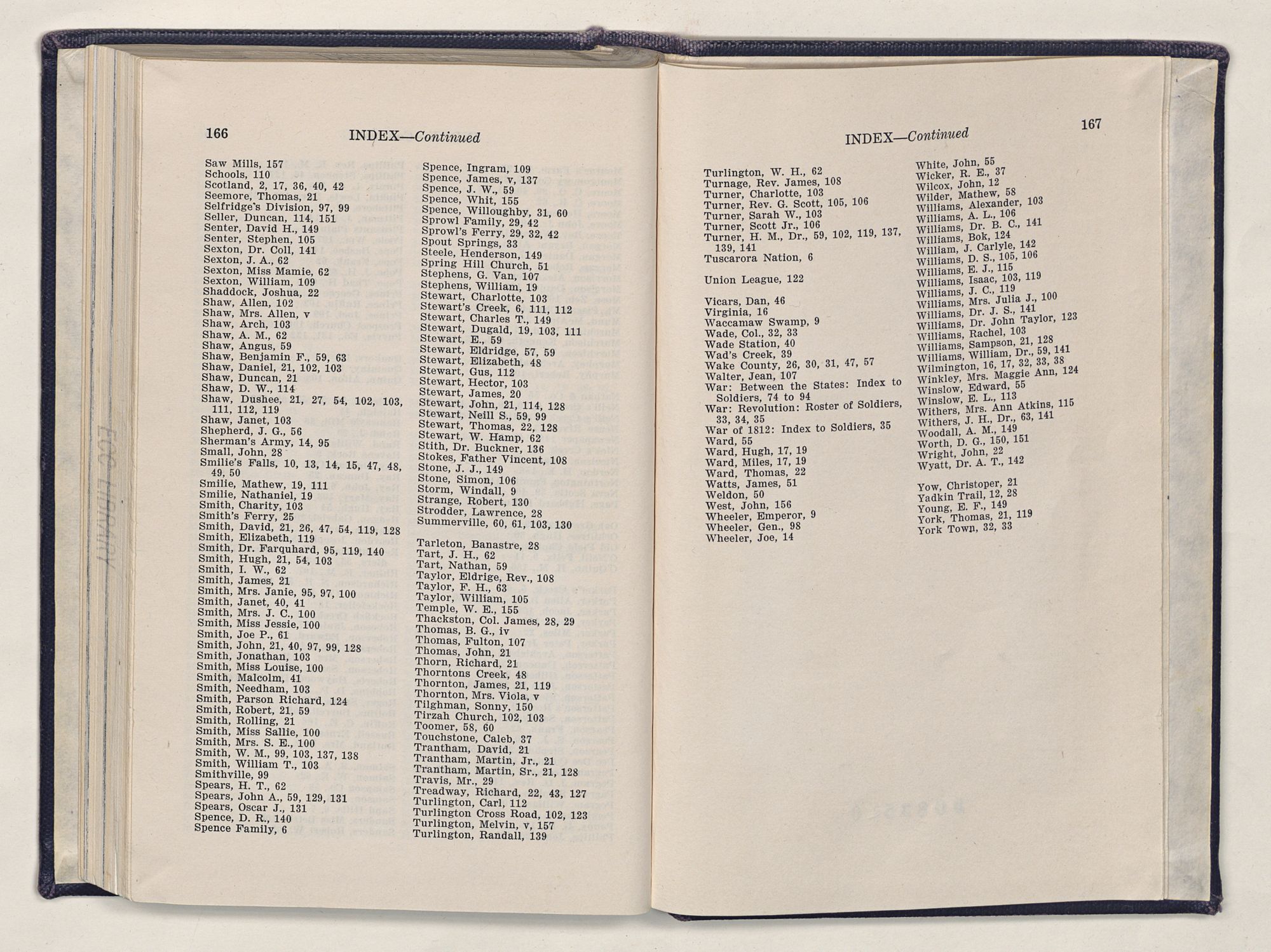 | Turnage, Rev. James, 108 | Wicker, R. E., 37 |