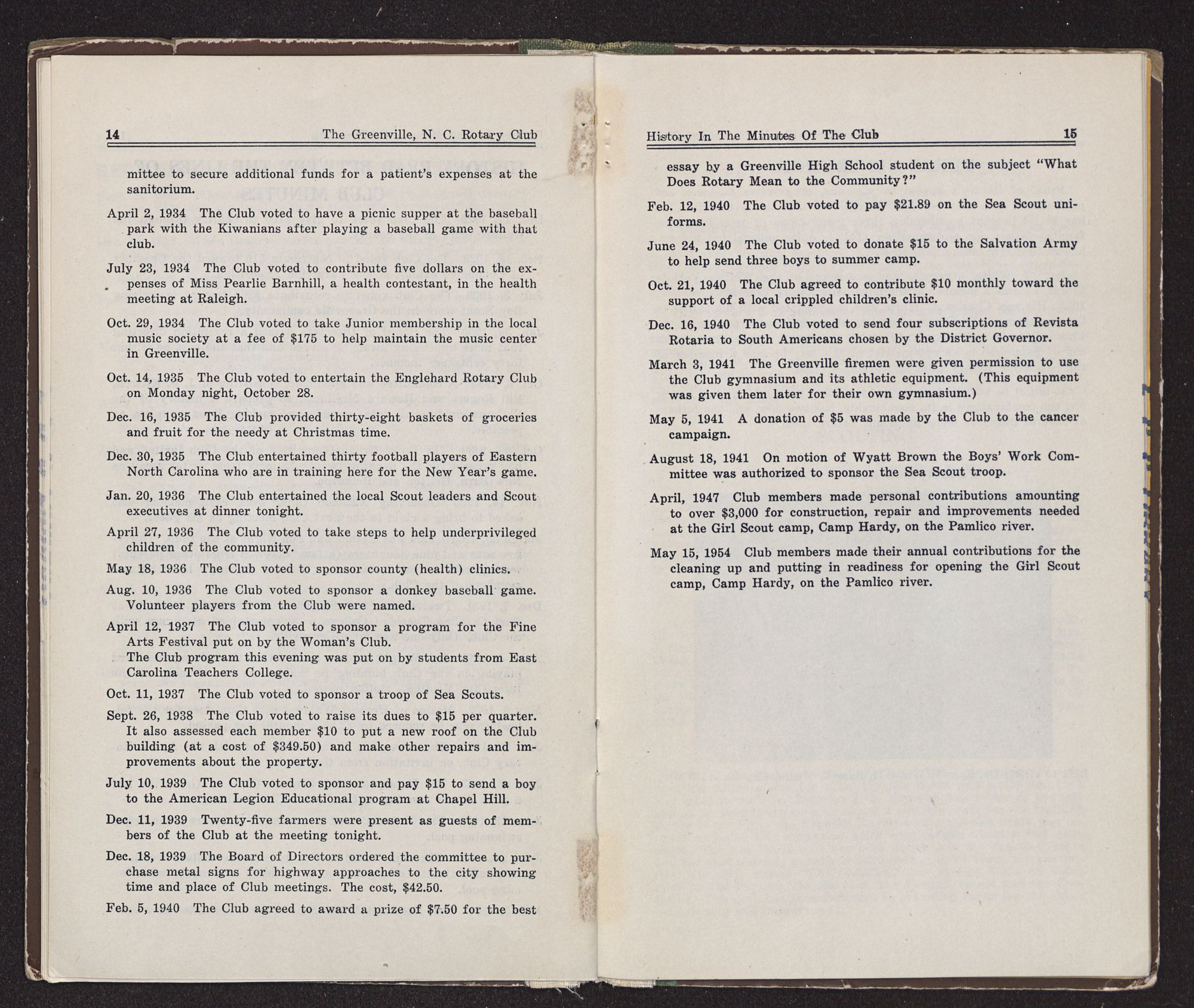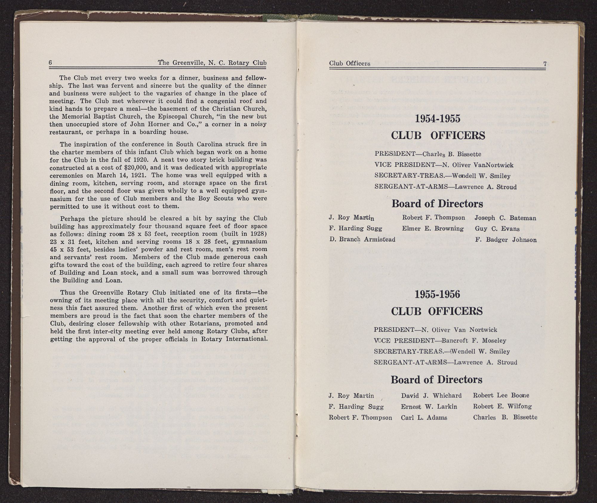 The Greenville club, formed in 1919, was the sixth to be formed in North Carolina. Clubs preceding it were Raleigh 1914, Wilmington and Asheville 1915, Charlotte 1916, and Wilson 1917. Then next in order came Washington, New Bern, Kinston and Fayetteville in 1920.