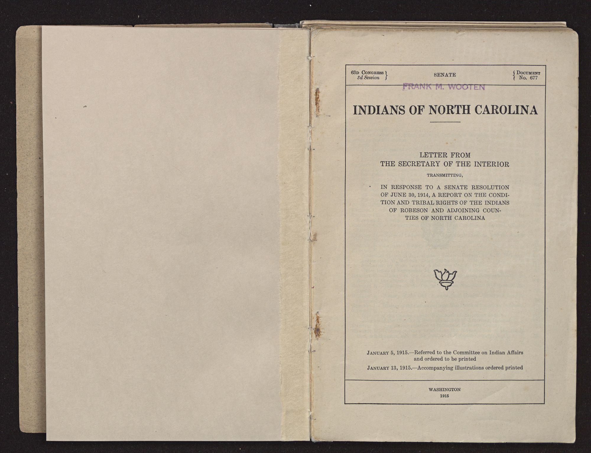 vignette JANUARY 5, 1915.—Referred to the Committee on Indian Affairs and ordered to be printed JANUARY 13, 1915.—Accompanying illustrations ordered printed WASHINGTON1915