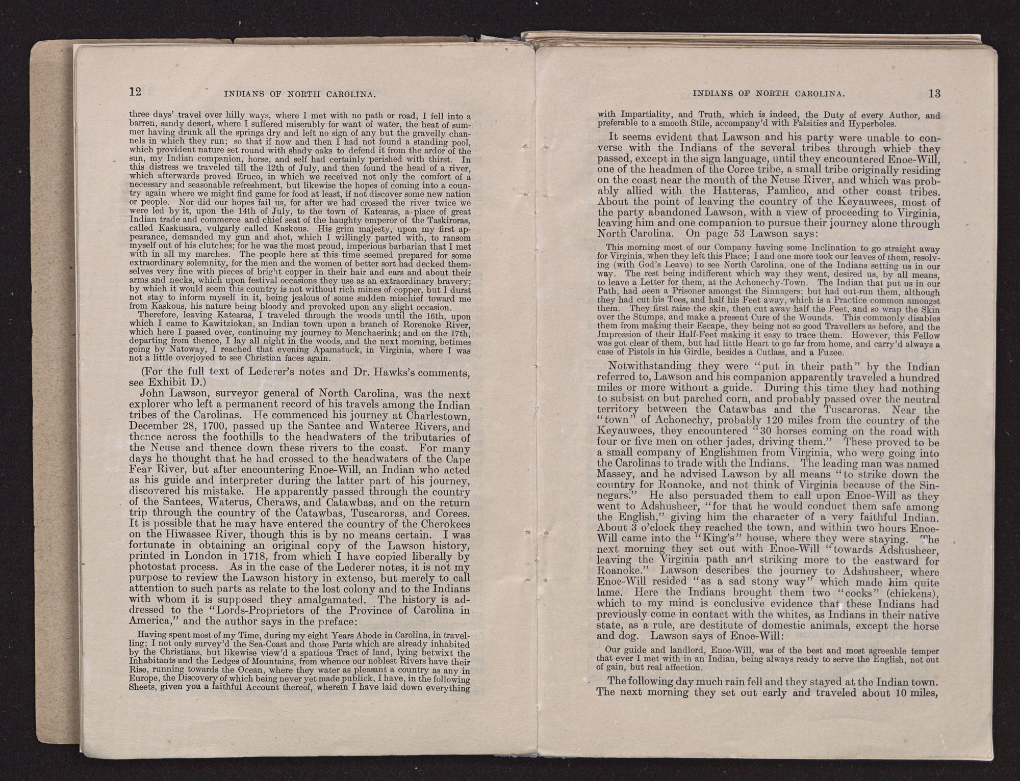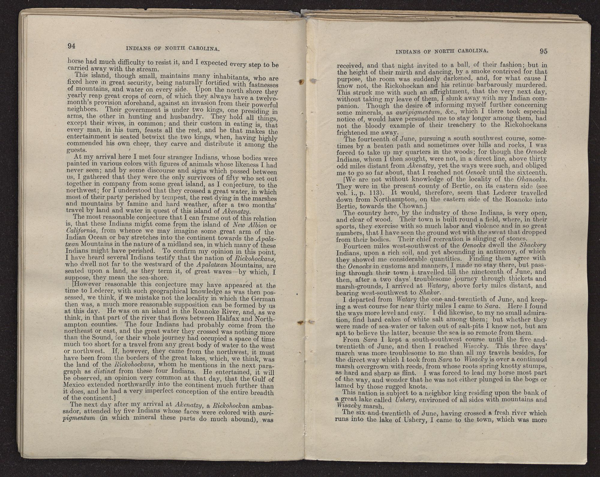 Dr. Hawks found himself unable to reconcile some of Lederer's narrative with later well-known geographical and historical facts. This was probably due to inaccuracies in courses and distances traveled by the explorer, to errors in names and locations, and to still