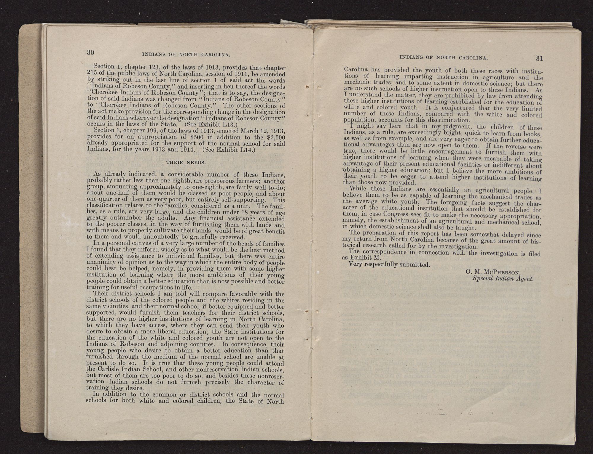 By Special Indian Agent O. M. MCPHERSON.