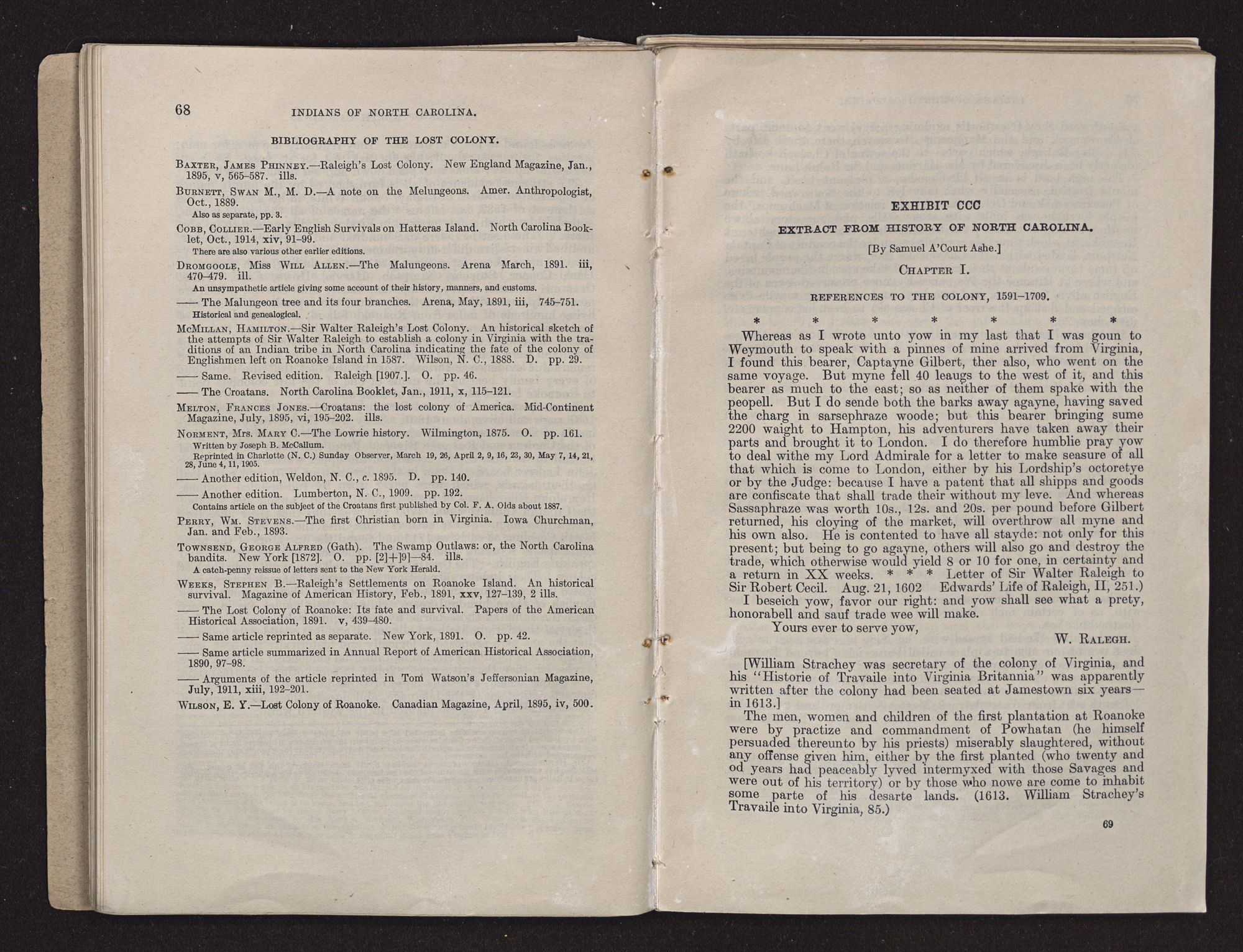 | EXHIBIT CC.—The Lost Colony of Roanoke: Its Fate and Survival, by Stephen B. Weeks | 58 |