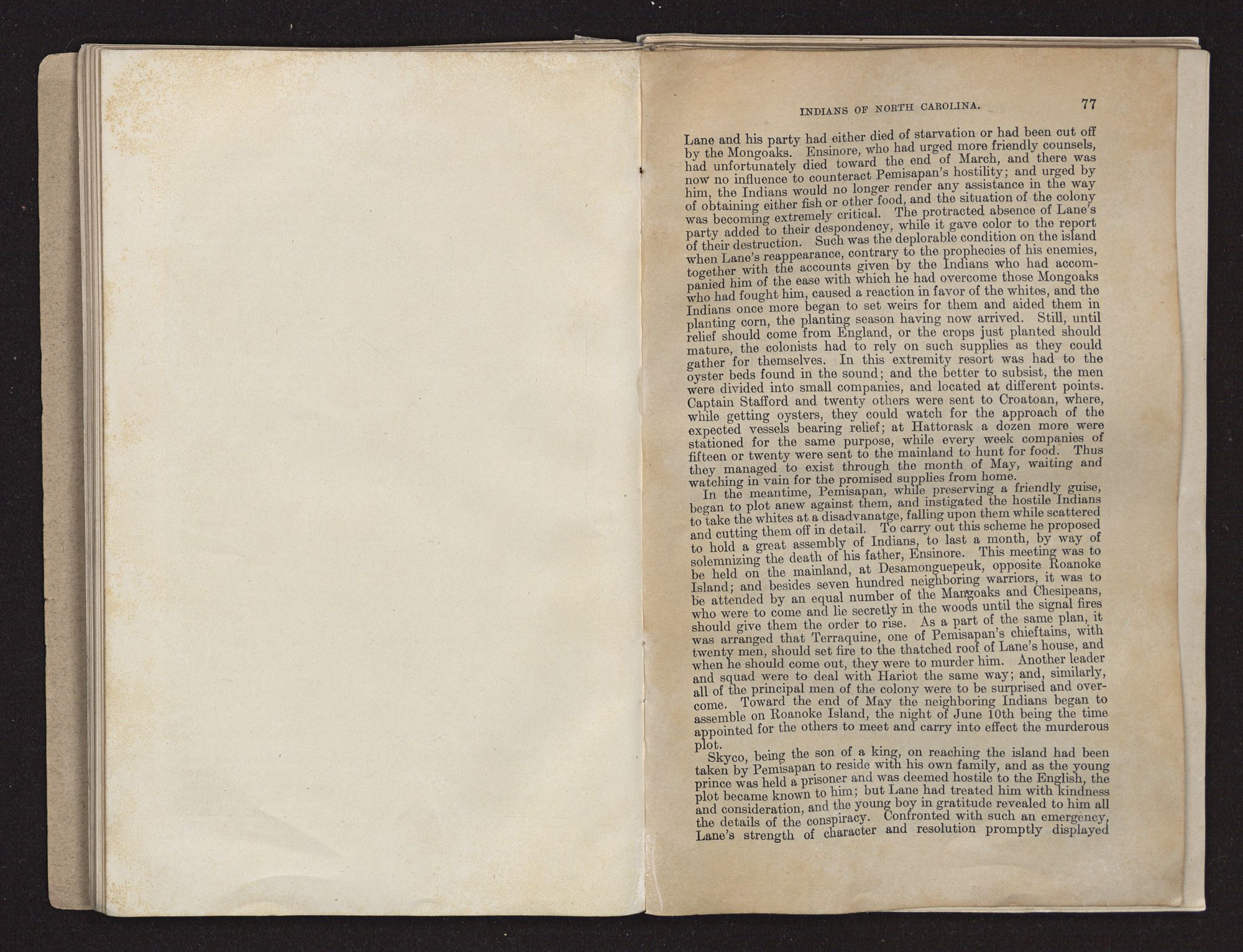 I beg leave to say that Croatan was in 1585 and thereabouts the name of an island and Indian village just north of Cape Hatteras, N. C. White's colony of 120 men and women was landed on Roanoke Island just to the north in 1587, and in 1590 when White returned to revisit the colony he found no trace of it on Roanoke Island, save the name “Croatoan” carved upon a tree, which, according to a previous understanding, was interpreted to mean that the colonists had left Roanoke Island for Croatan. No actual trace of the missing colonists was ever found, but more than 100 years afterwards Lawson obtained traditional information from the Hatteras Indians which led him to believe that the colonists had been incorporated with the Indians. It It was thought that traces of white blood could be discovered among the Indians, some among them having grey eyes. It is probable that the greater number of the colonists were killed; but it was quite in keeping with Indian usages that a greater or less number, especially women and children, should have been made captive and subsequently incorporated into the tribe.