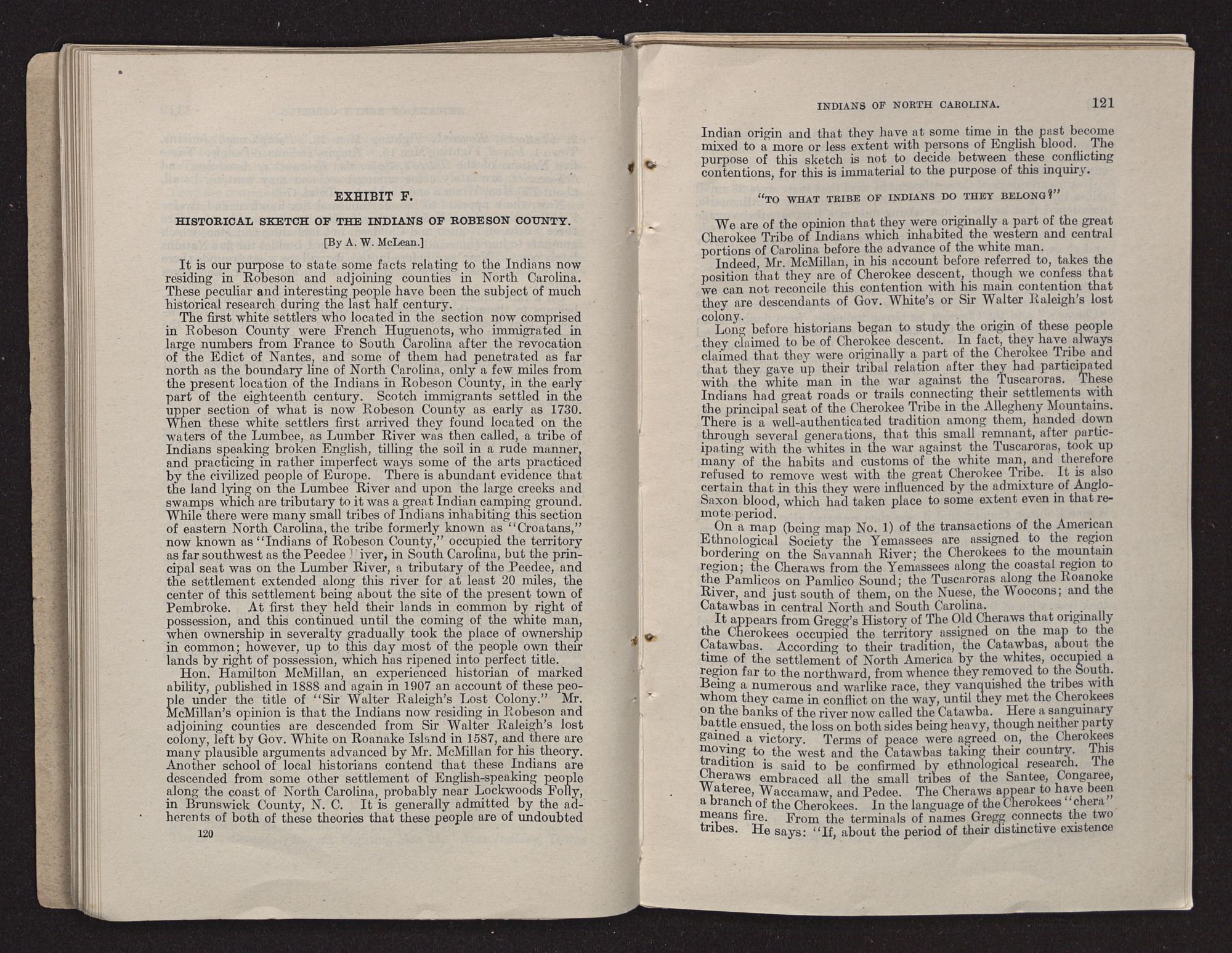 | Historical Sketch of the Indians of Robeson County, by A. W. McLean | 120 |