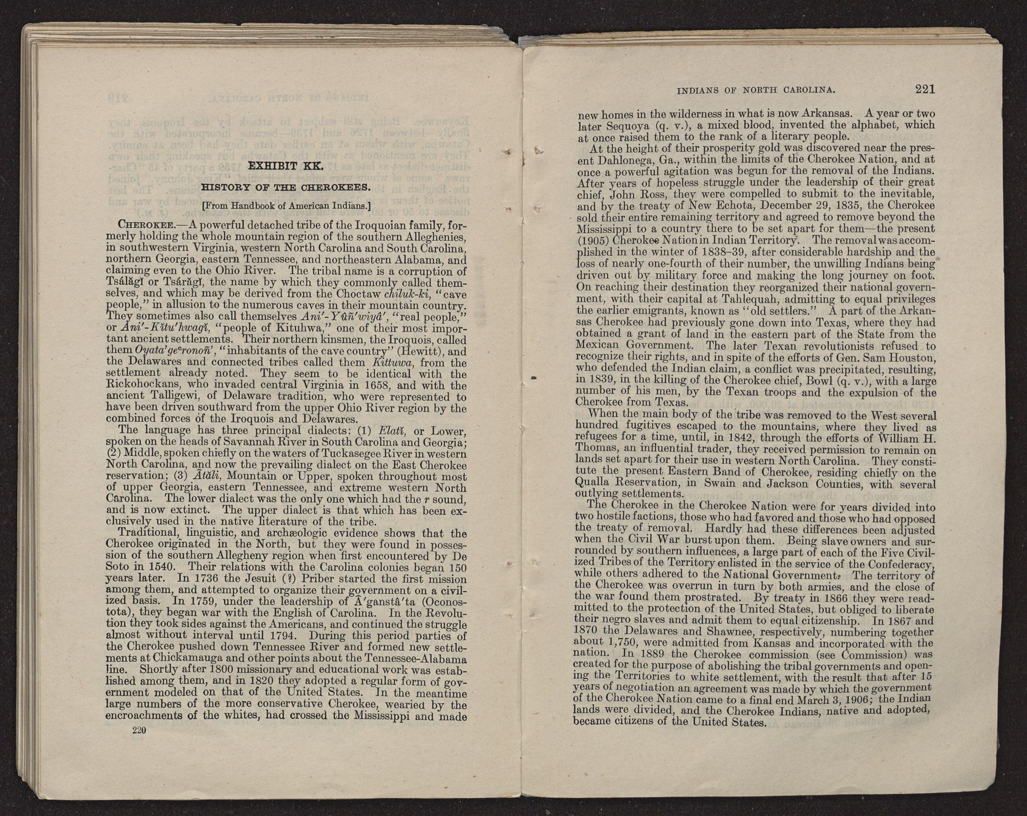 | History of the Cherokees (from Handbook of American Indians) | 220 |