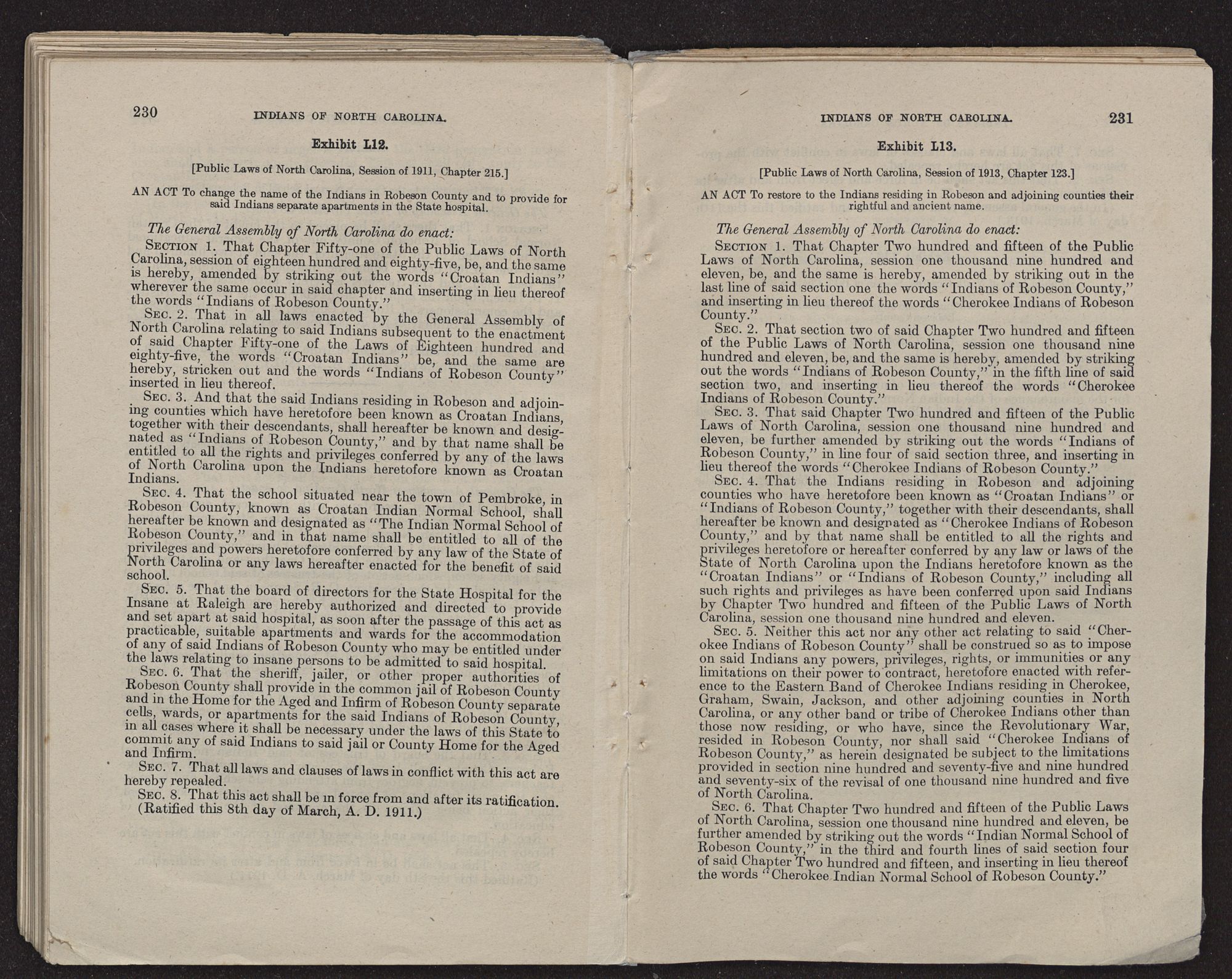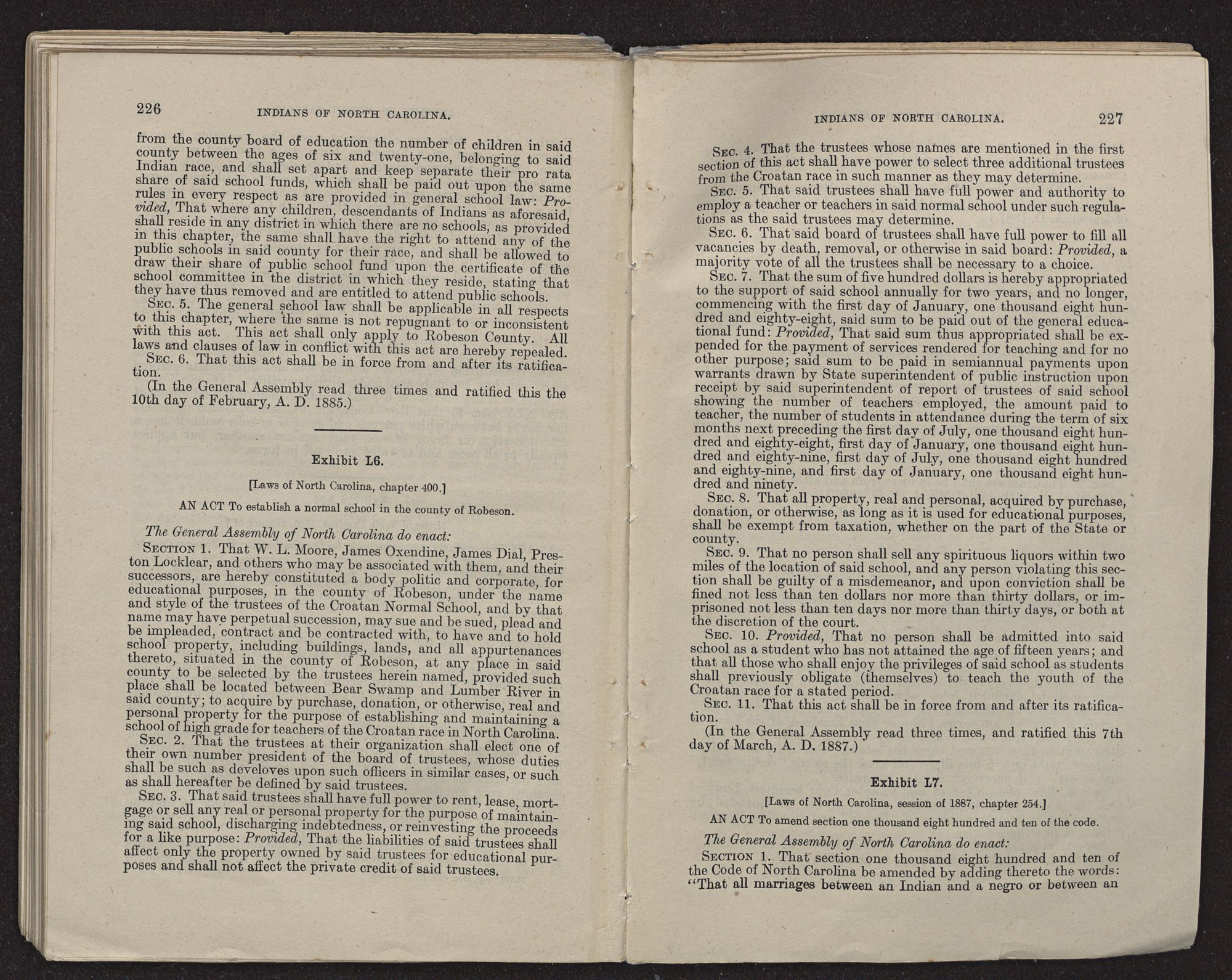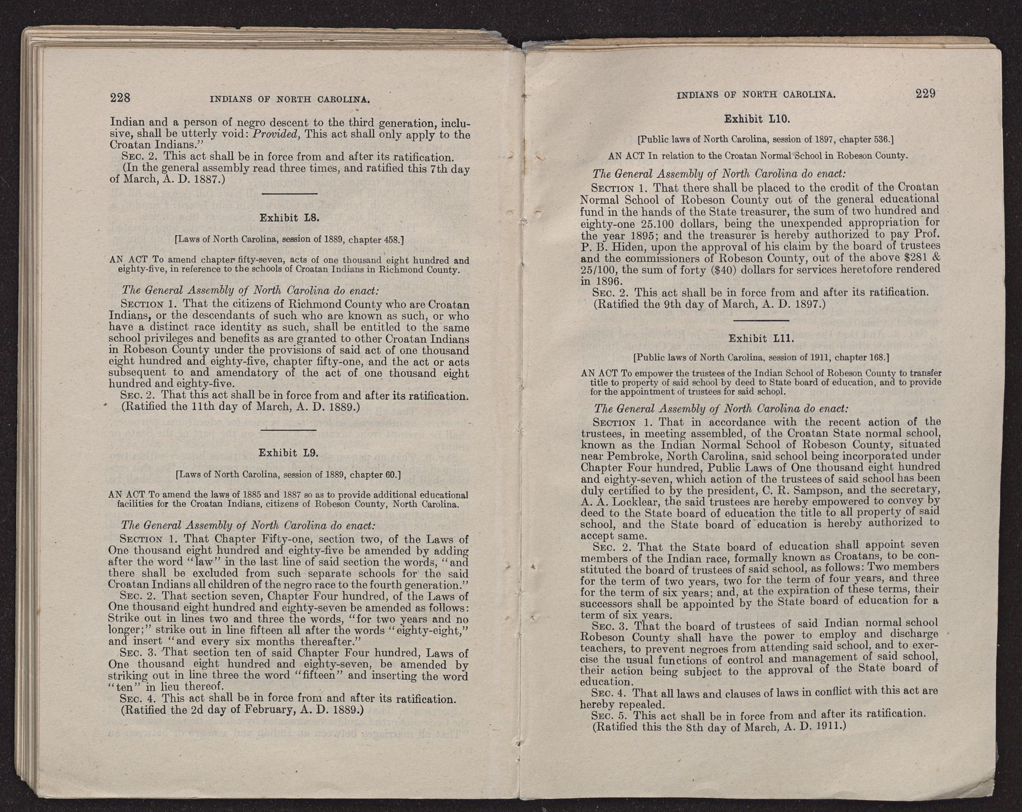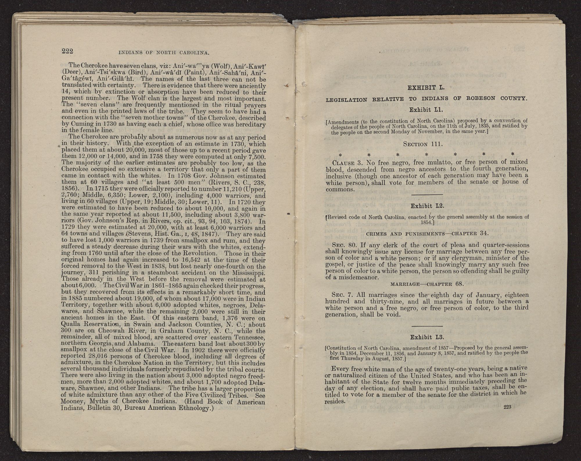 | EXHIBIT L.—Legislation relative to Indians of Robeson County | 223 |