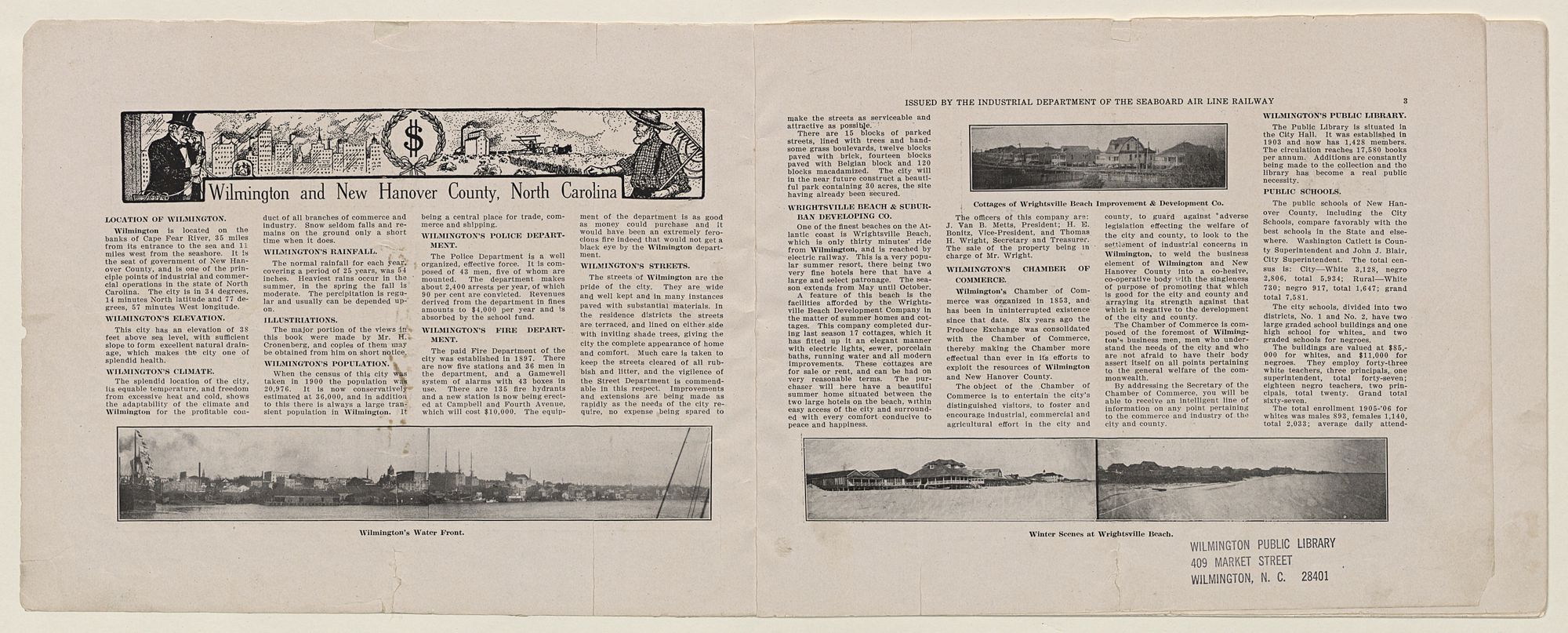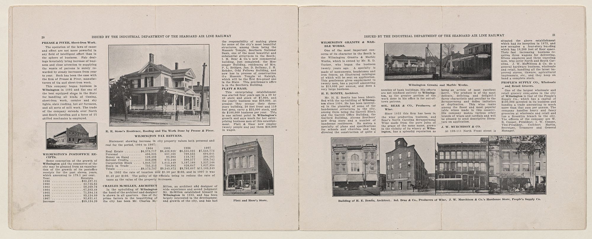 Further information relating to the advantages of Wilmington from a manufacturing point of view will be furnished on application to the Secretary of the Chamber of Commerce, Wilmington, N. C.