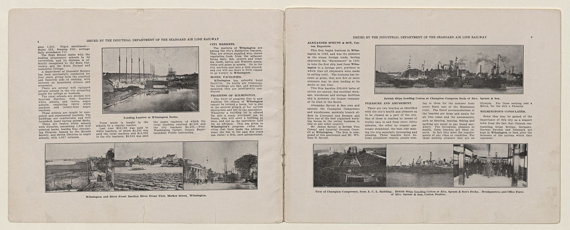 View of Champion Compresses, from A. C. L. Building. British Ships Loading Cotton at Alex. Sprunt & Son's Docks. Headquarters and Office Force