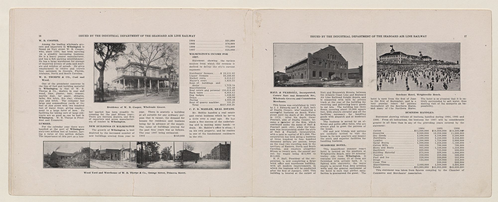 One of the largest Industrial concerns in Wilmington and one that is a very important factor in the city's commerce is the Chadbourn Sash, Door & Lumber Company, which was organized in 1905 with a capital of $32,000 and now handles a business aggregating $150,000 per annum.