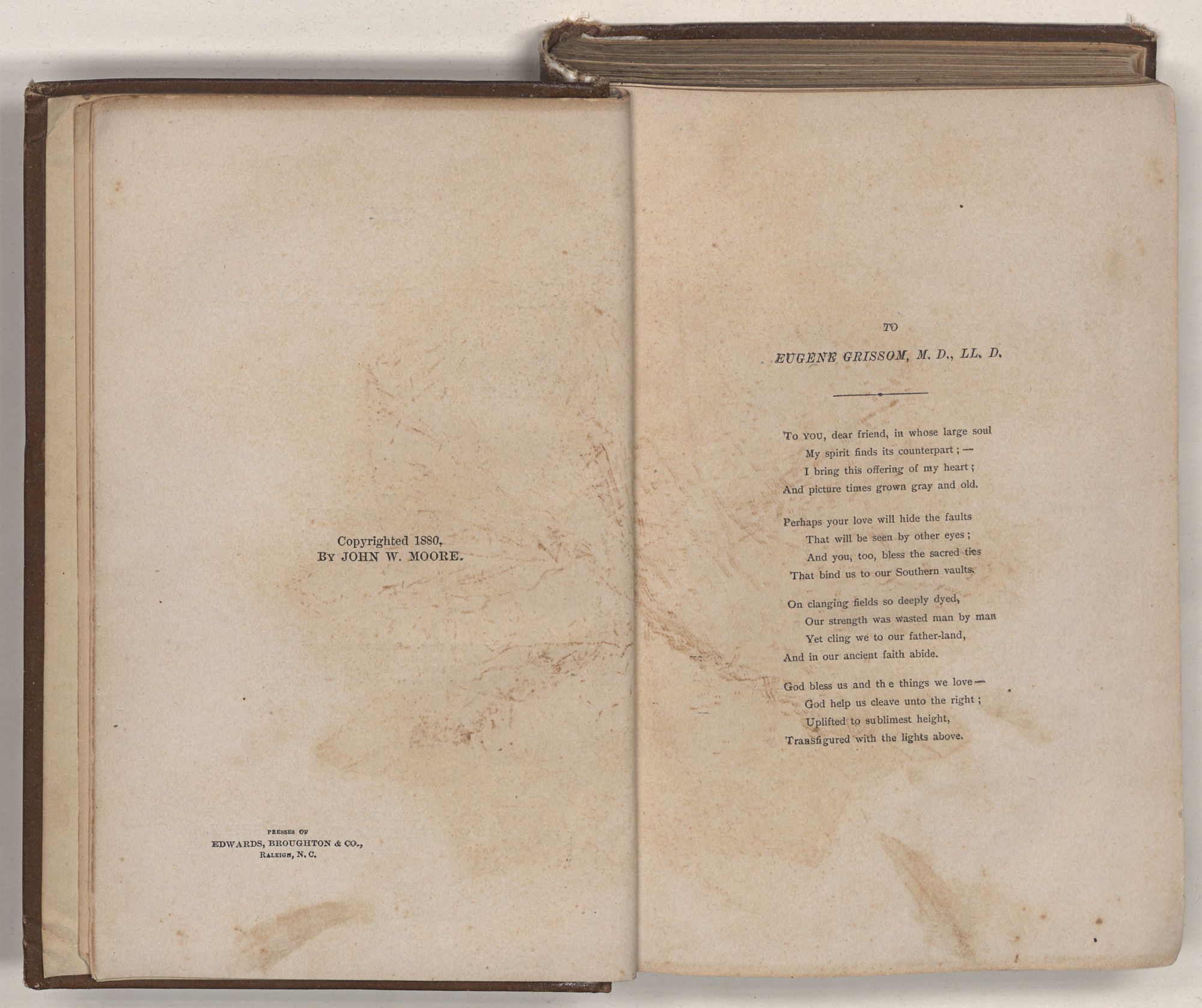 Copyrighted 1880, BY JOHN W. MOORE. PRESSES OF EDWARDS, BROUGHTON & CO., RALEIGH, N.C.