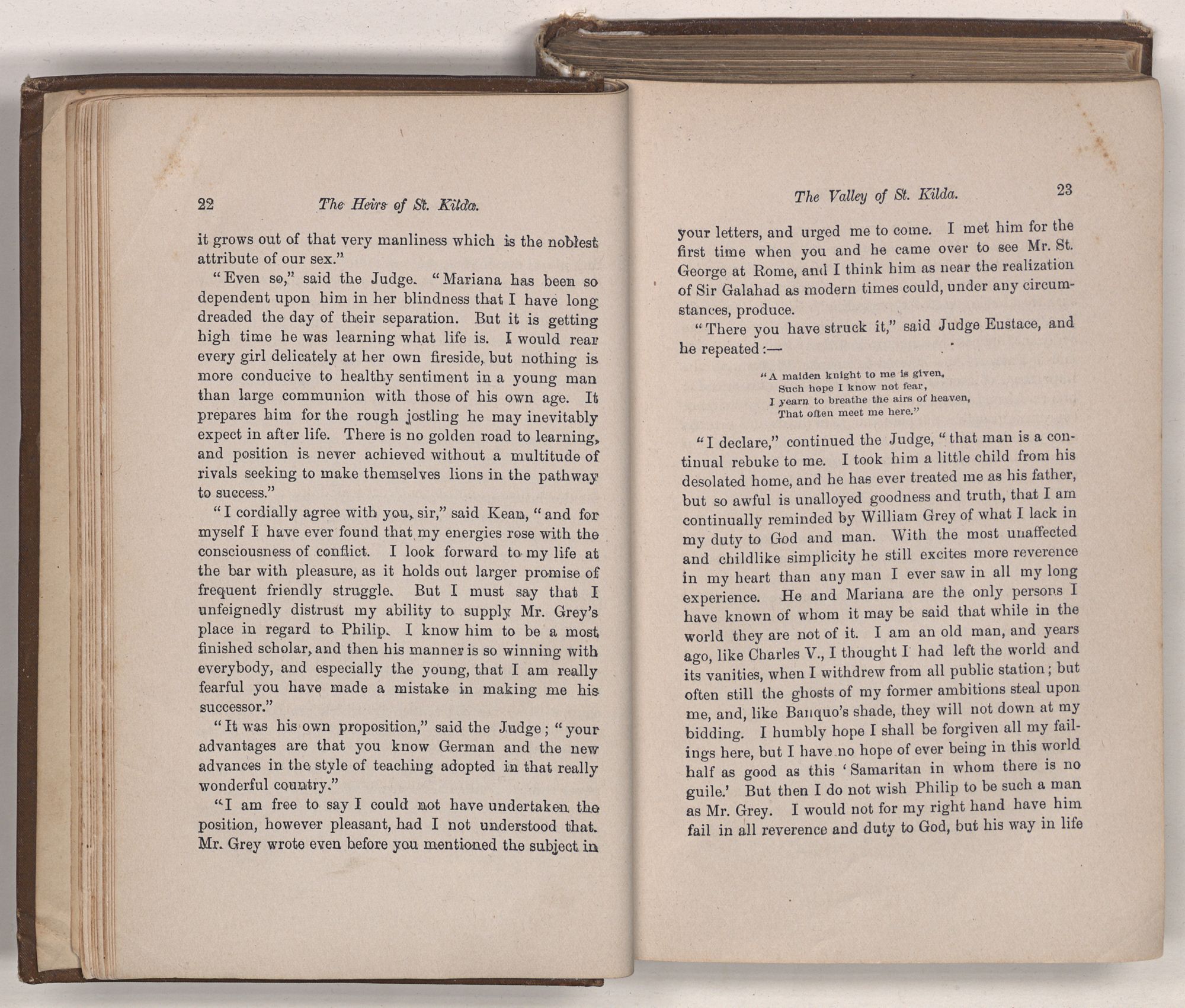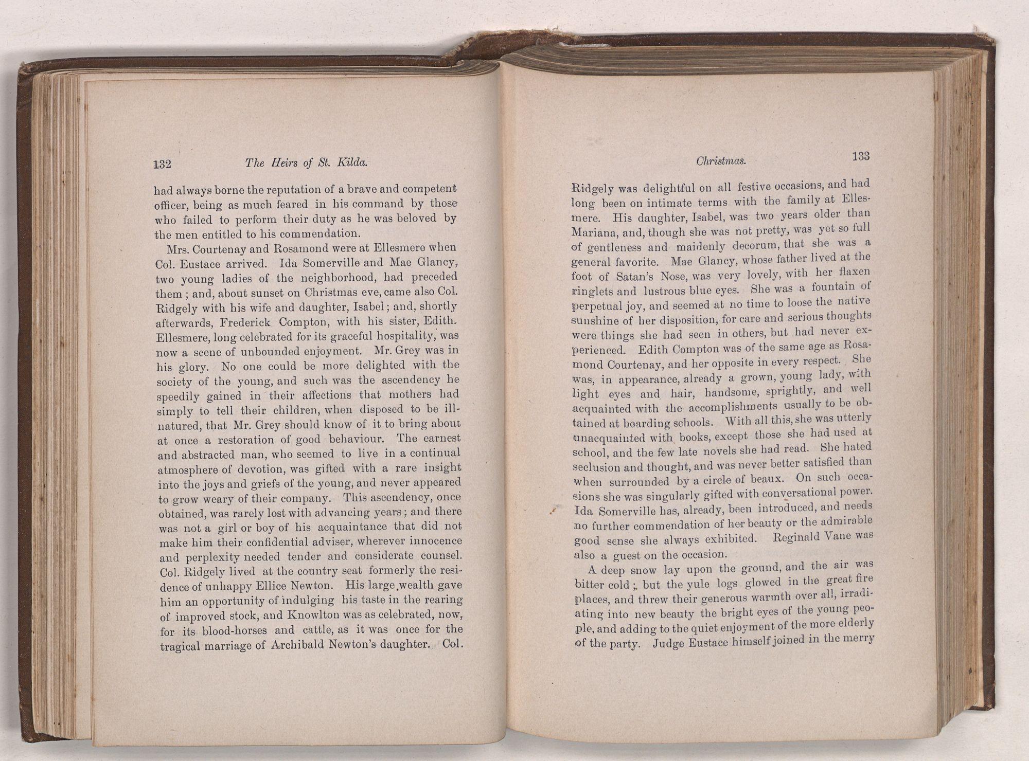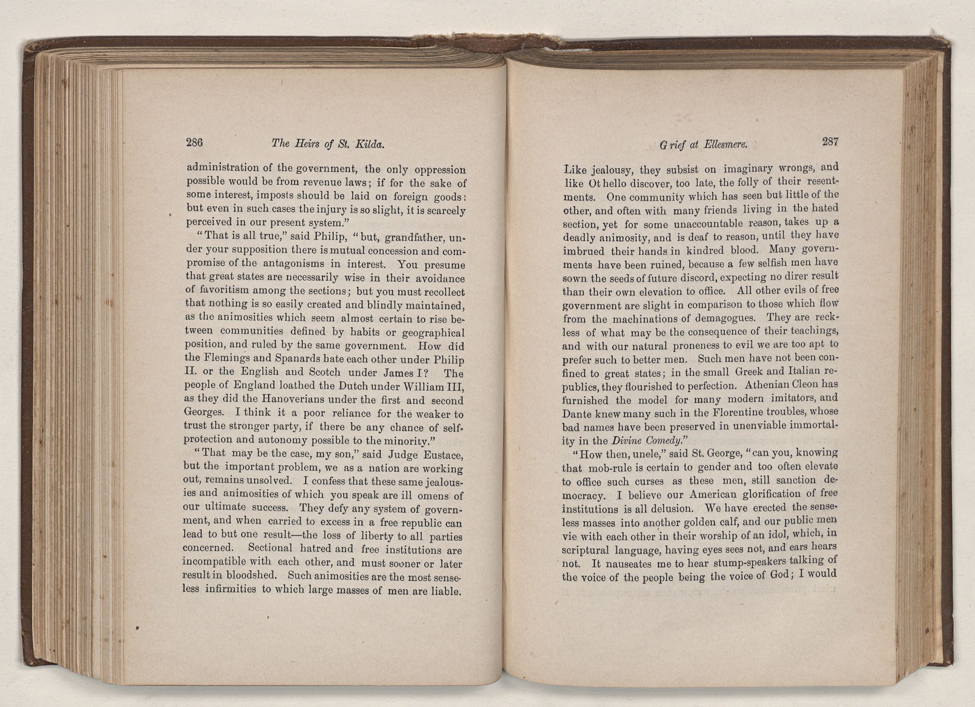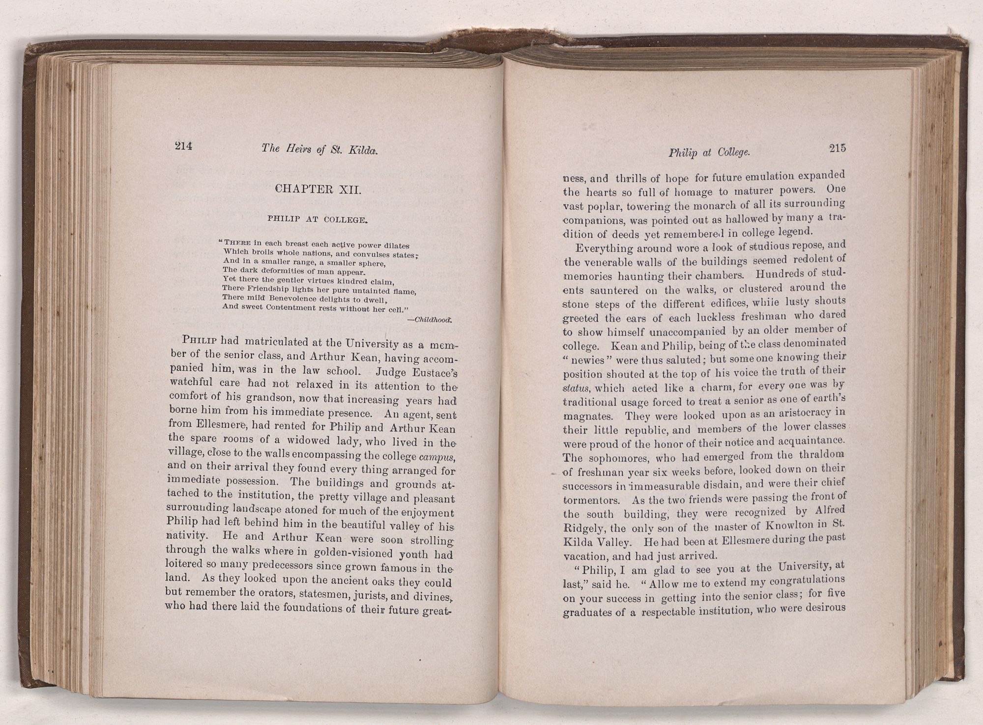 At the east end of the library sat Mrs. Eustace talking with Mr. Mason Somerville, who was on a visit with his daughter, Ida, to the family at Ellesmere. He lived at St. Kilda, and was then the leading counsel in that portion of the State. He had been the law-partner of Gov. Eustace until that gentleman gave up the practice for the larger excitement of a seat in the national House of Representatives. Over on their right sat Philip, Ida Somerville and Mariana.