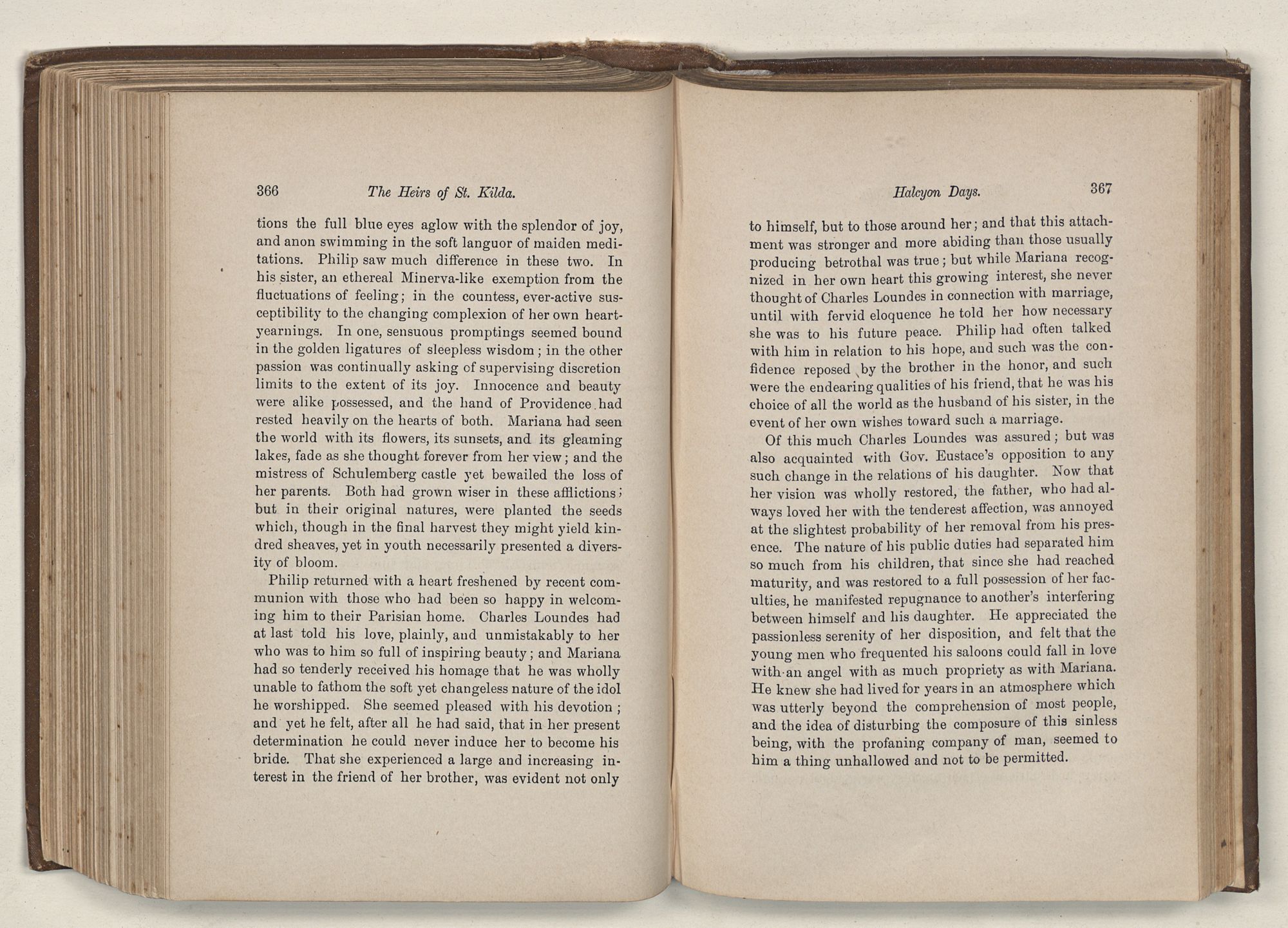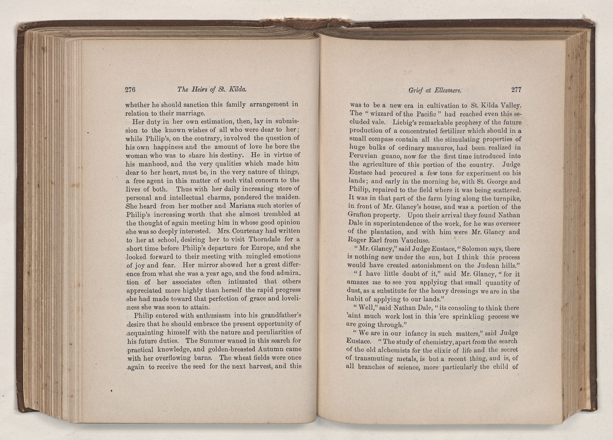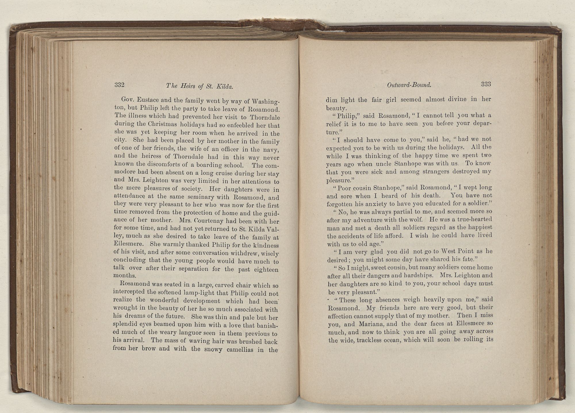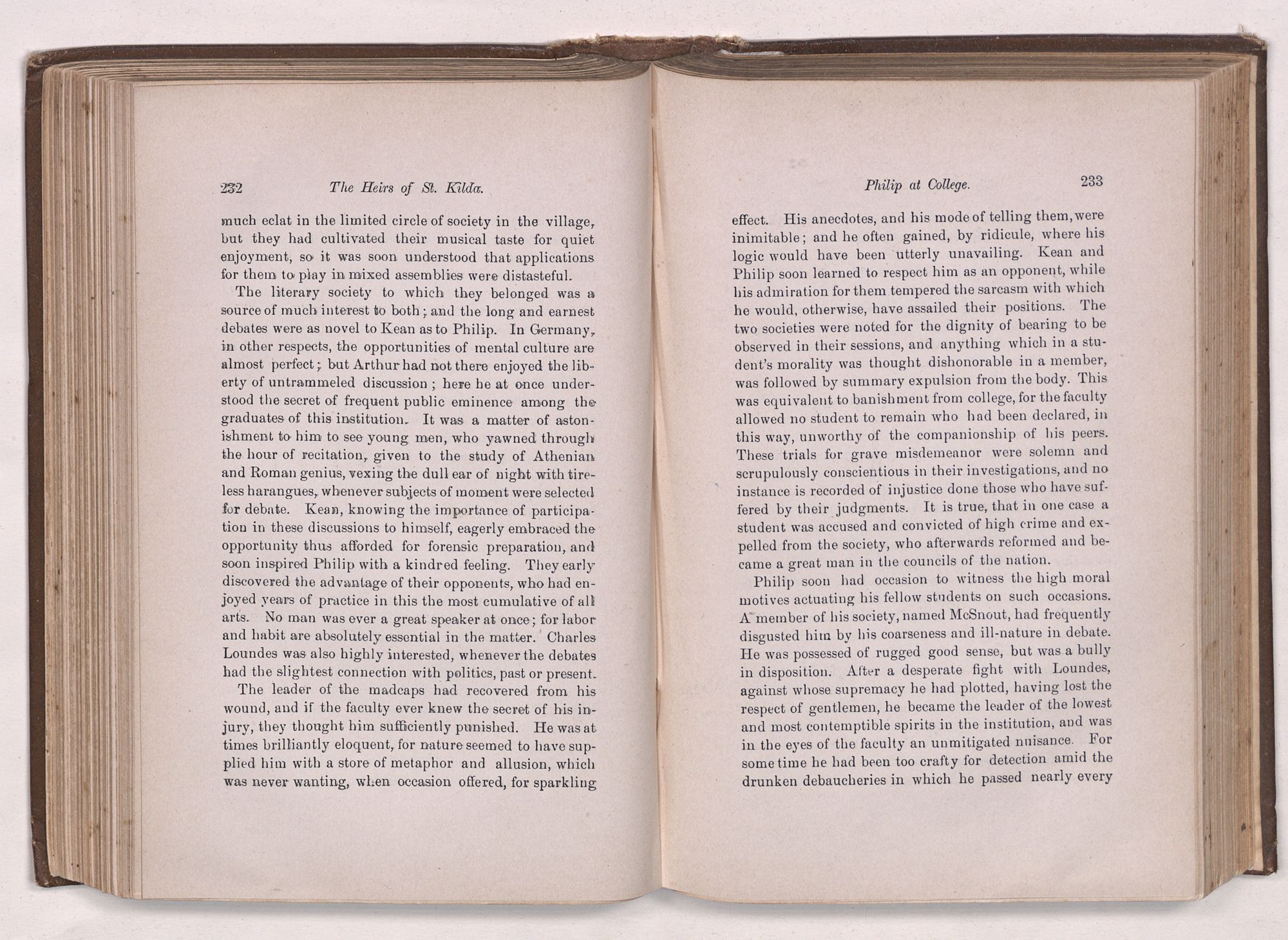 At the east end of the library sat Mrs. Eustace talking with Mr. Mason Somerville, who was on a visit with his daughter, Ida, to the family at Ellesmere. He lived at St. Kilda, and was then the leading counsel in that portion of the State. He had been the law-partner of Gov. Eustace until that gentleman gave up the practice for the larger excitement of a seat in the national House of Representatives. Over on their right sat Philip, Ida Somerville and Mariana.