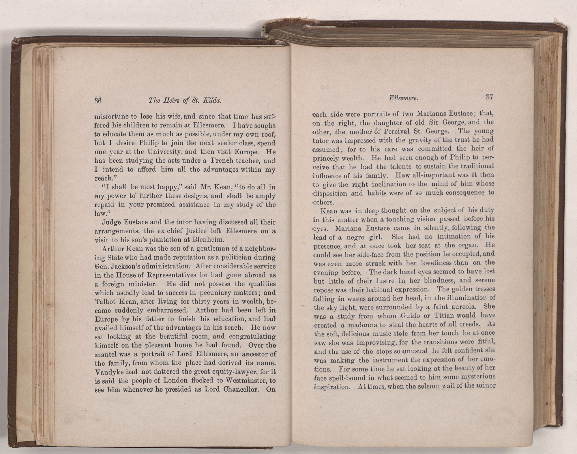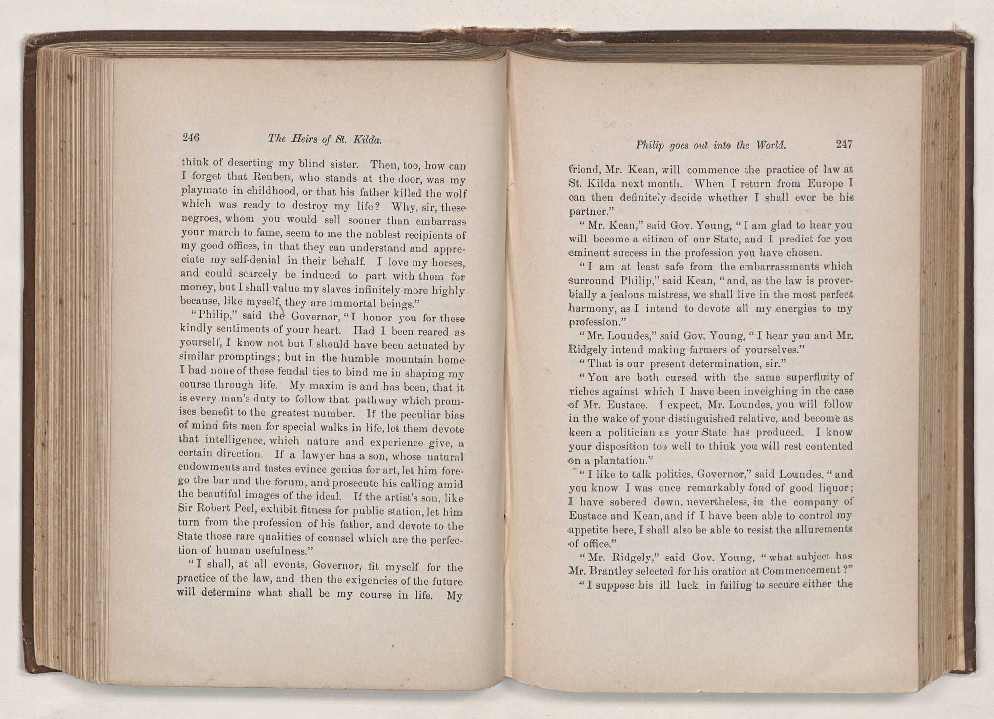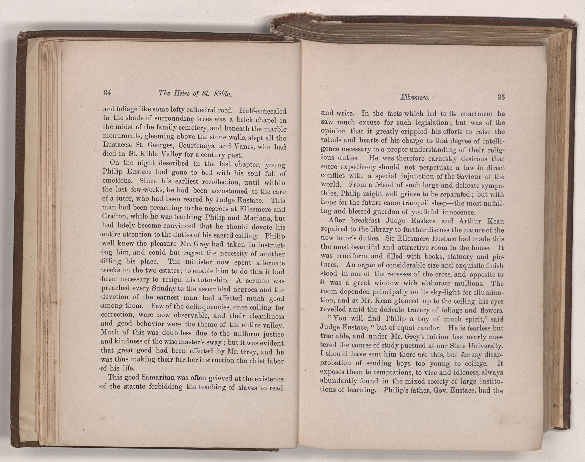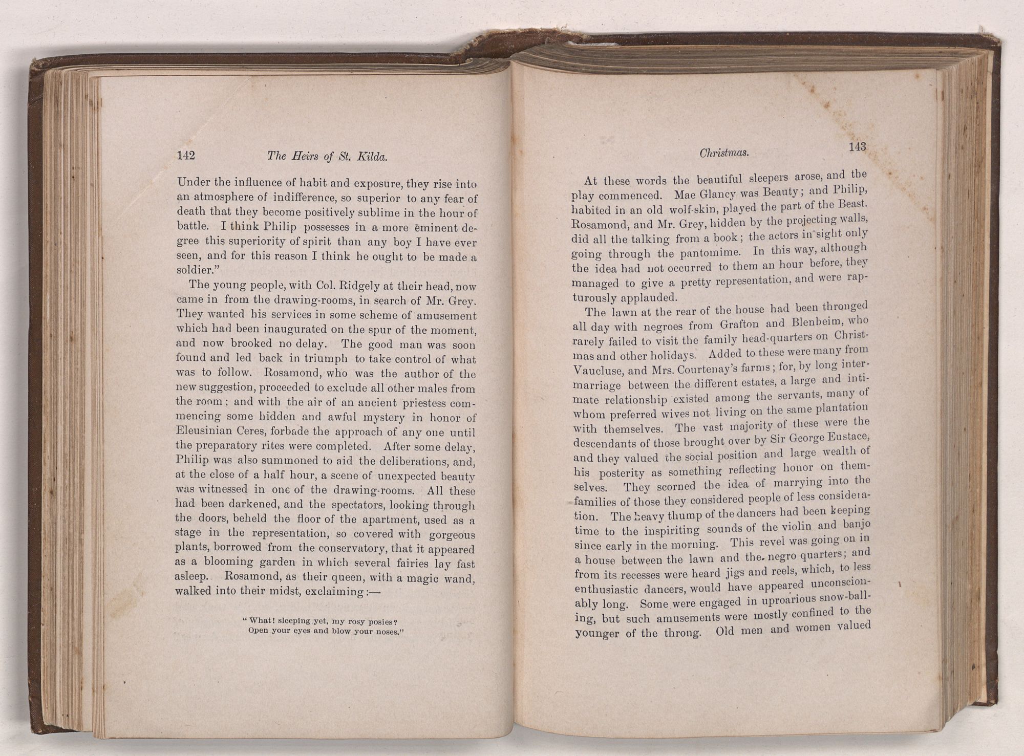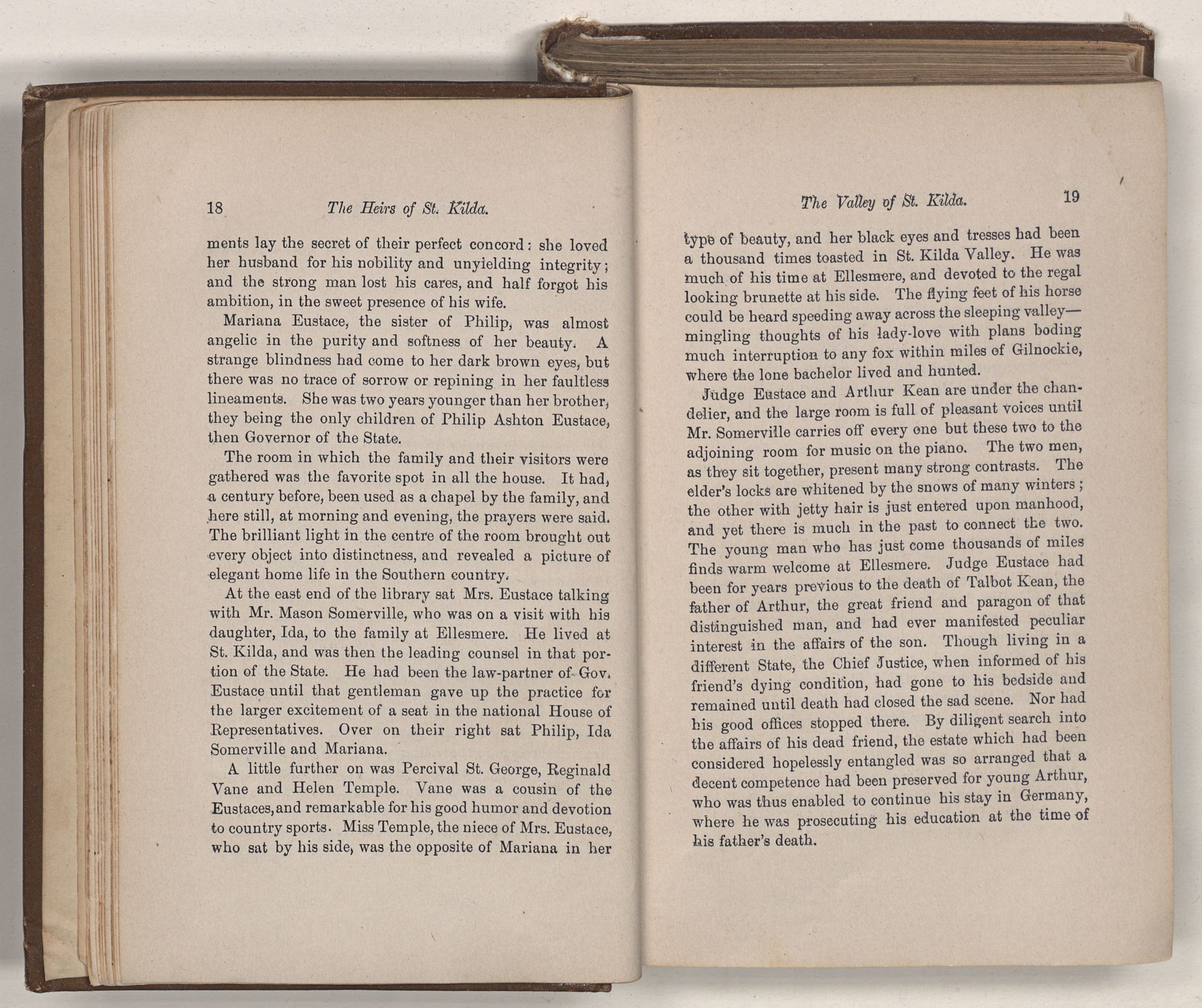 The heirs of St. Kilda; a story of the southern past. Raleigh : Edwards, Broughton, 1881 [c1880] 493 p. 21 cm.