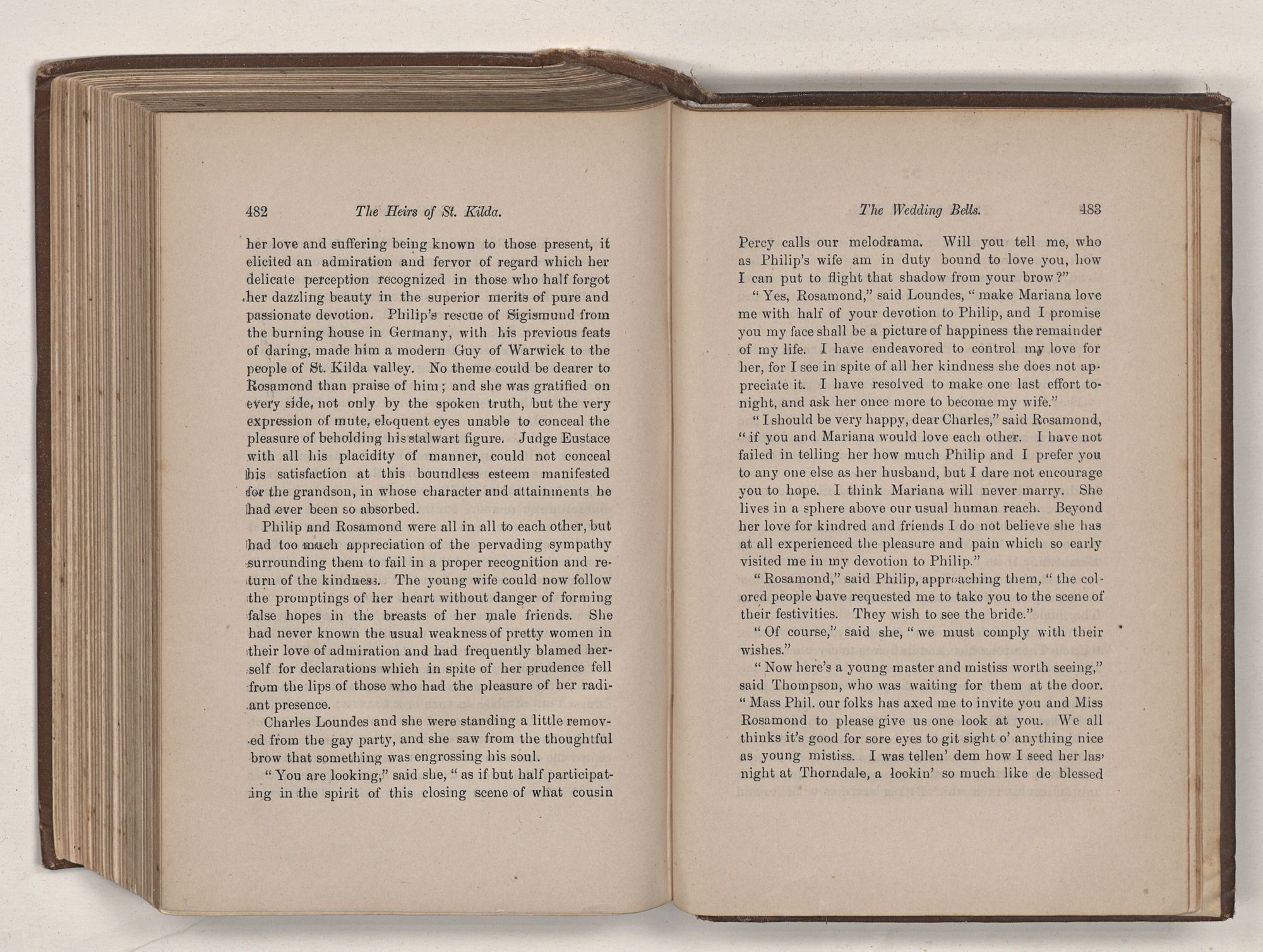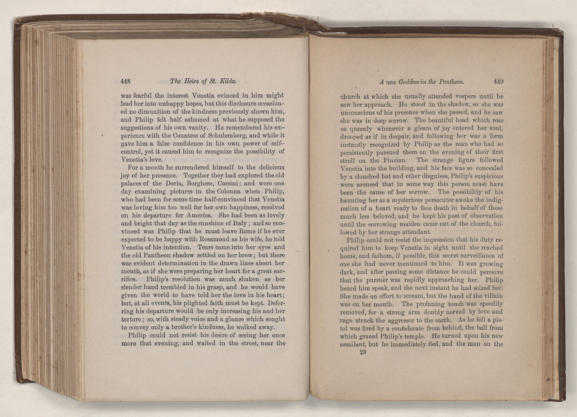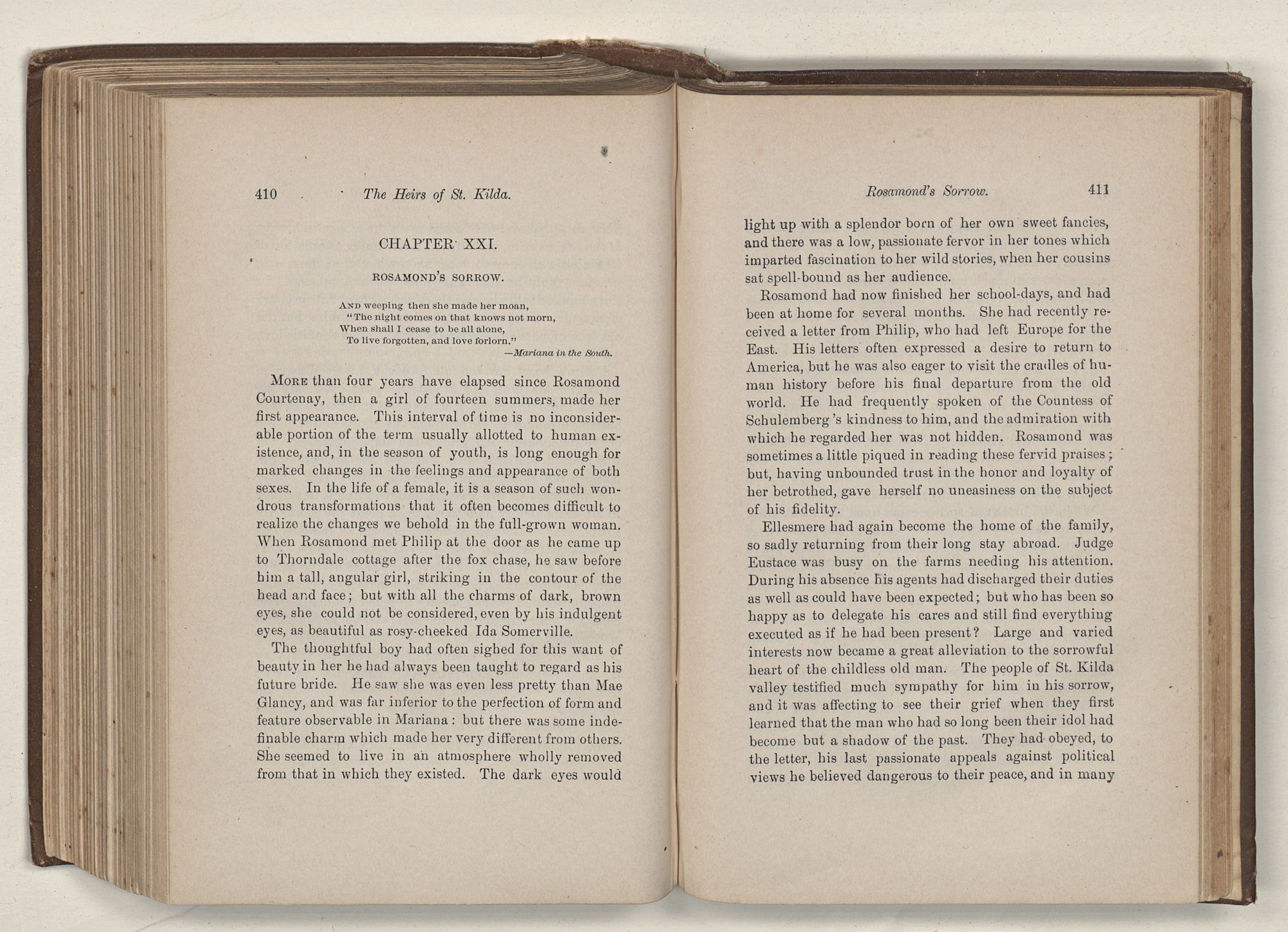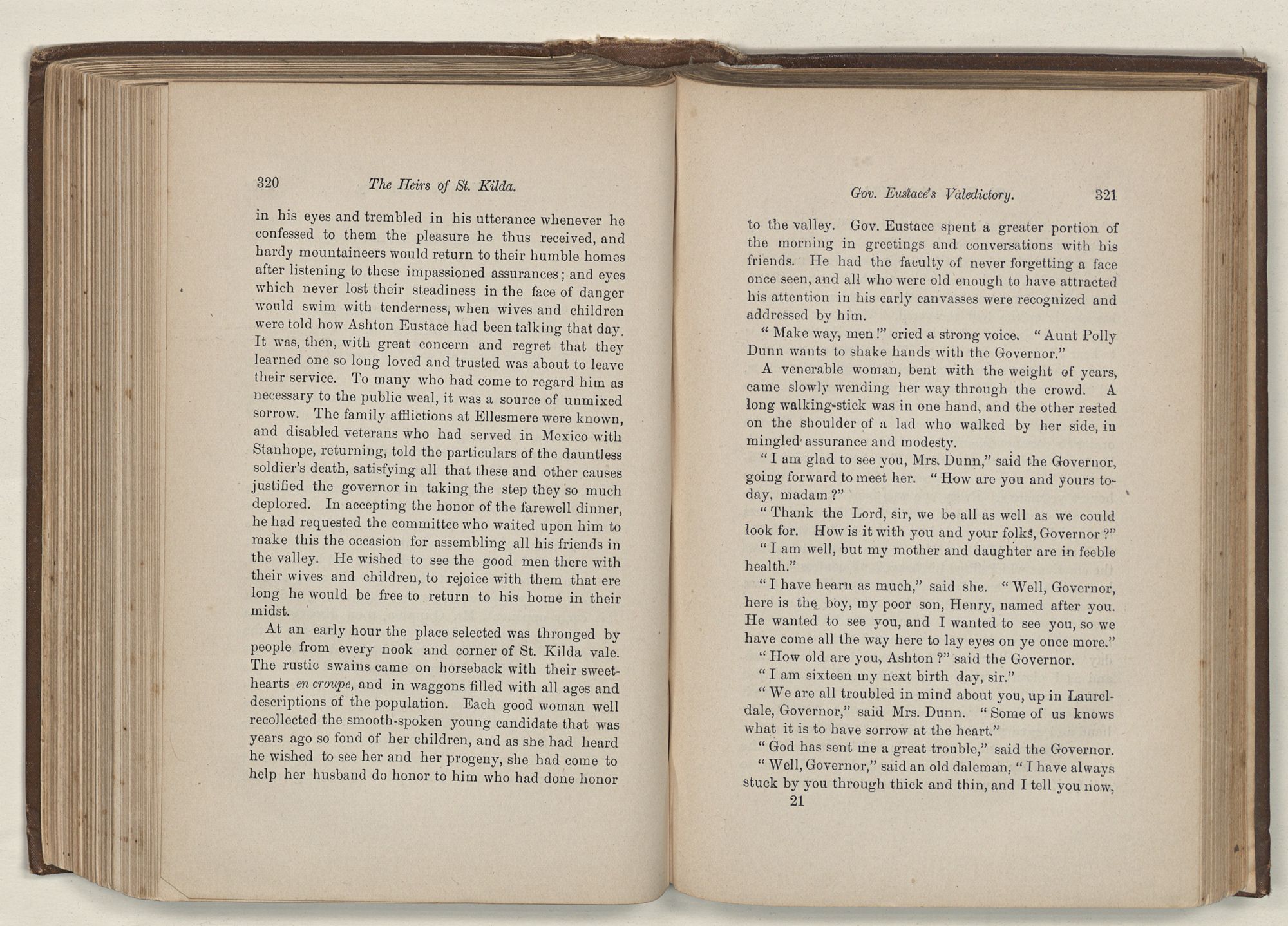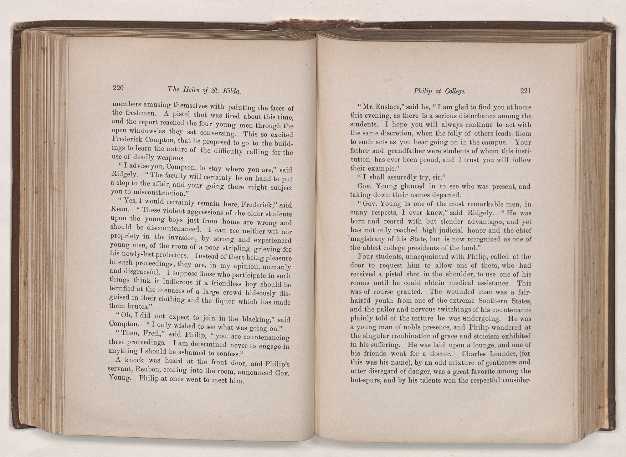 The heirs of St. Kilda; a story of the southern past. Raleigh : Edwards, Broughton, 1881 [c1880] 493 p. 21 cm.