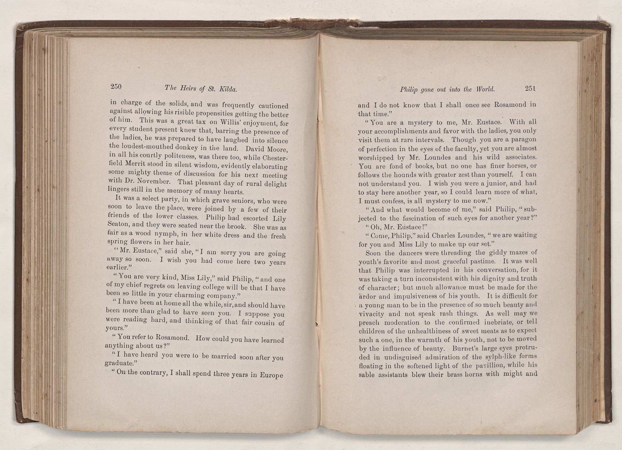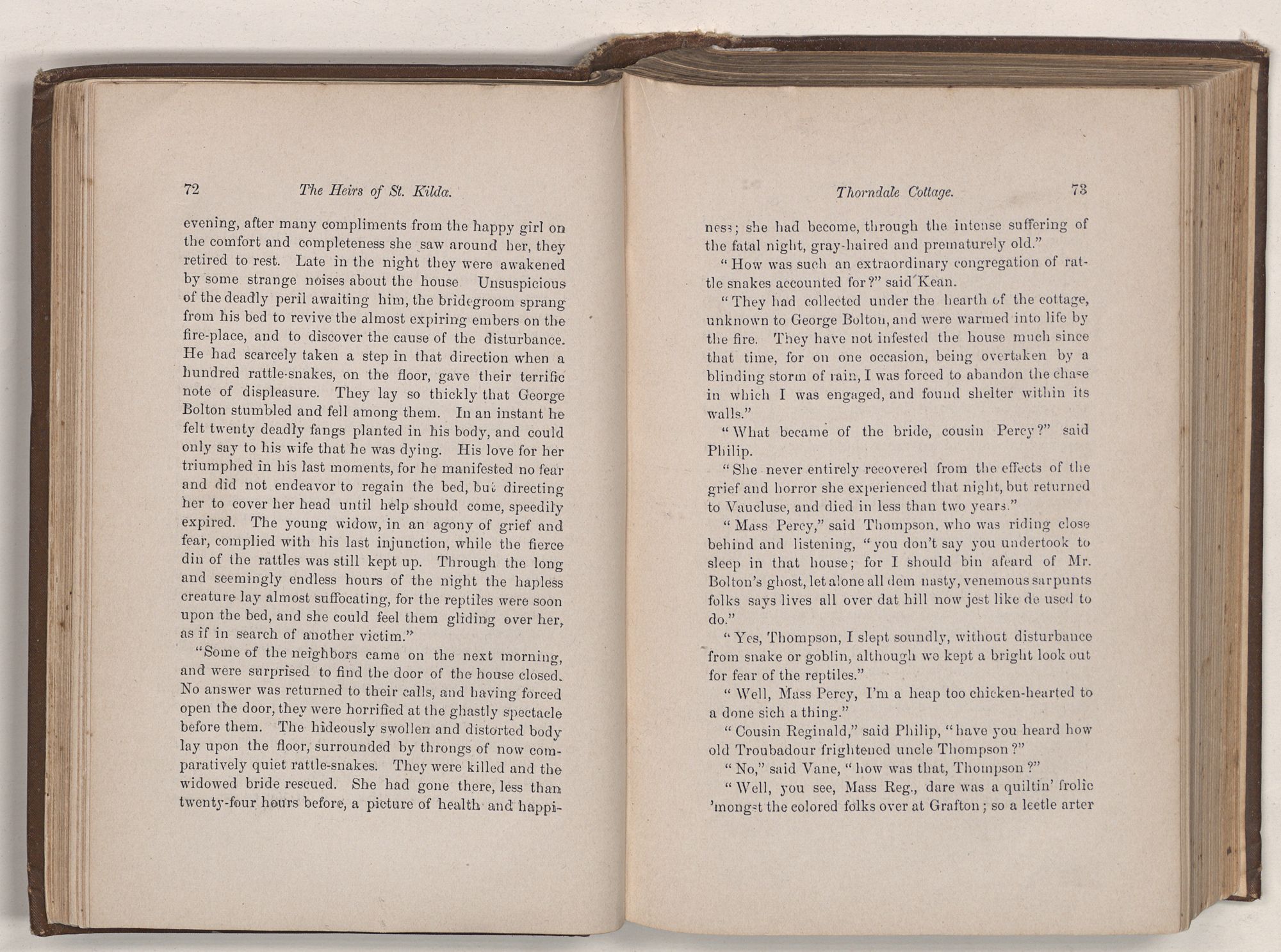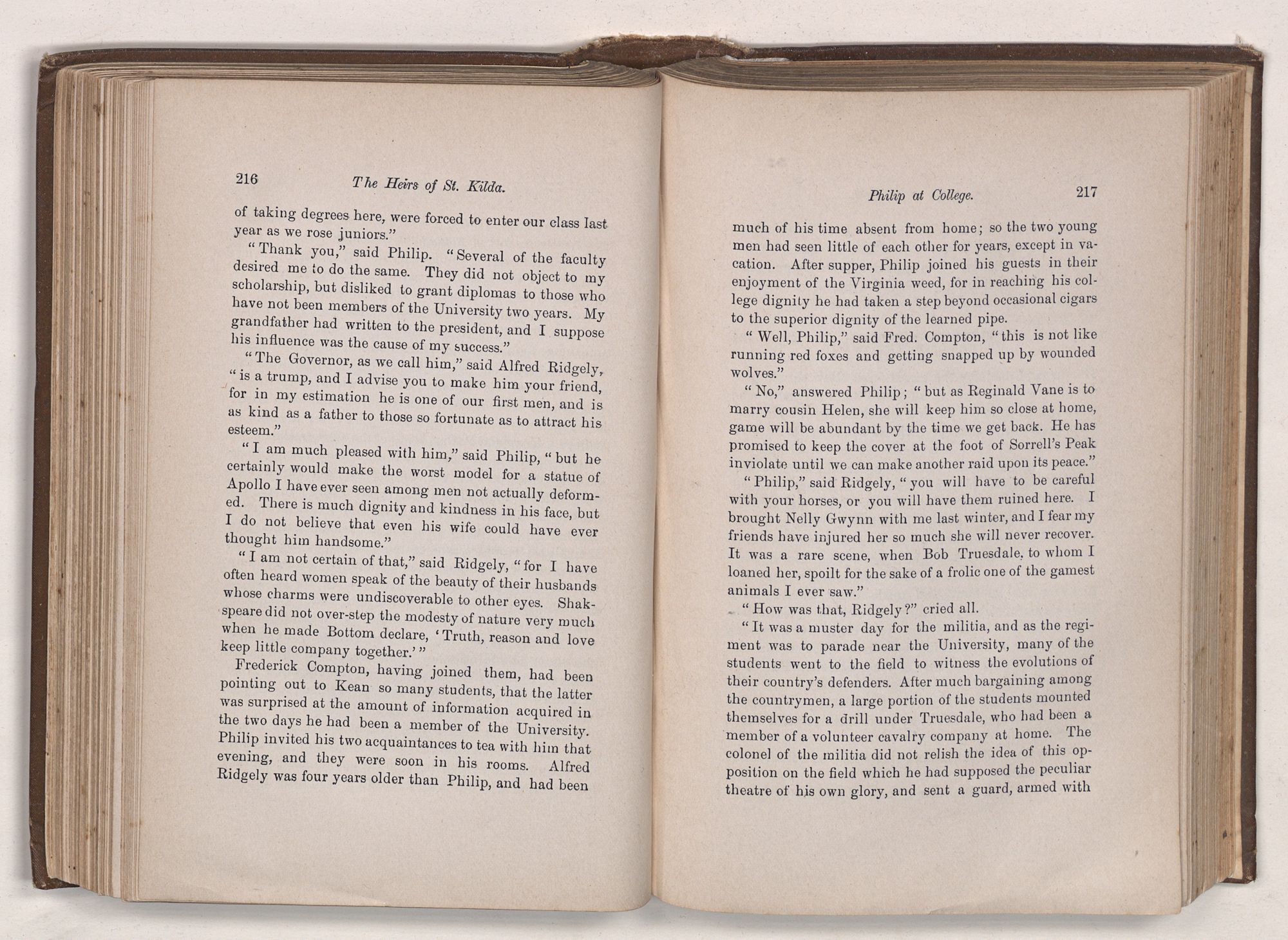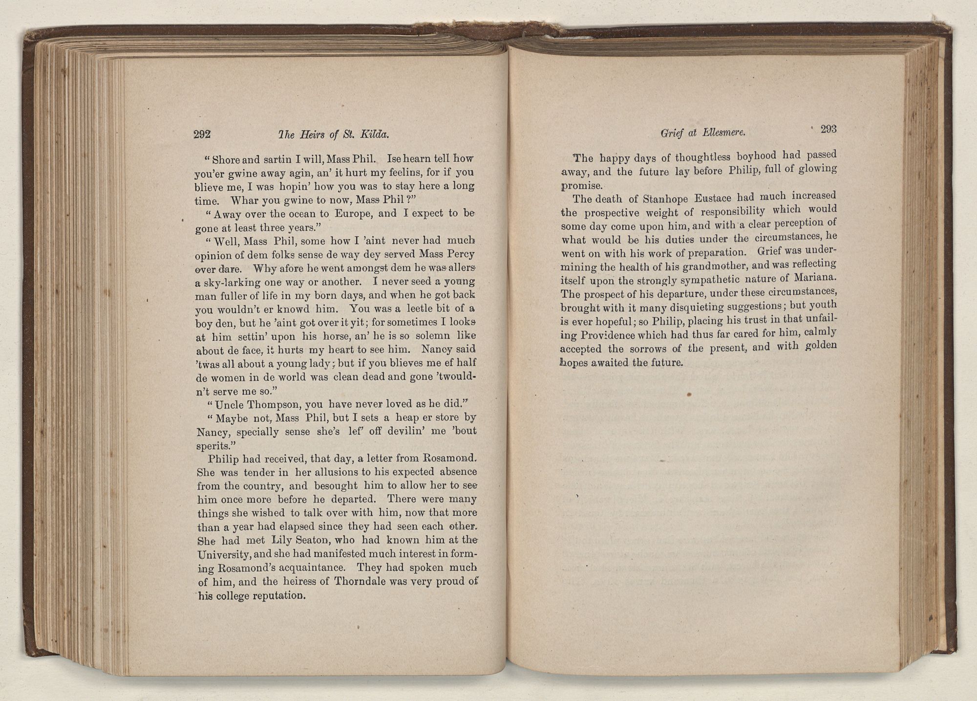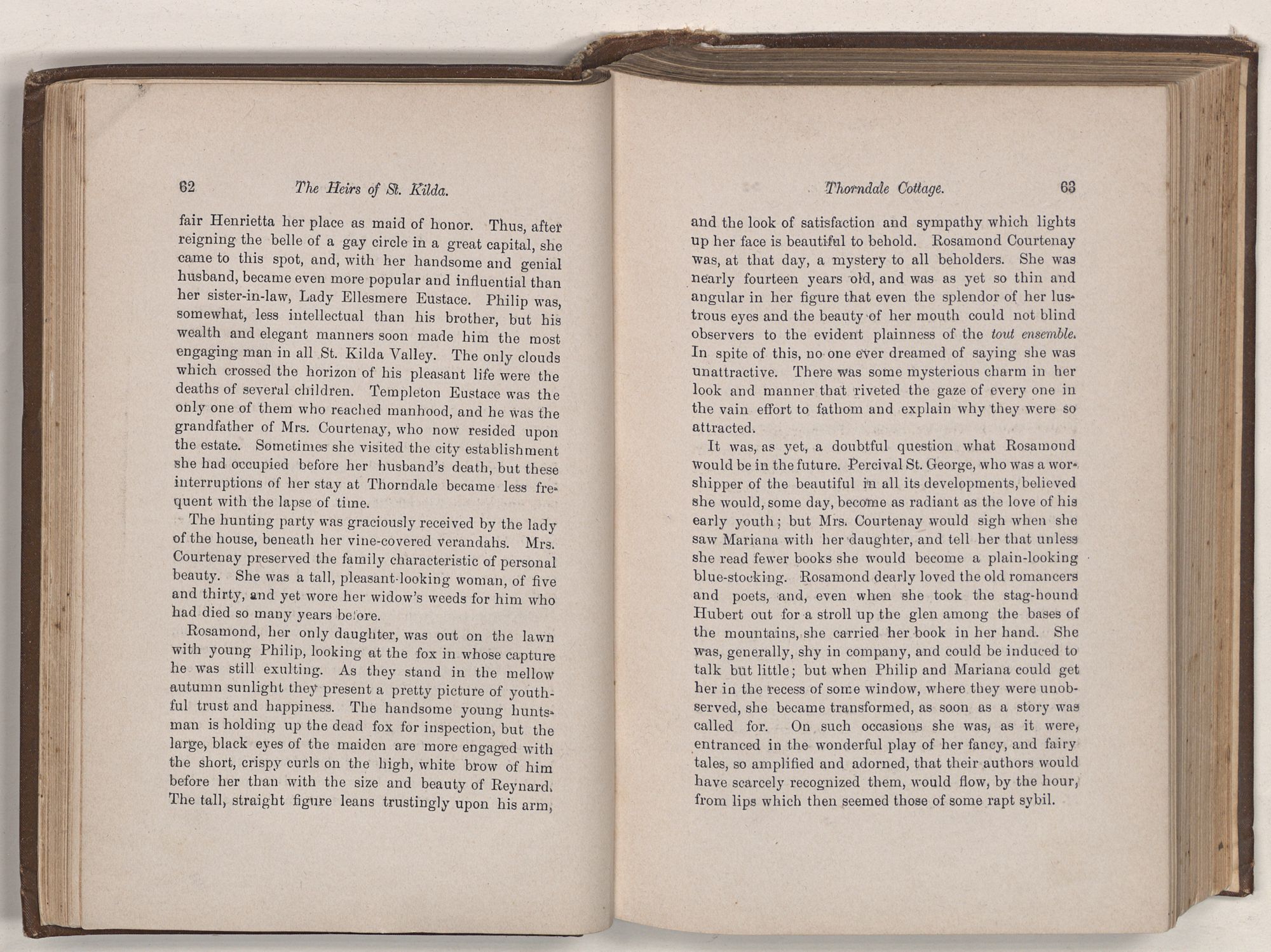 The heirs of St. Kilda; a story of the southern past. Raleigh : Edwards, Broughton, 1881 [c1880] 493 p. 21 cm.