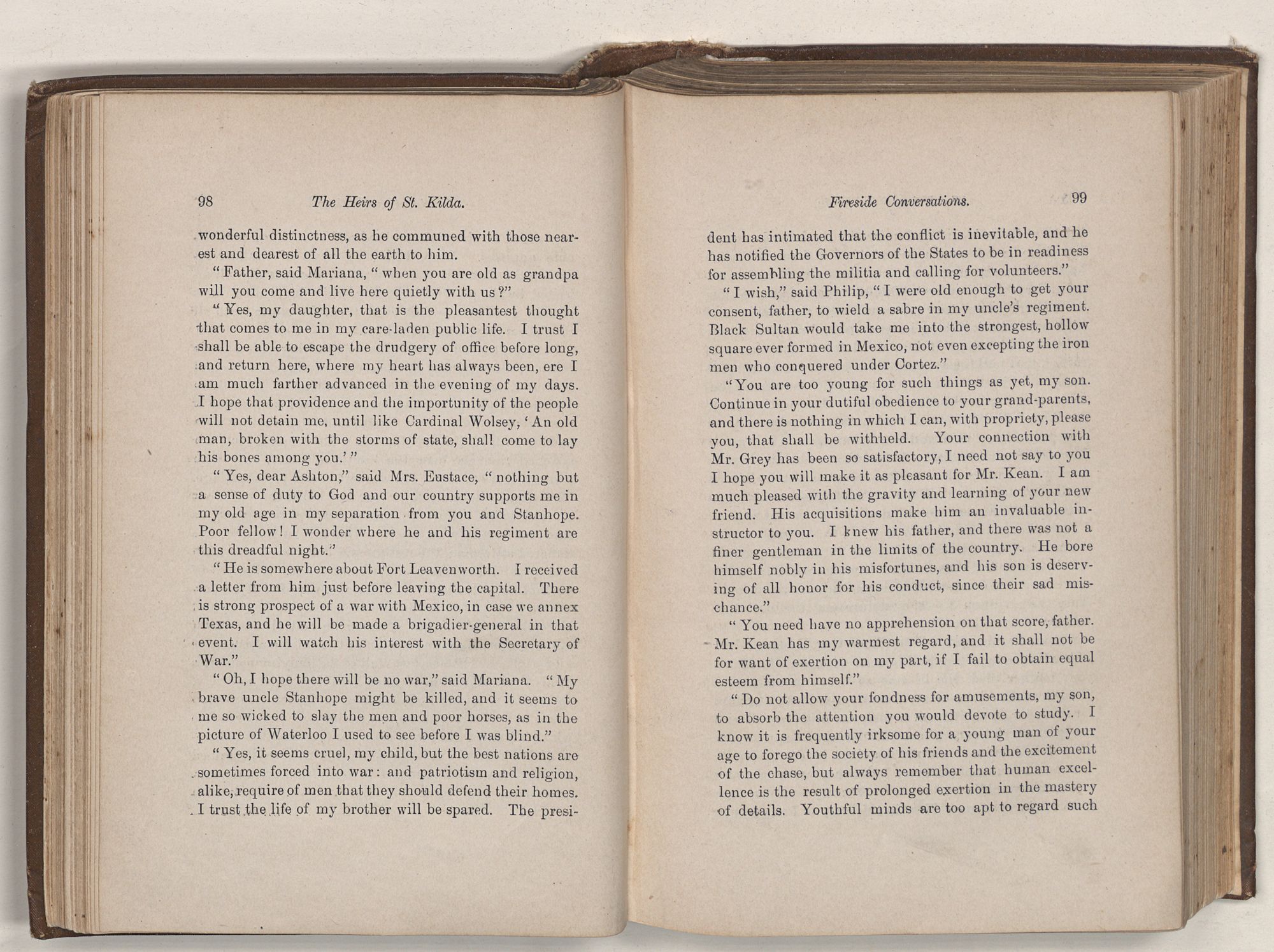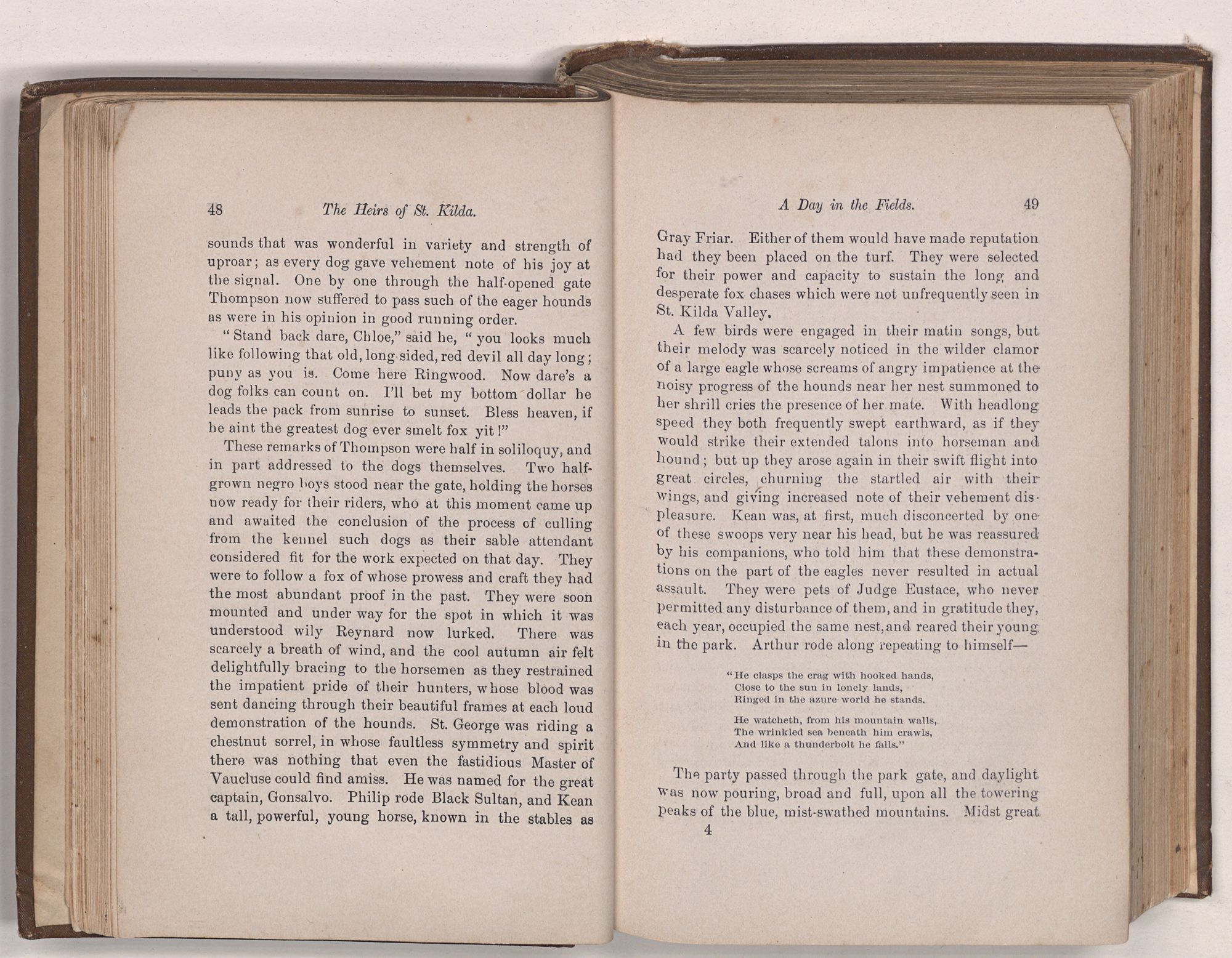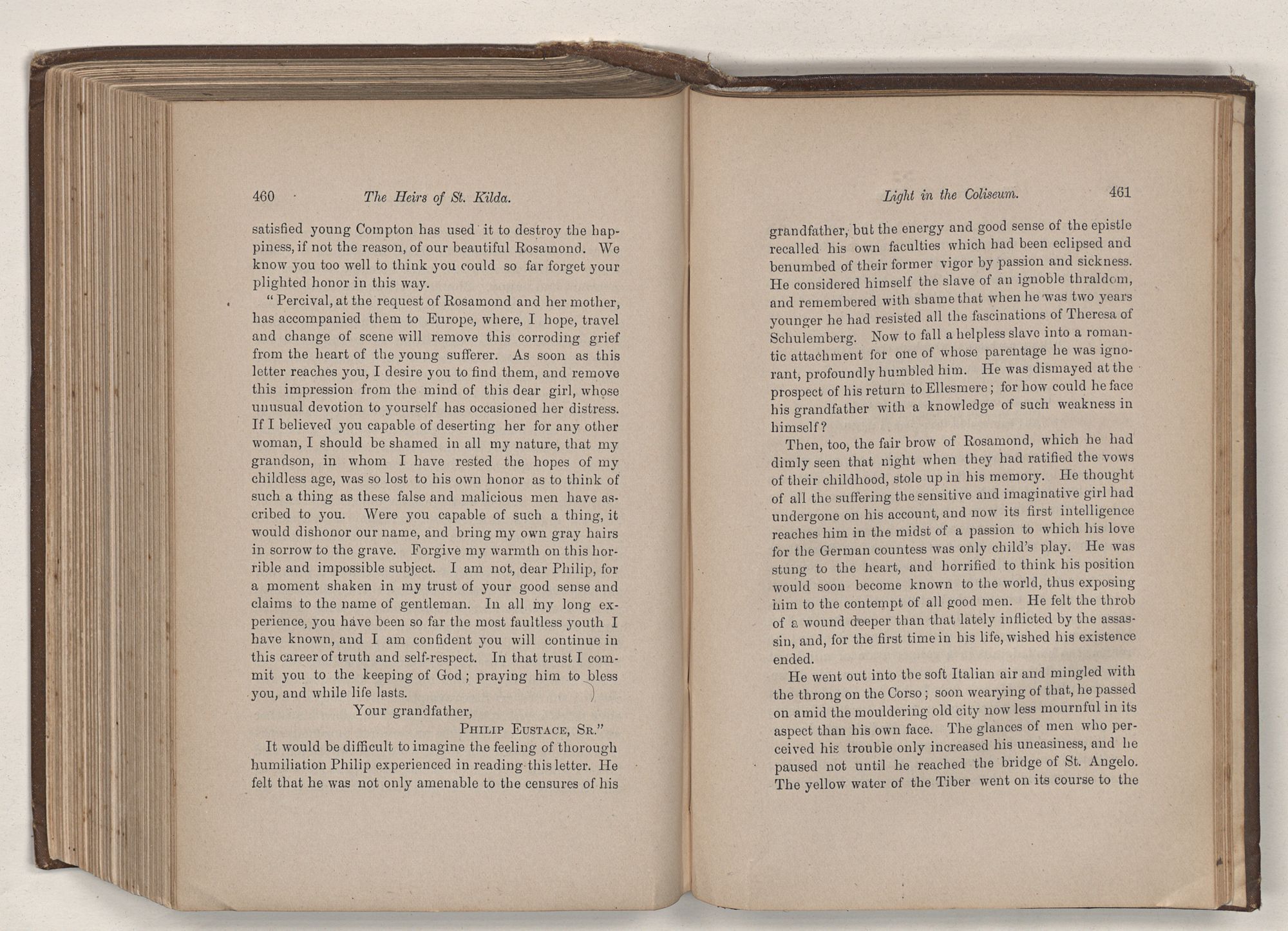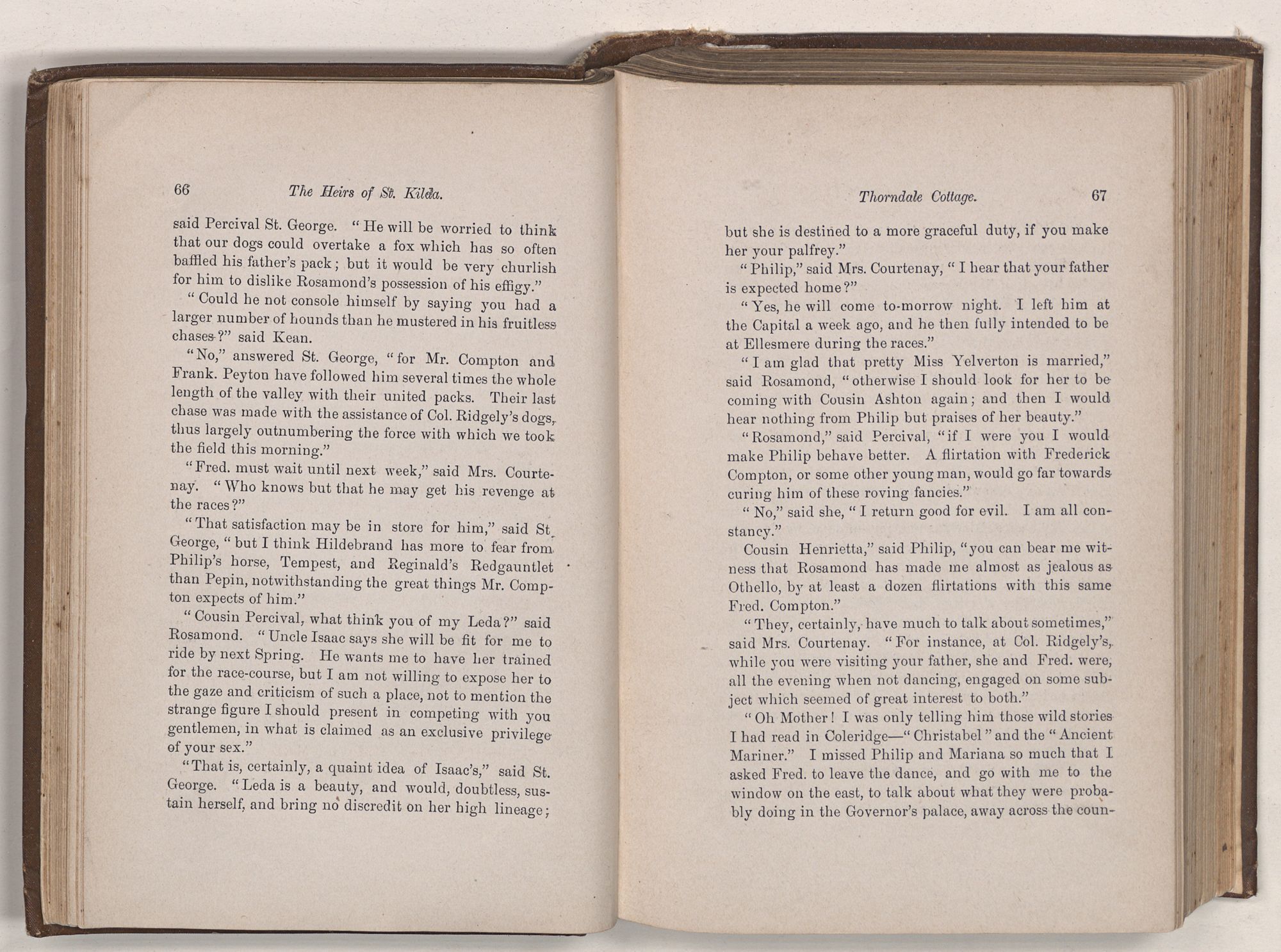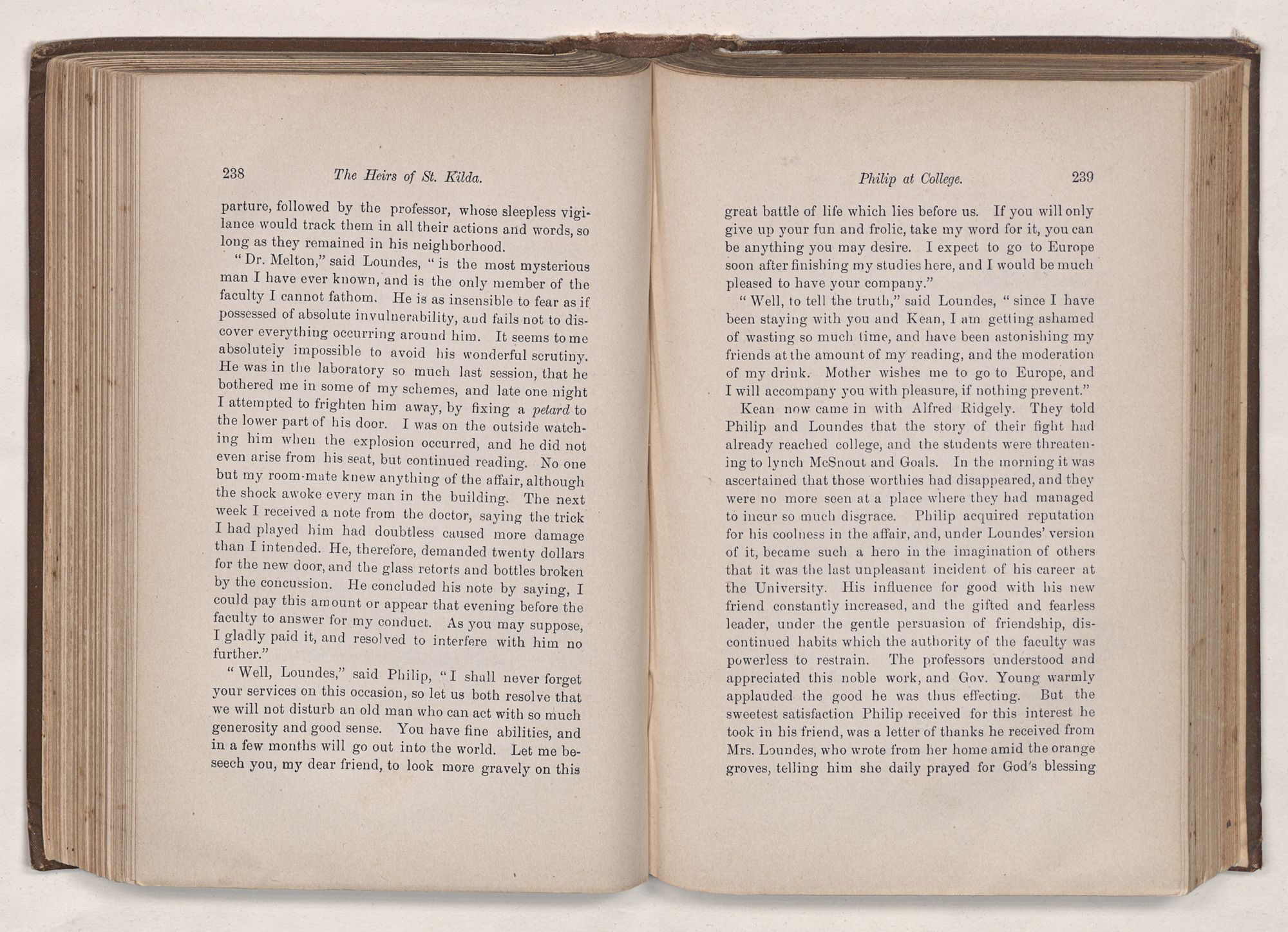 The heirs of St. Kilda; a story of the southern past. Raleigh : Edwards, Broughton, 1881 [c1880] 493 p. 21 cm.