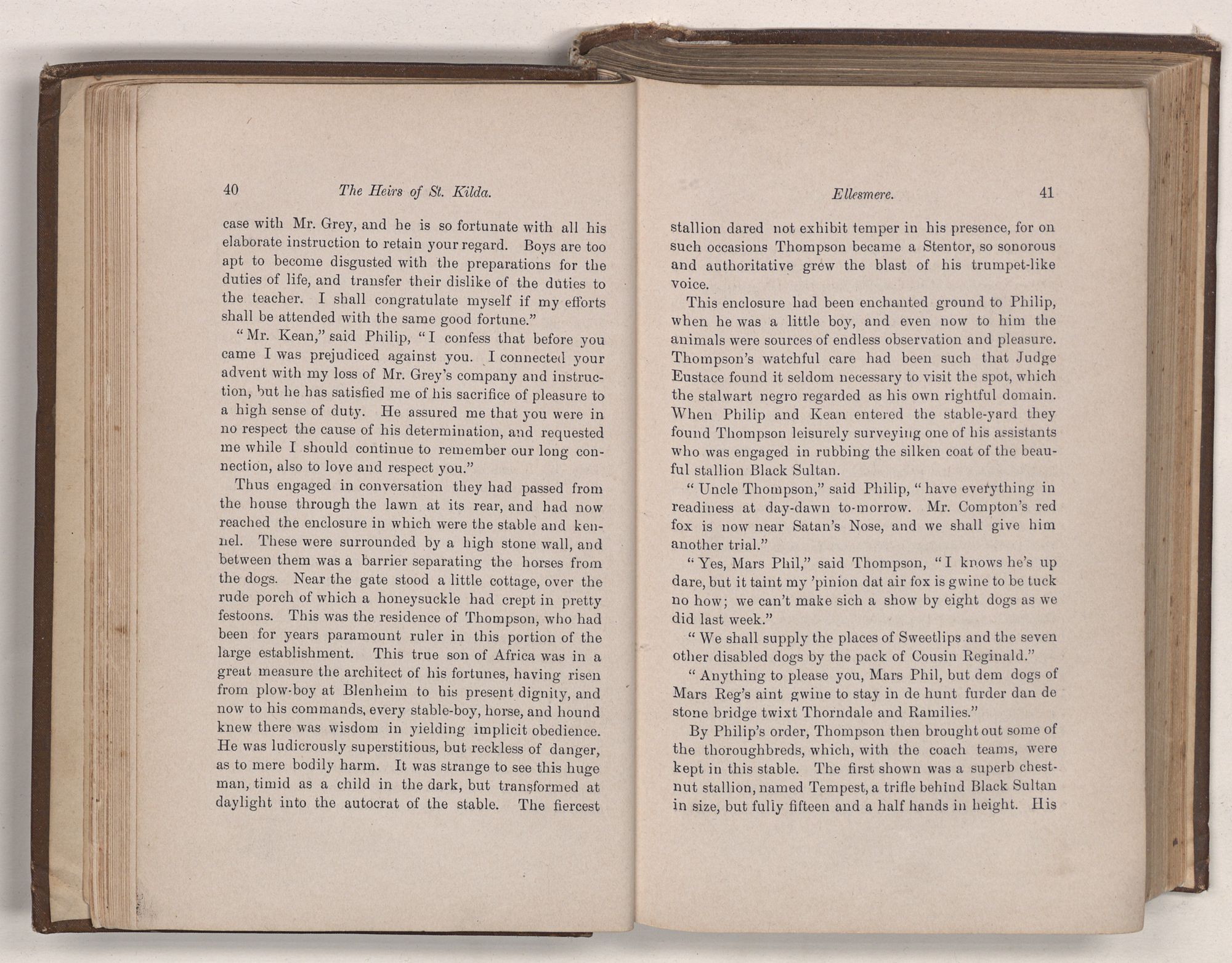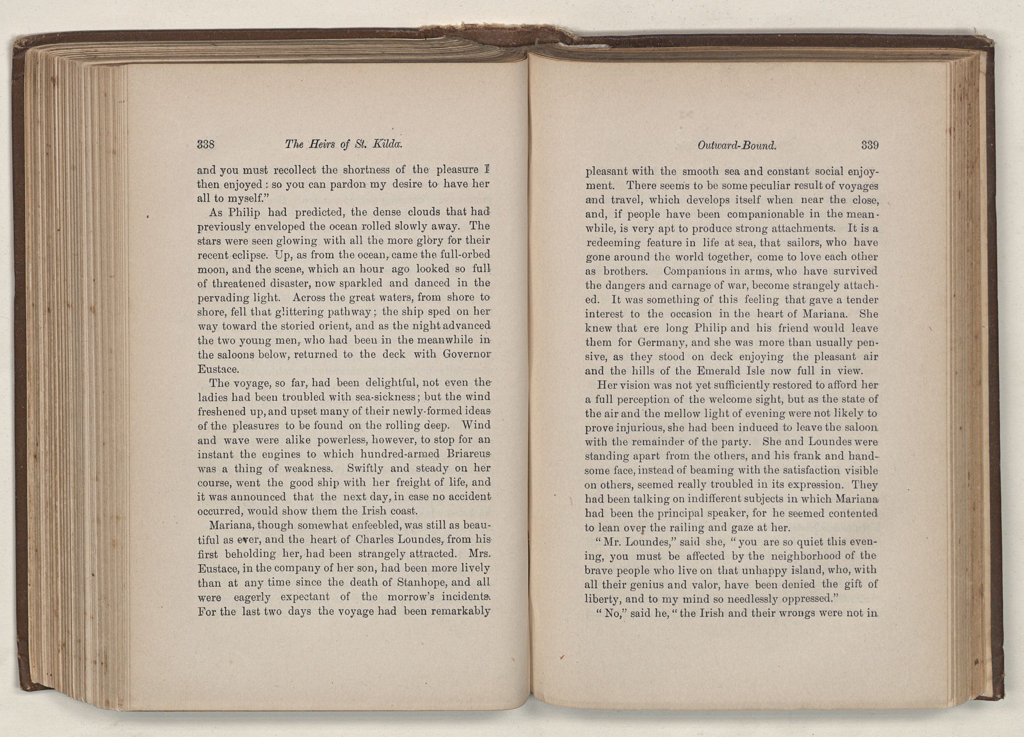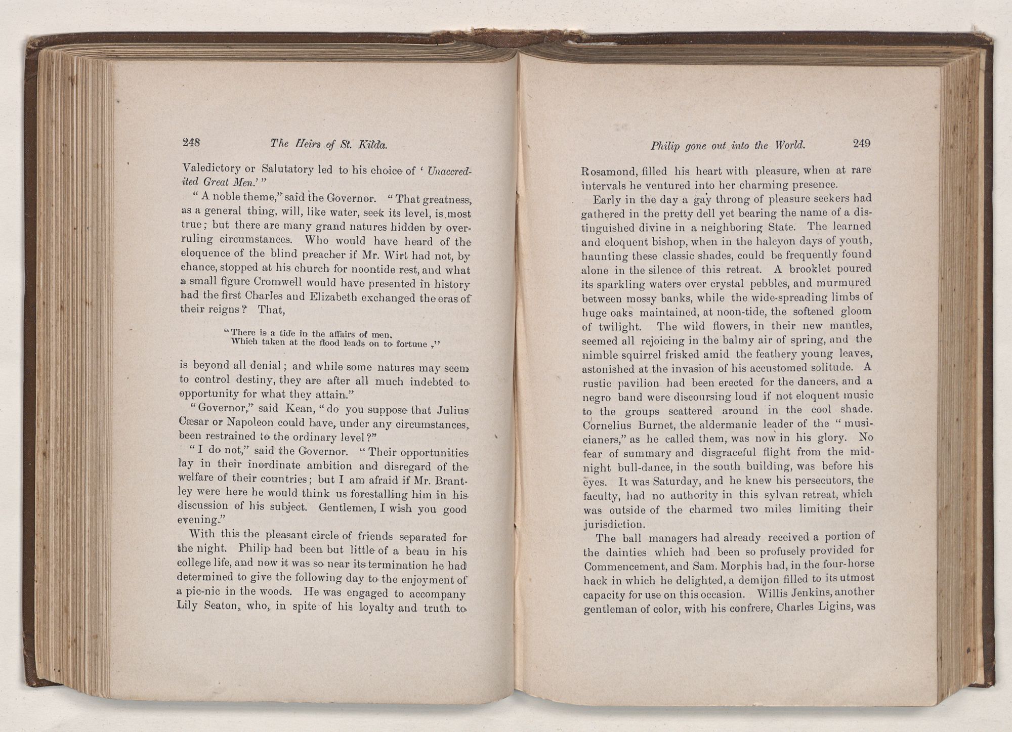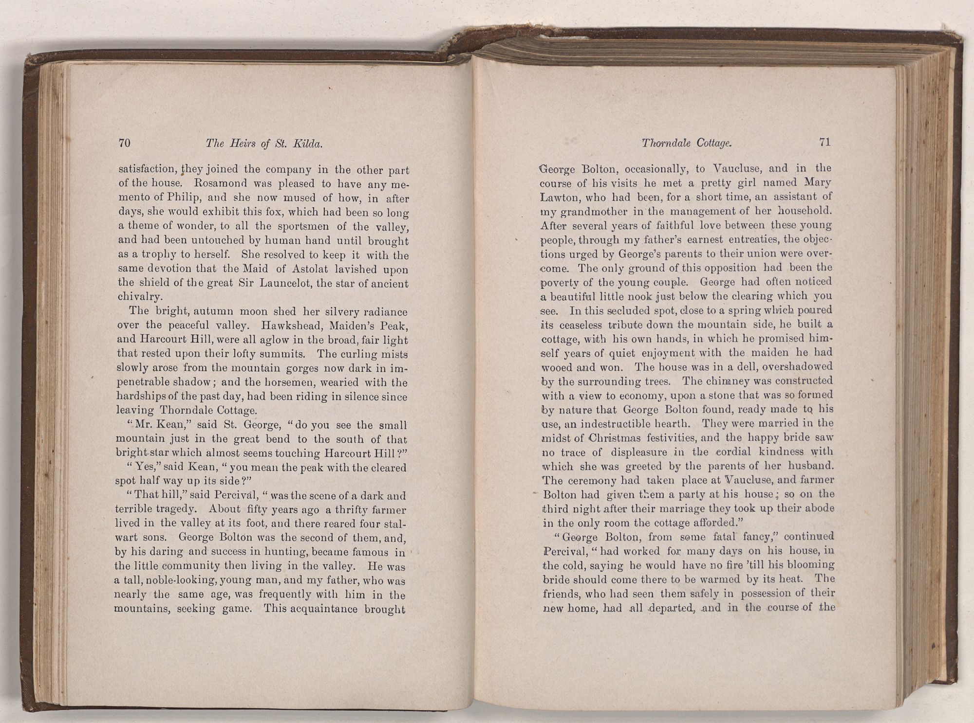 The heirs of St. Kilda; a story of the southern past. Raleigh : Edwards, Broughton, 1881 [c1880] 493 p. 21 cm.