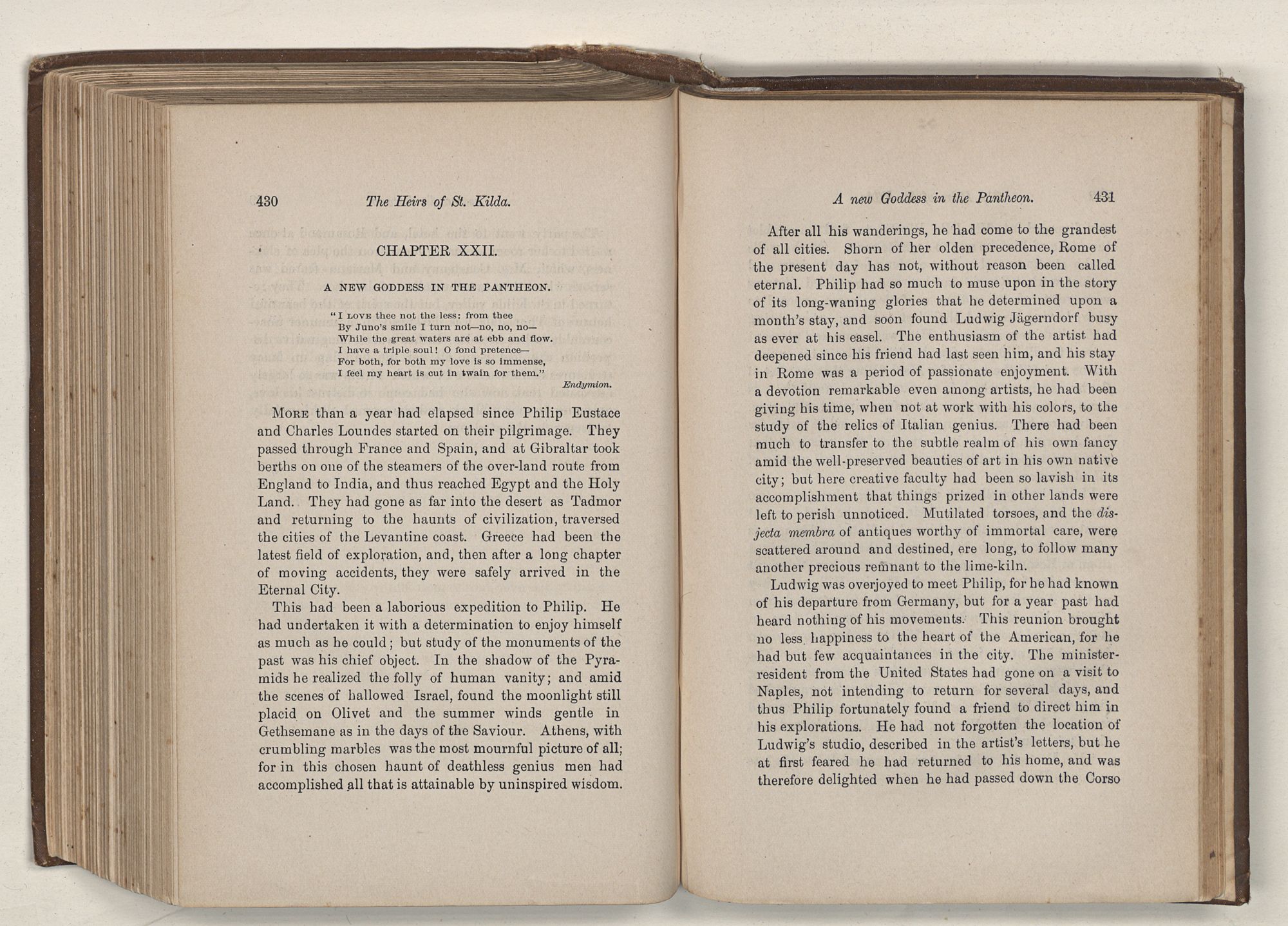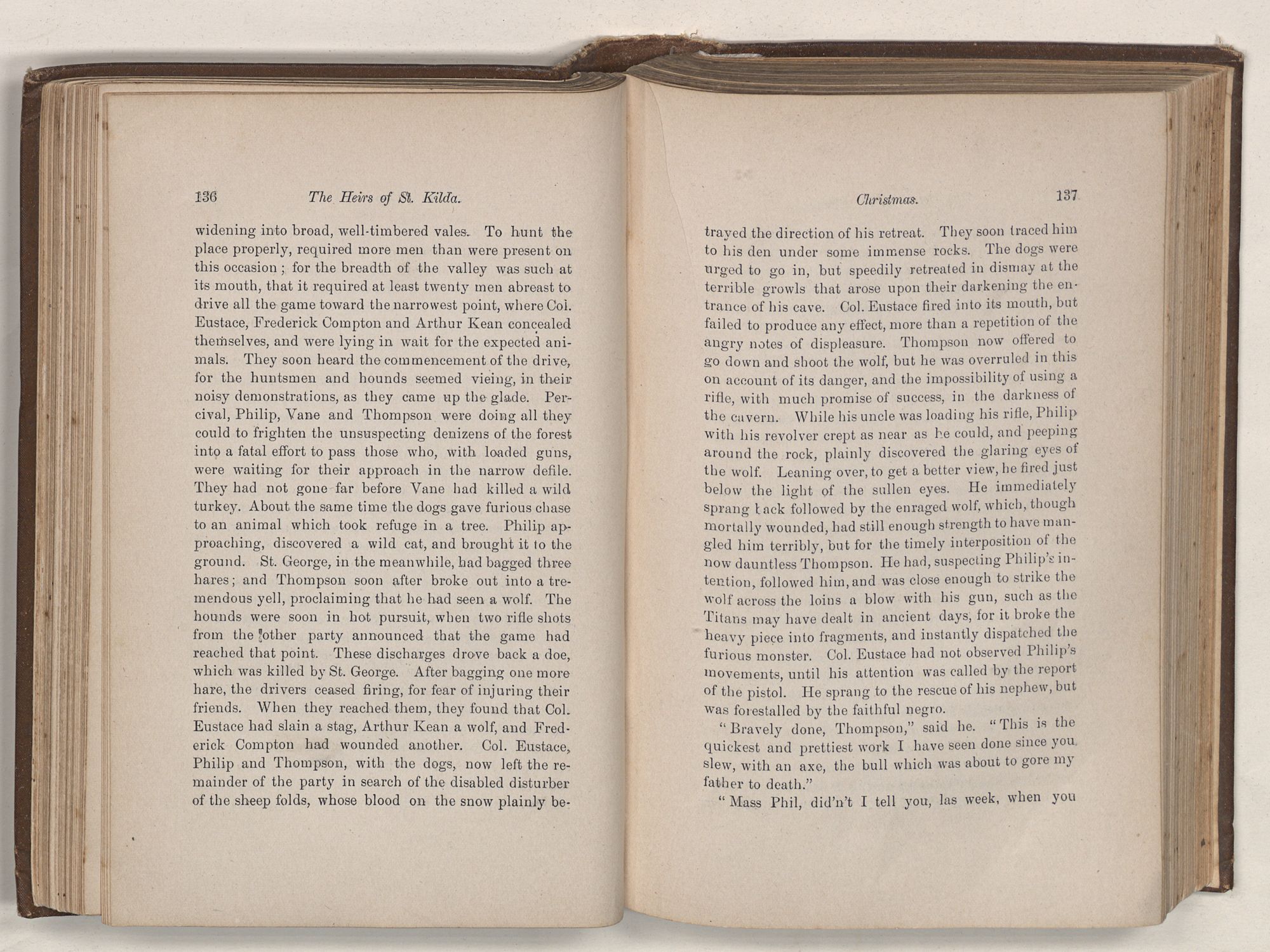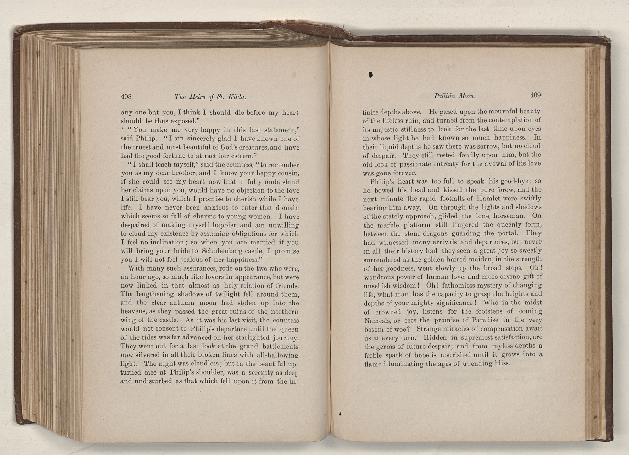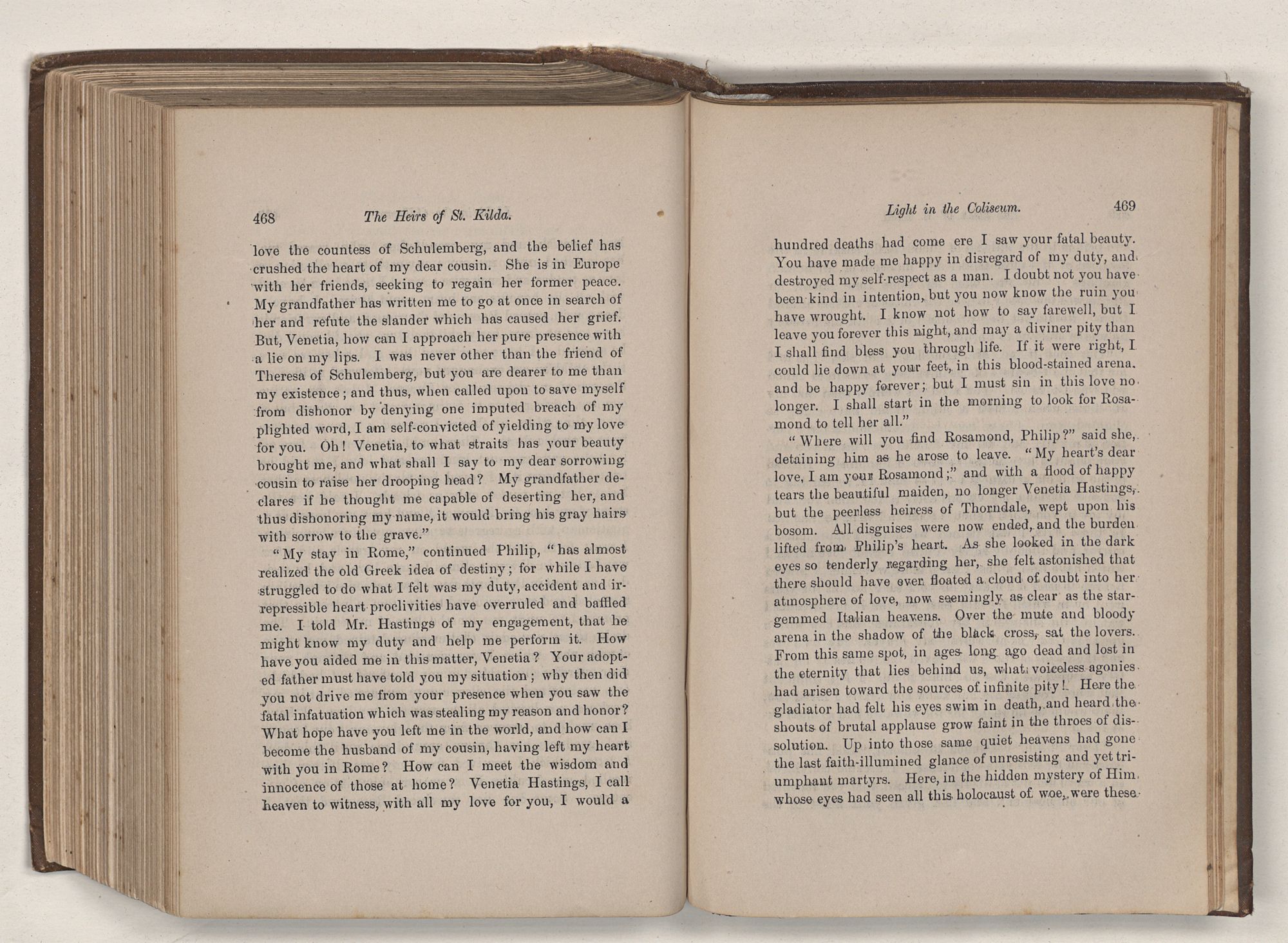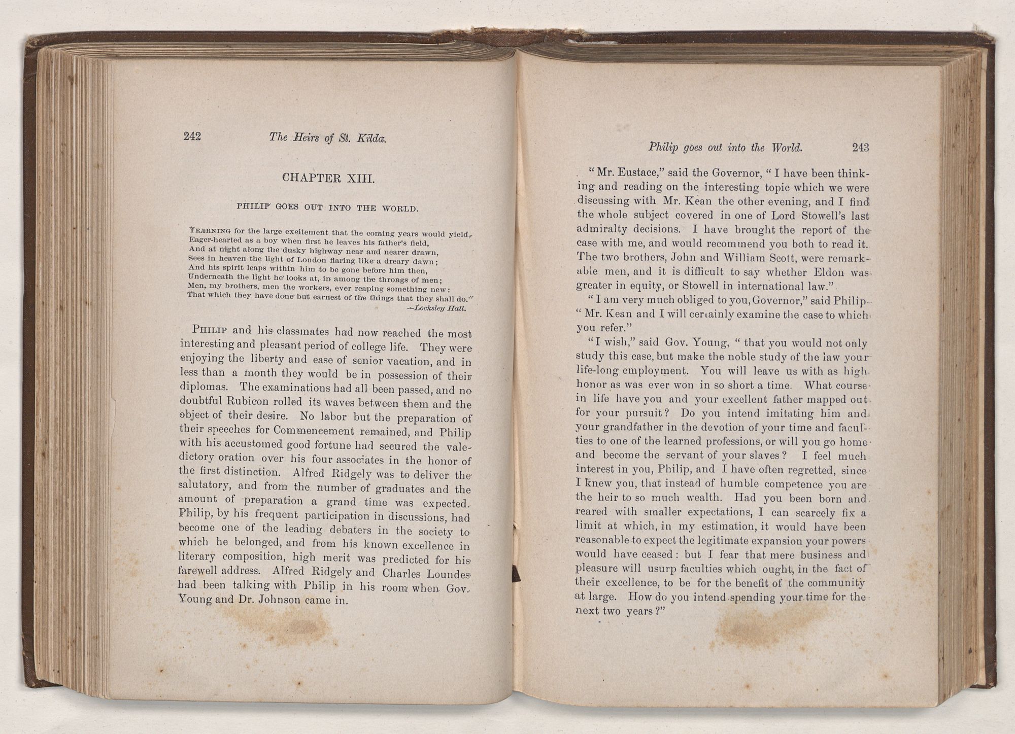 The heirs of St. Kilda; a story of the southern past. Raleigh : Edwards, Broughton, 1881 [c1880] 493 p. 21 cm.