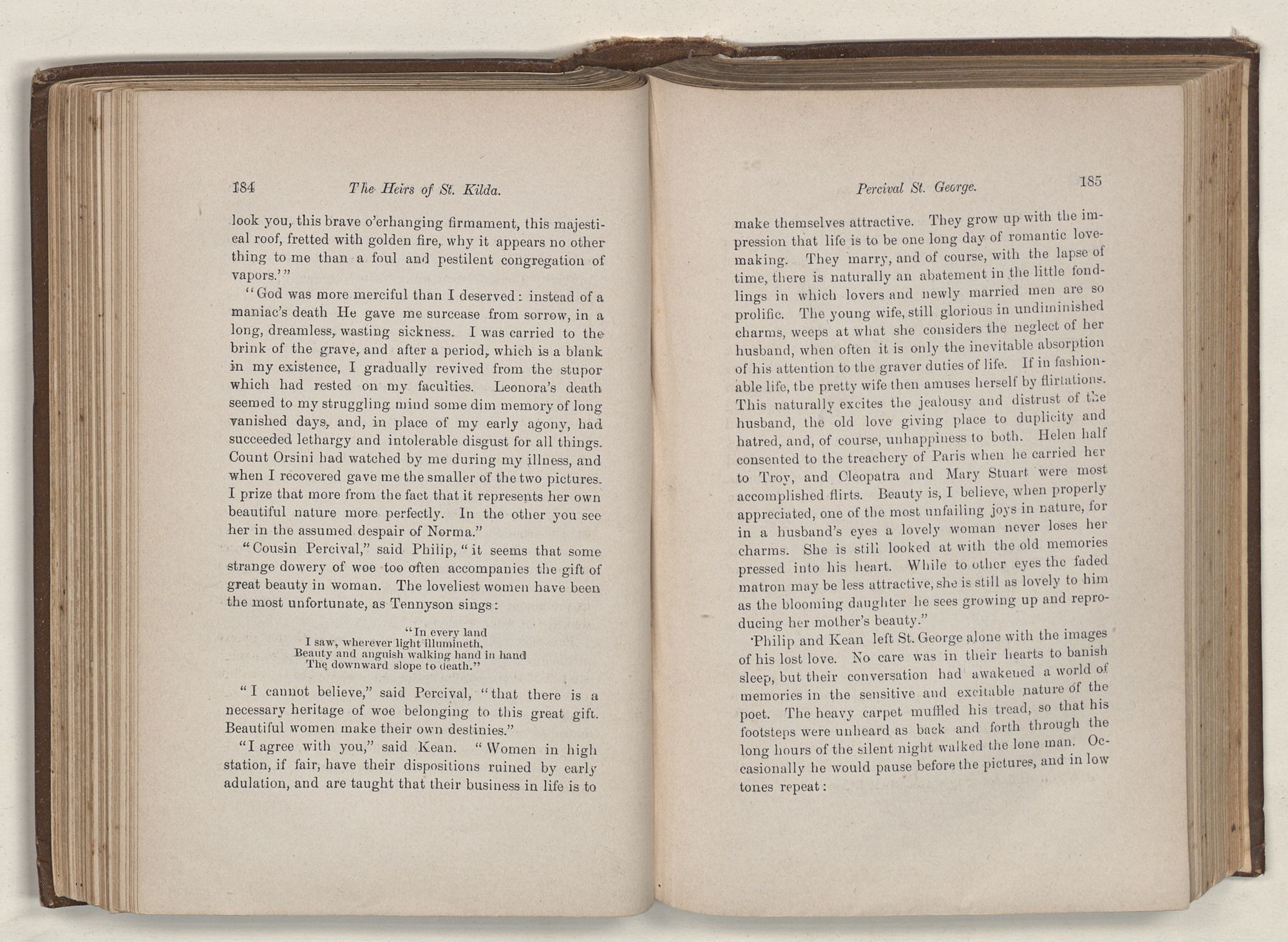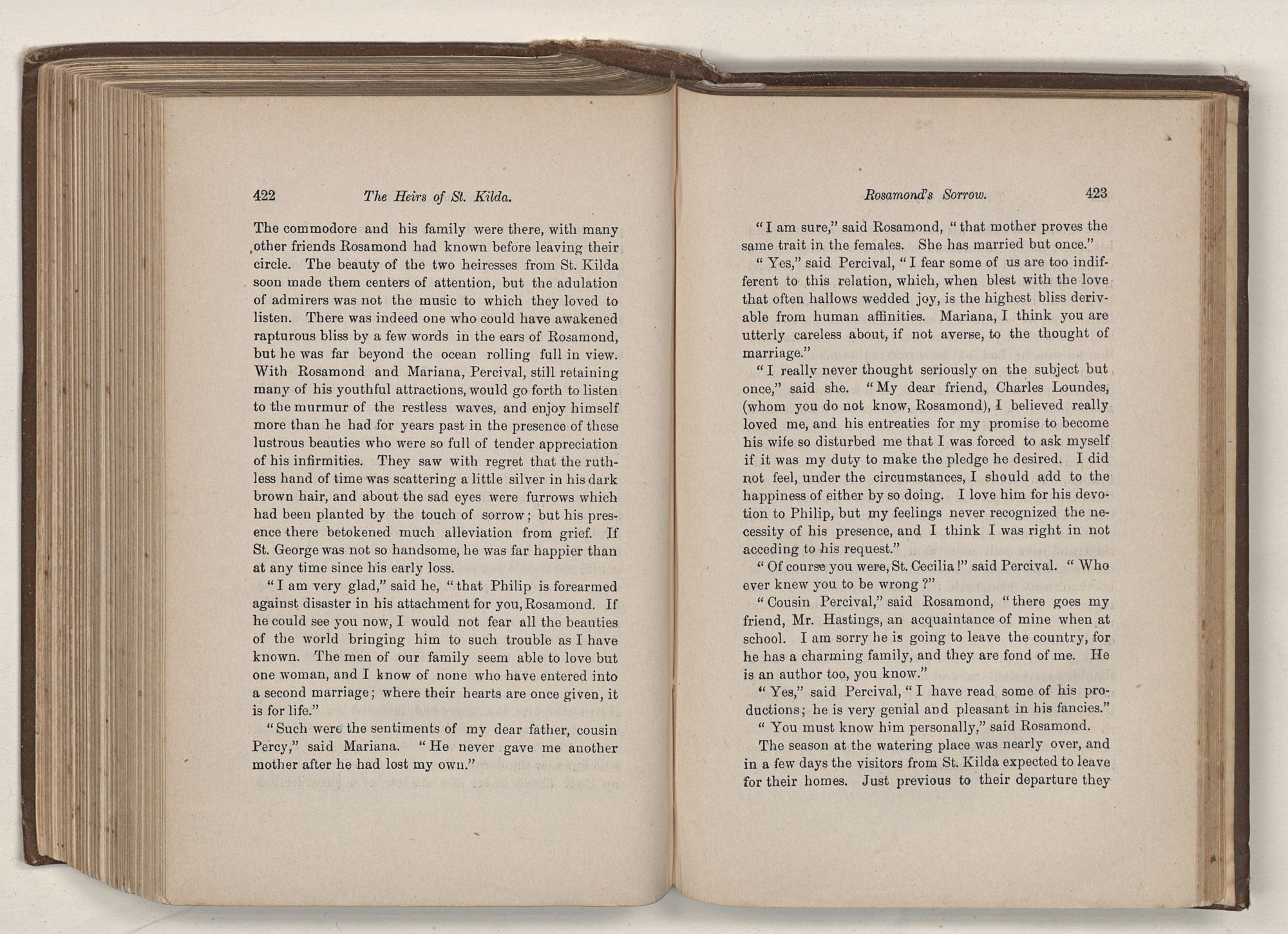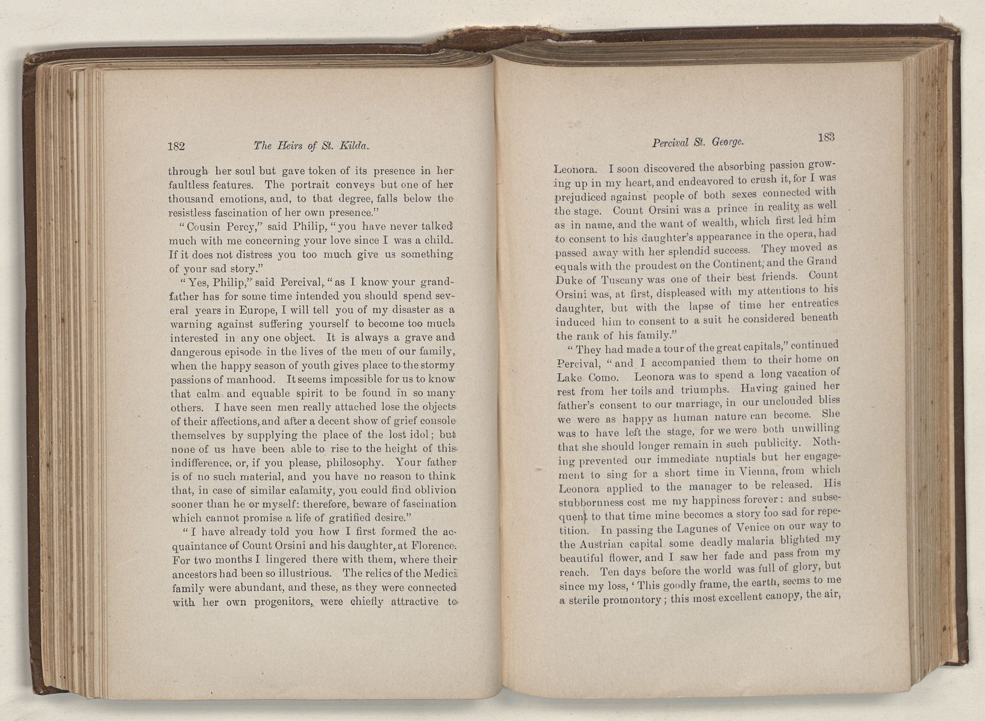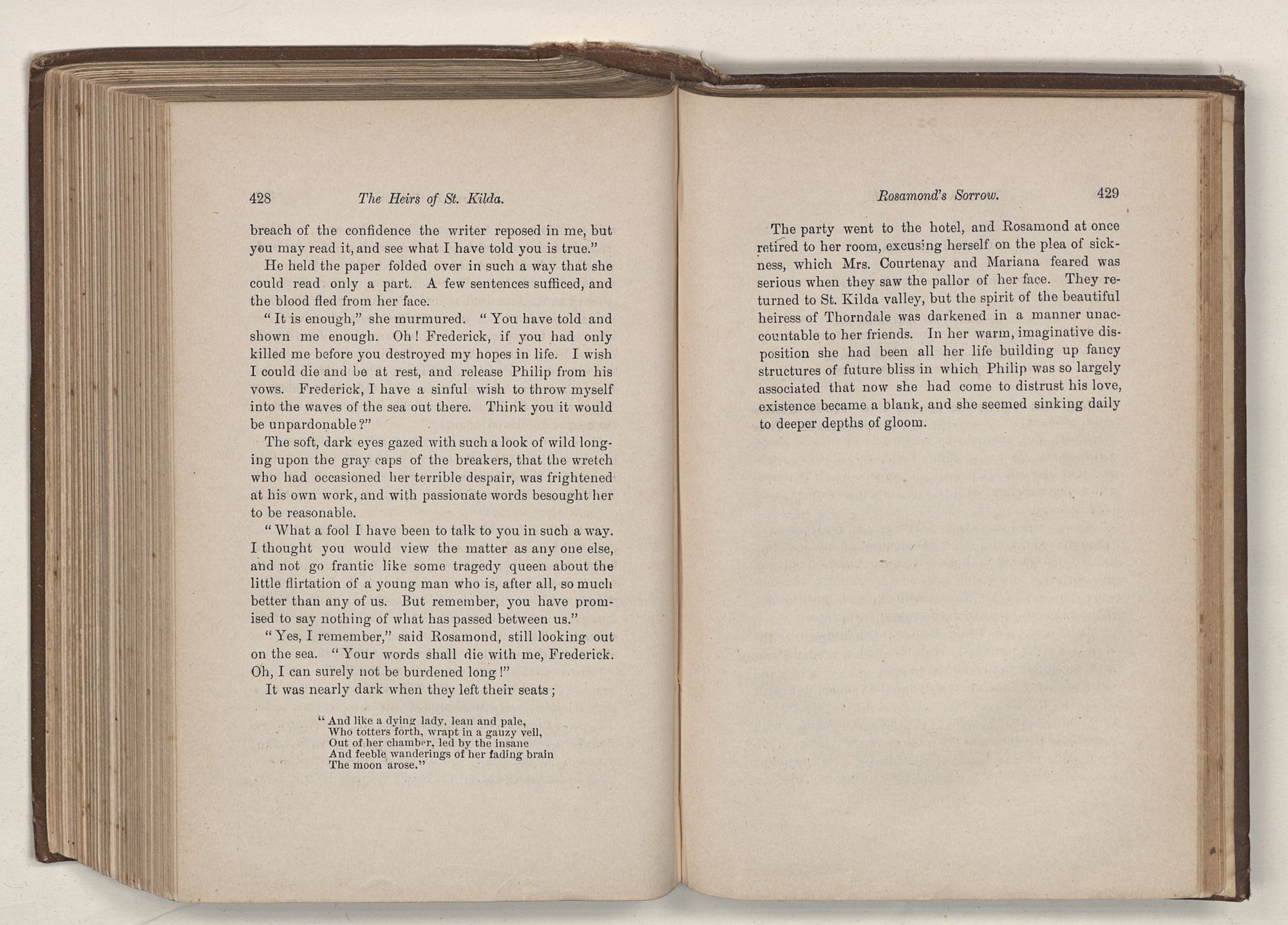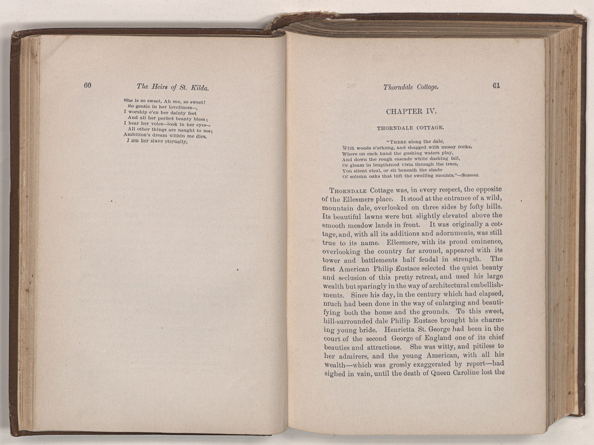 The heirs of St. Kilda; a story of the southern past. Raleigh : Edwards, Broughton, 1881 [c1880] 493 p. 21 cm.