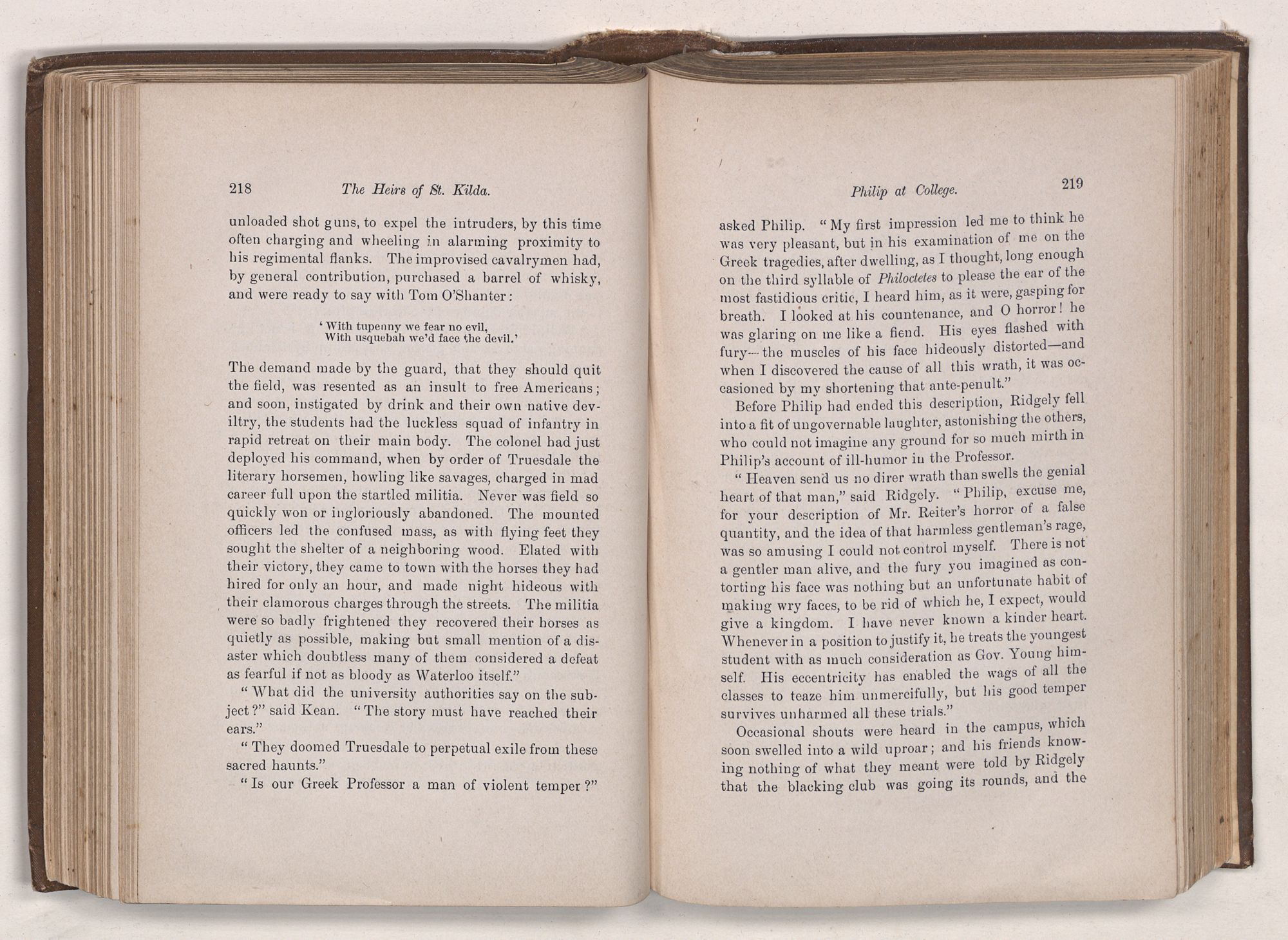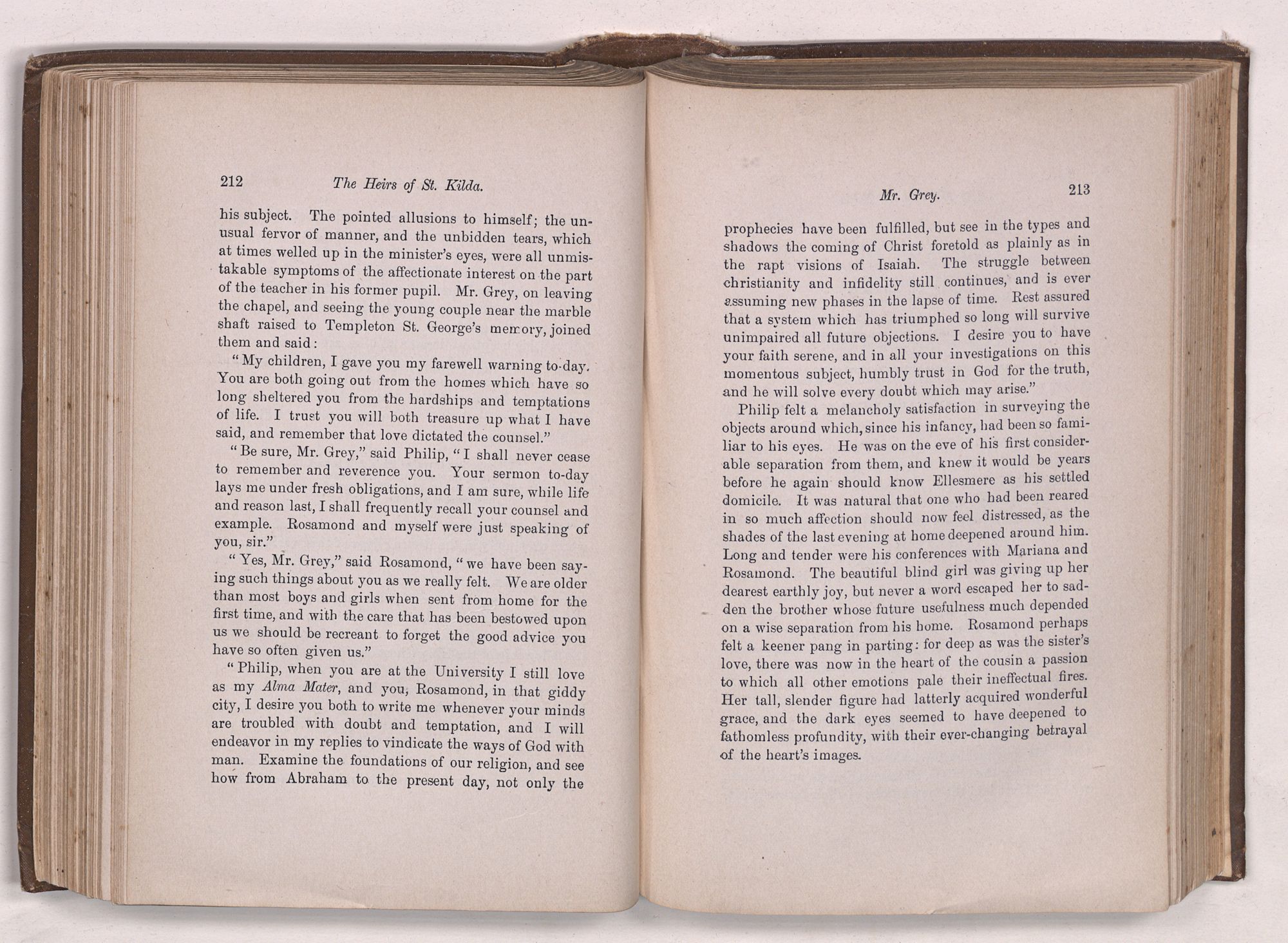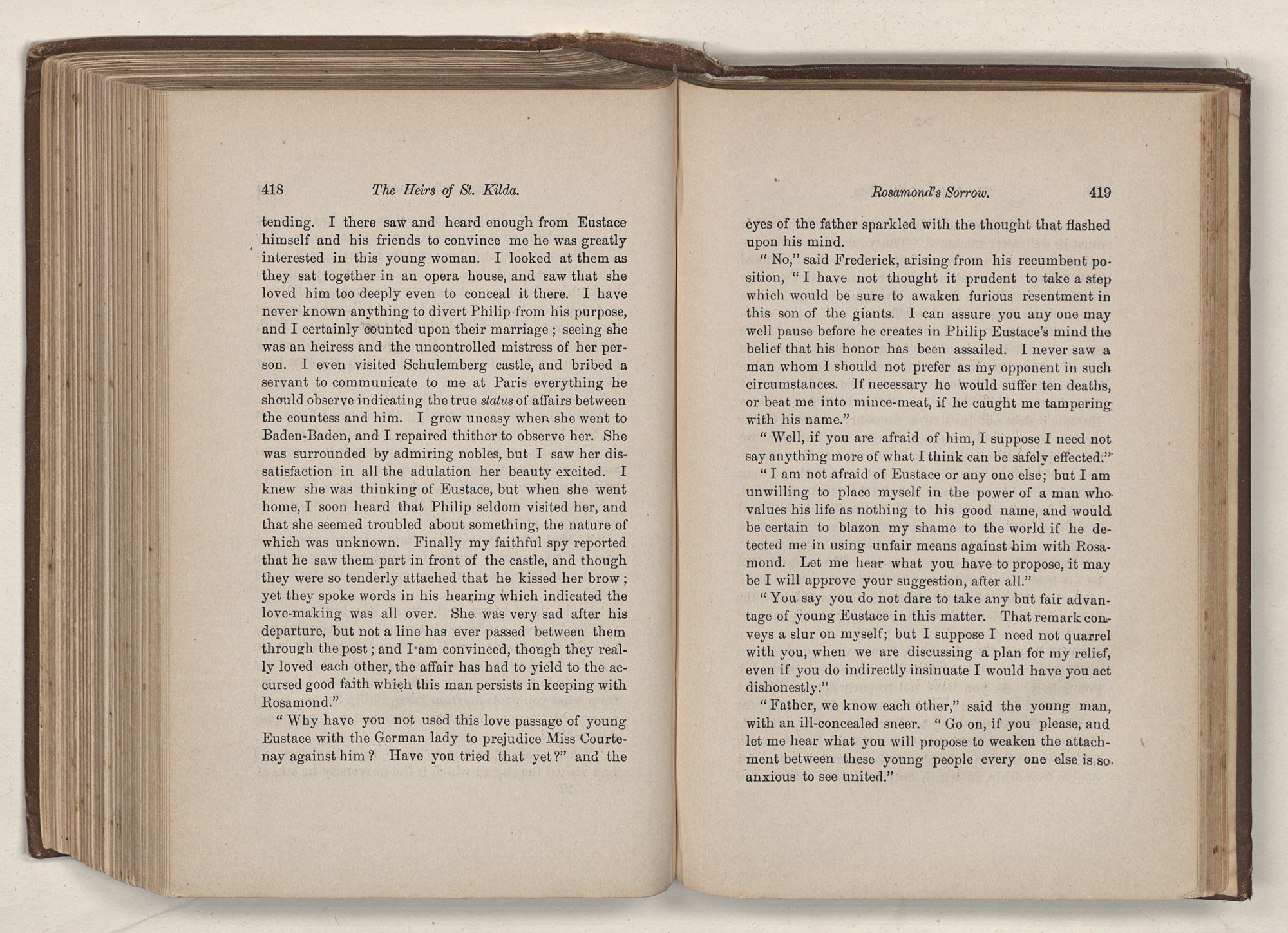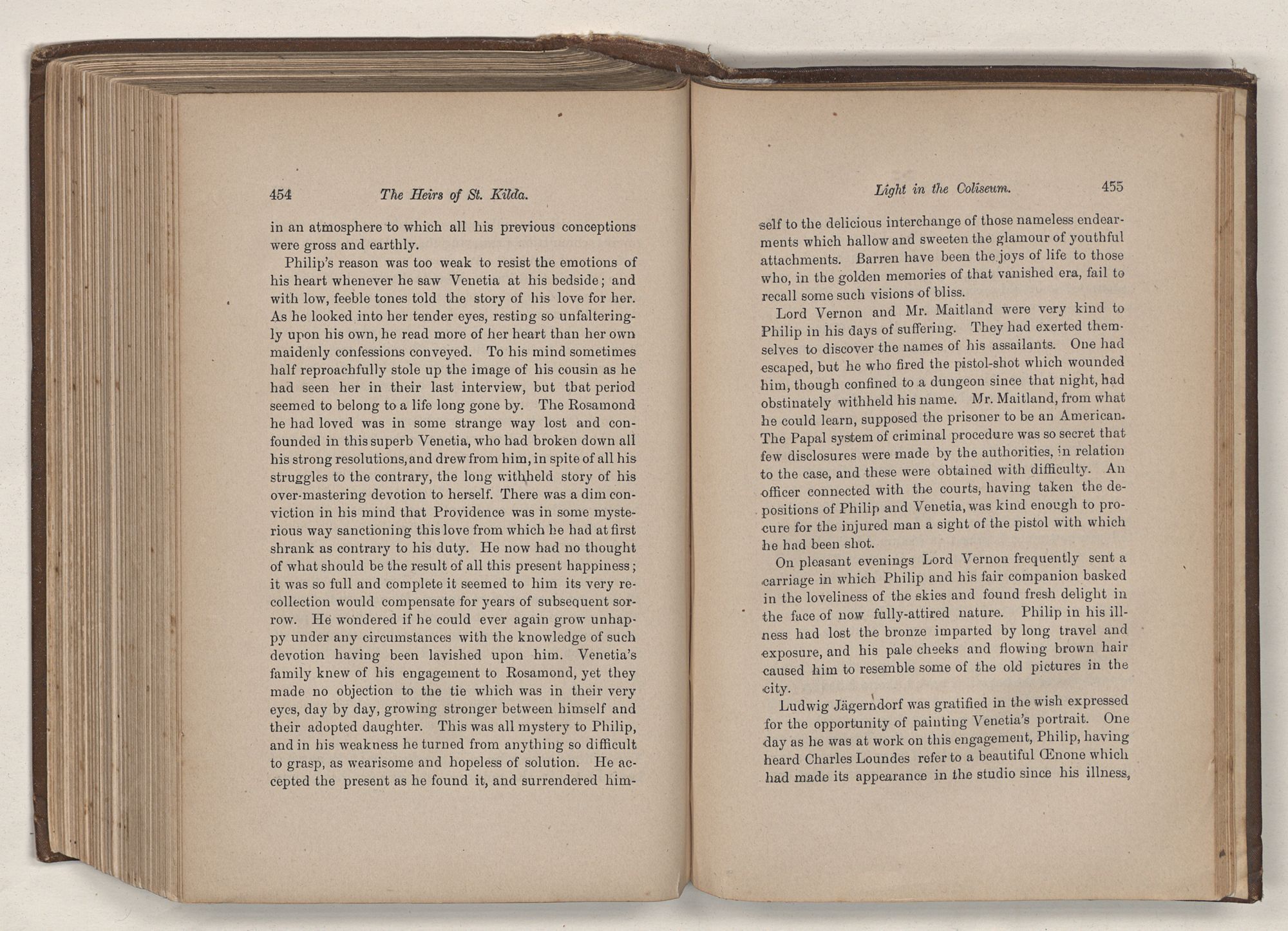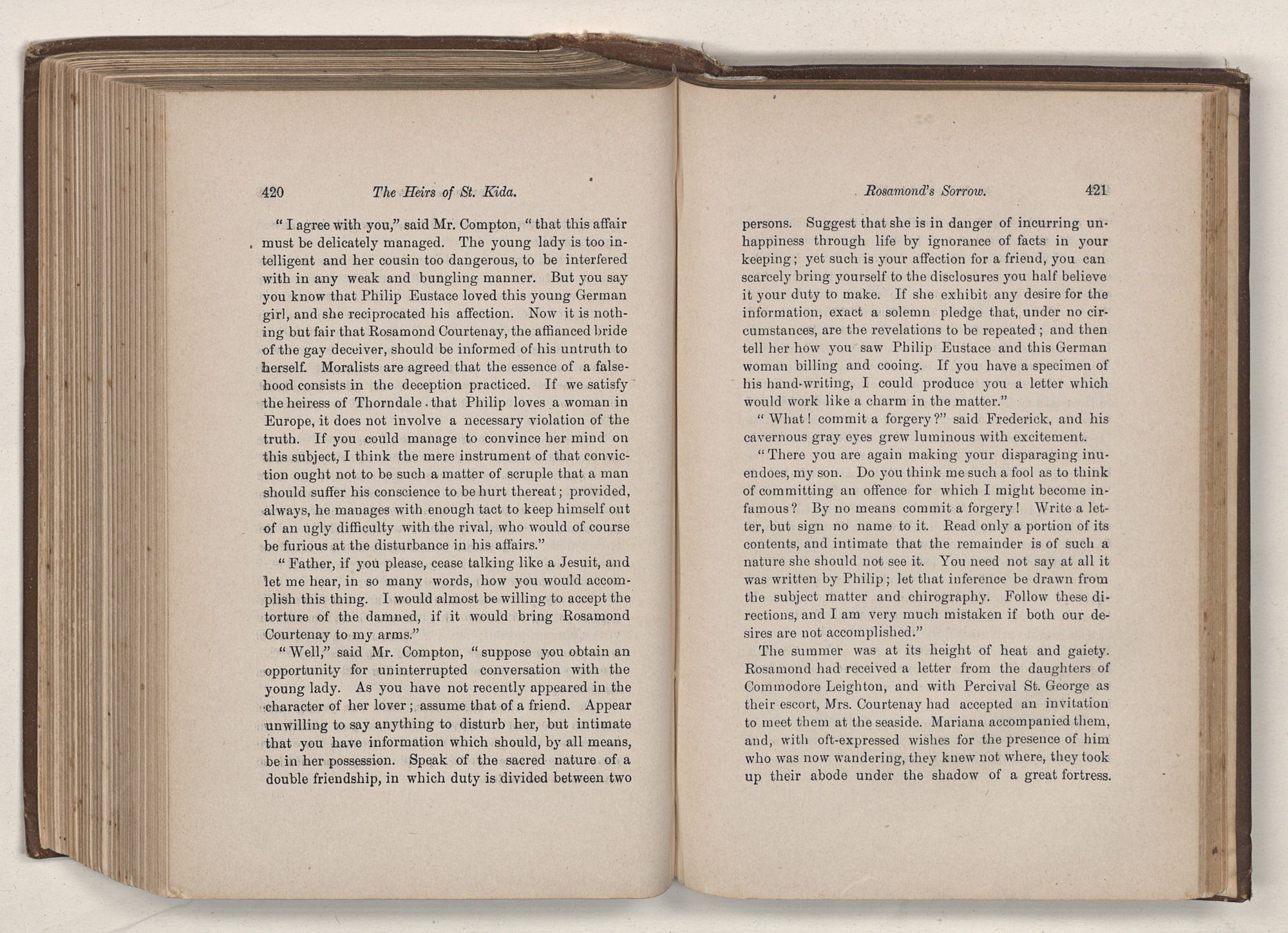 The heirs of St. Kilda; a story of the southern past. Raleigh : Edwards, Broughton, 1881 [c1880] 493 p. 21 cm.