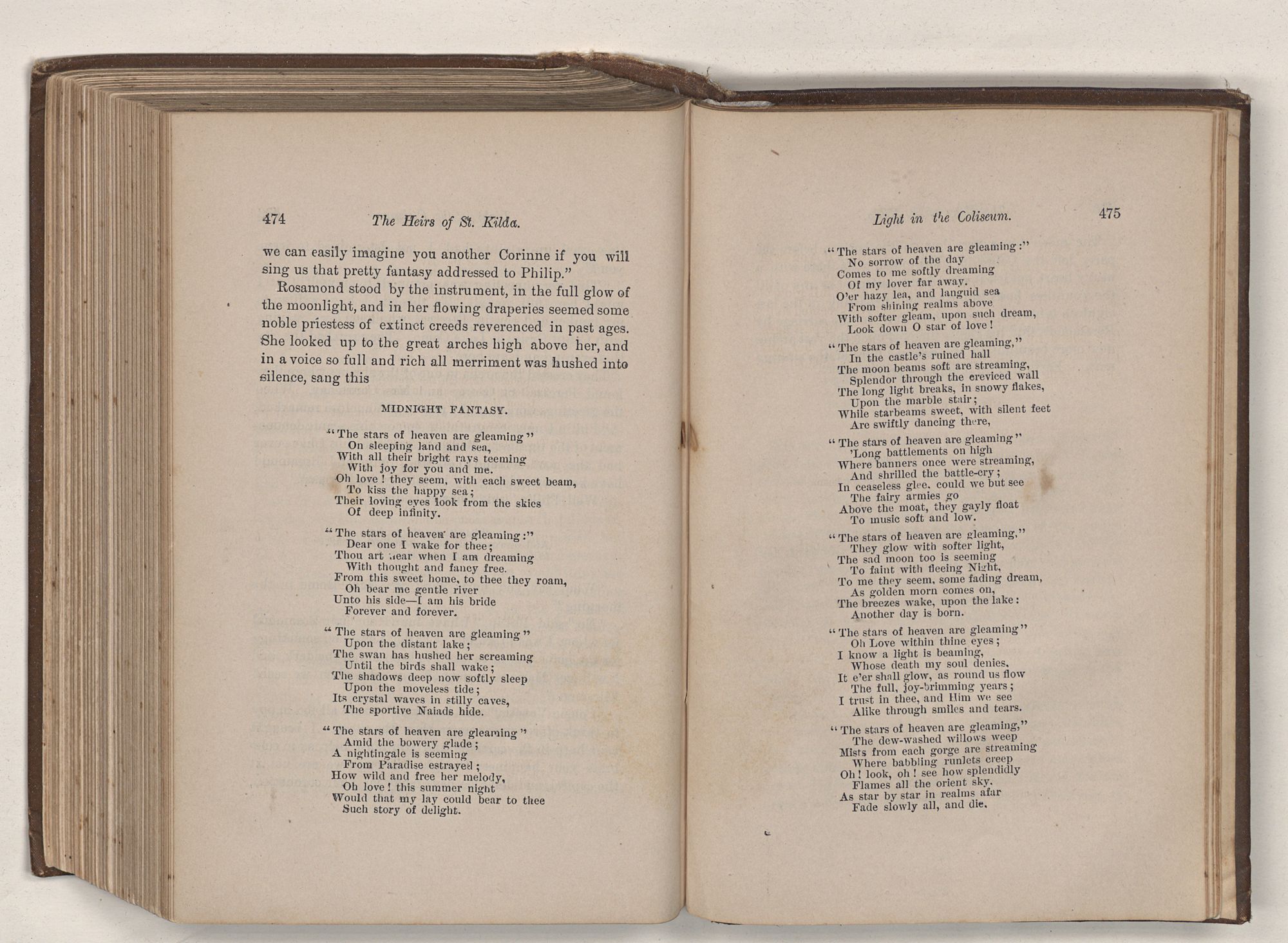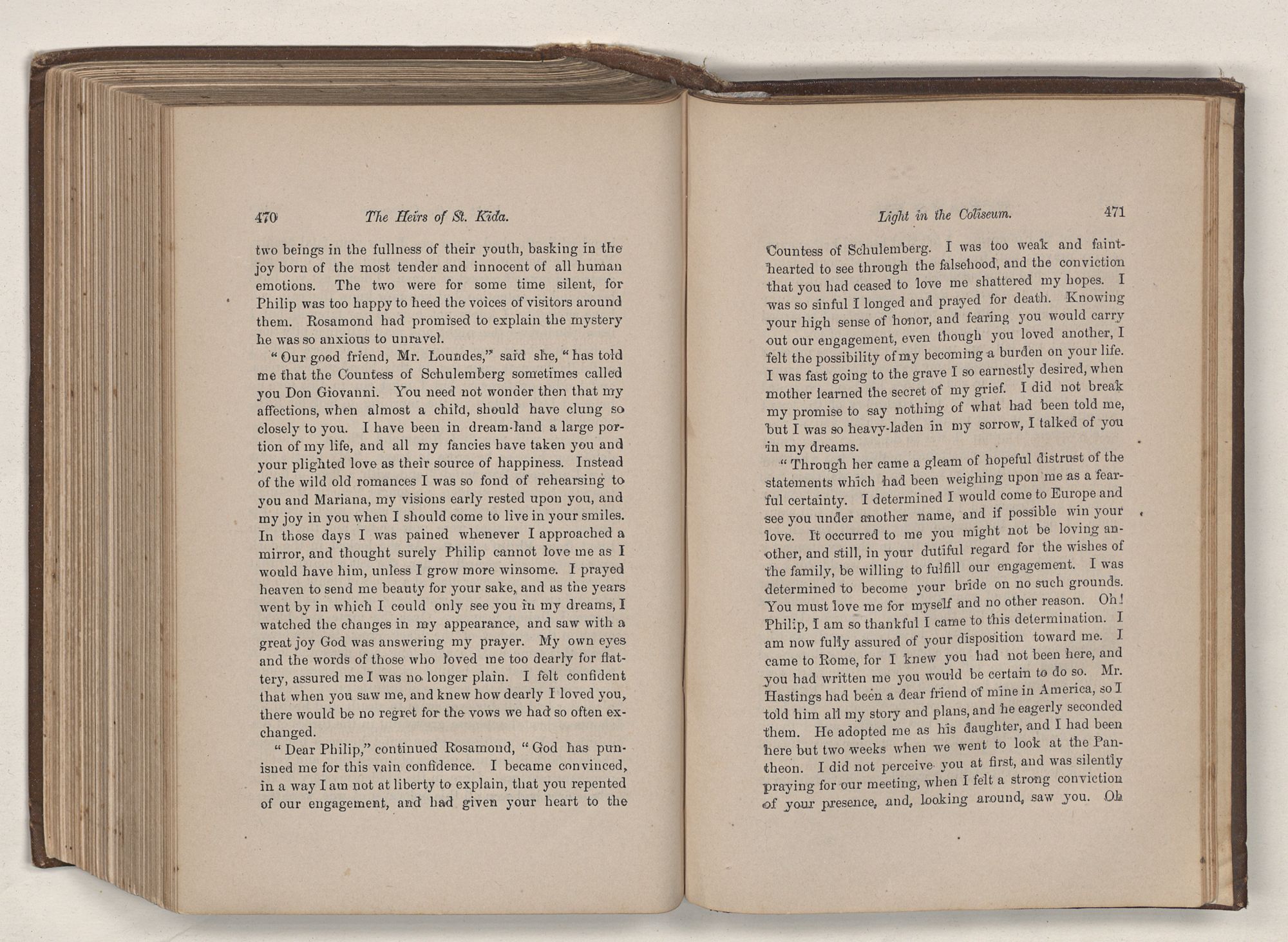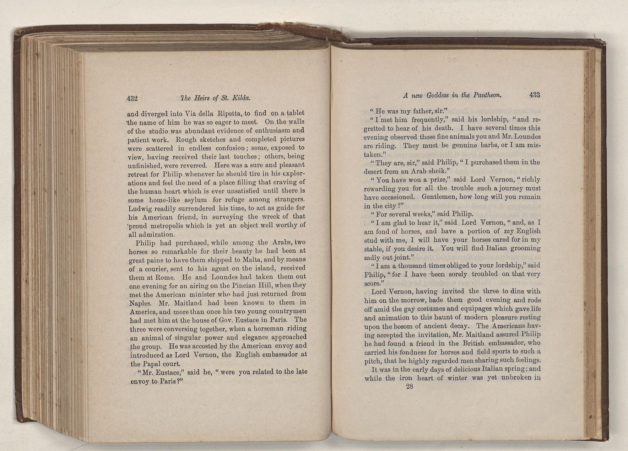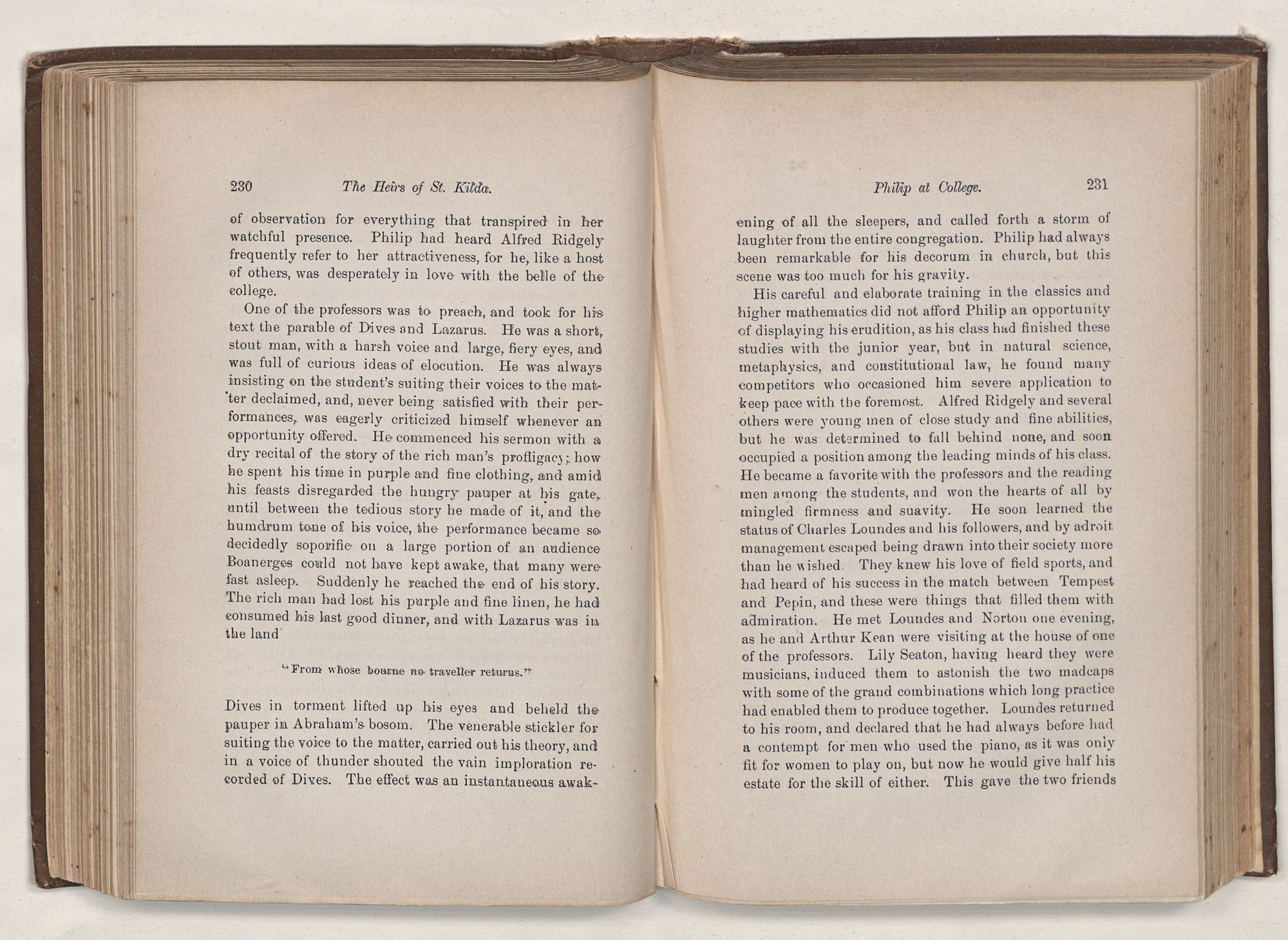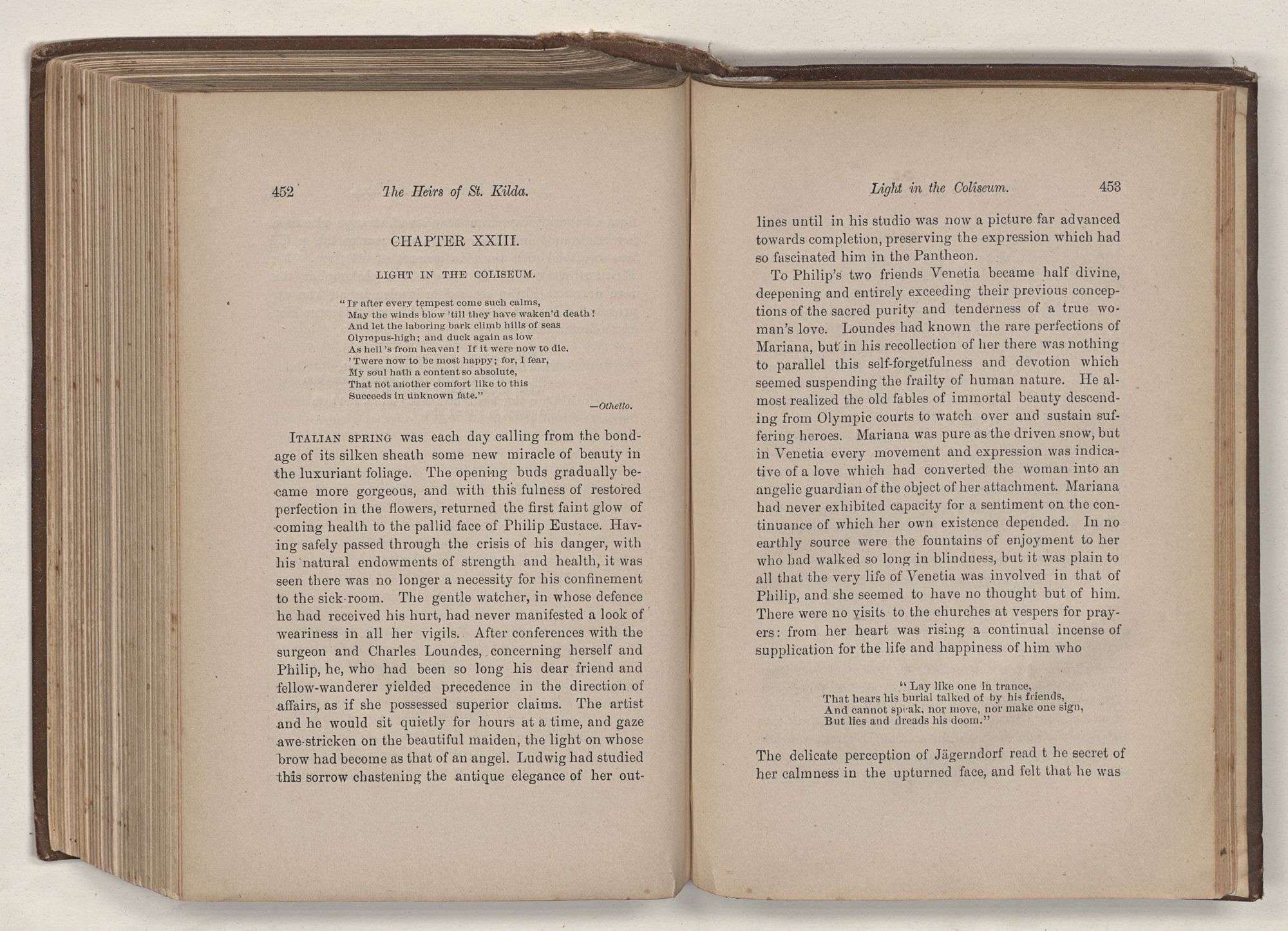 The heirs of St. Kilda; a story of the southern past. Raleigh : Edwards, Broughton, 1881 [c1880] 493 p. 21 cm.