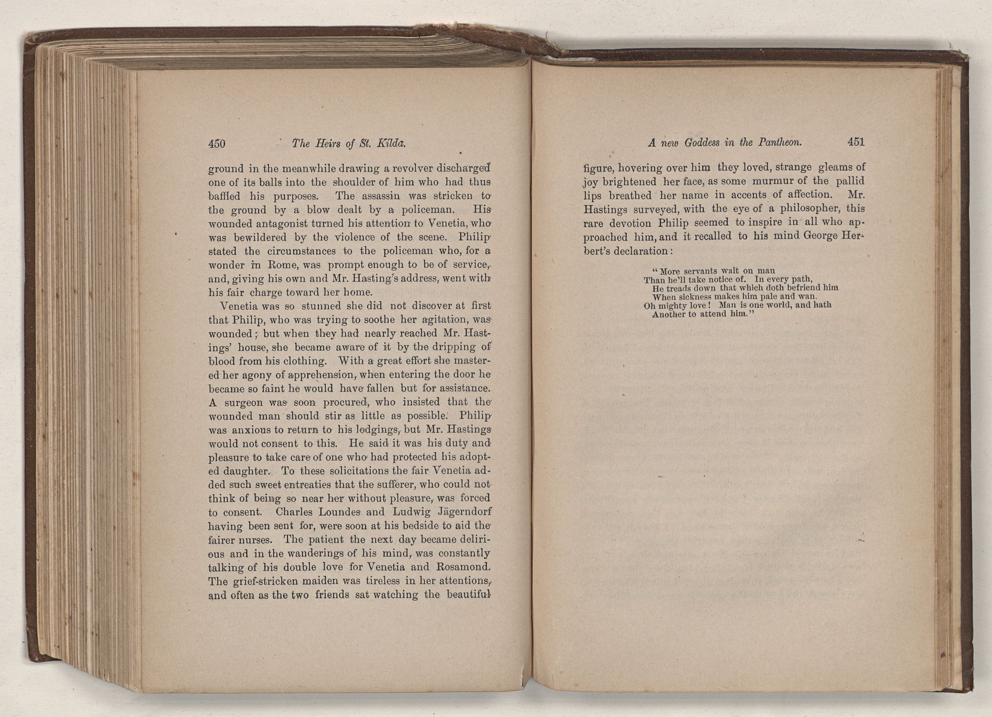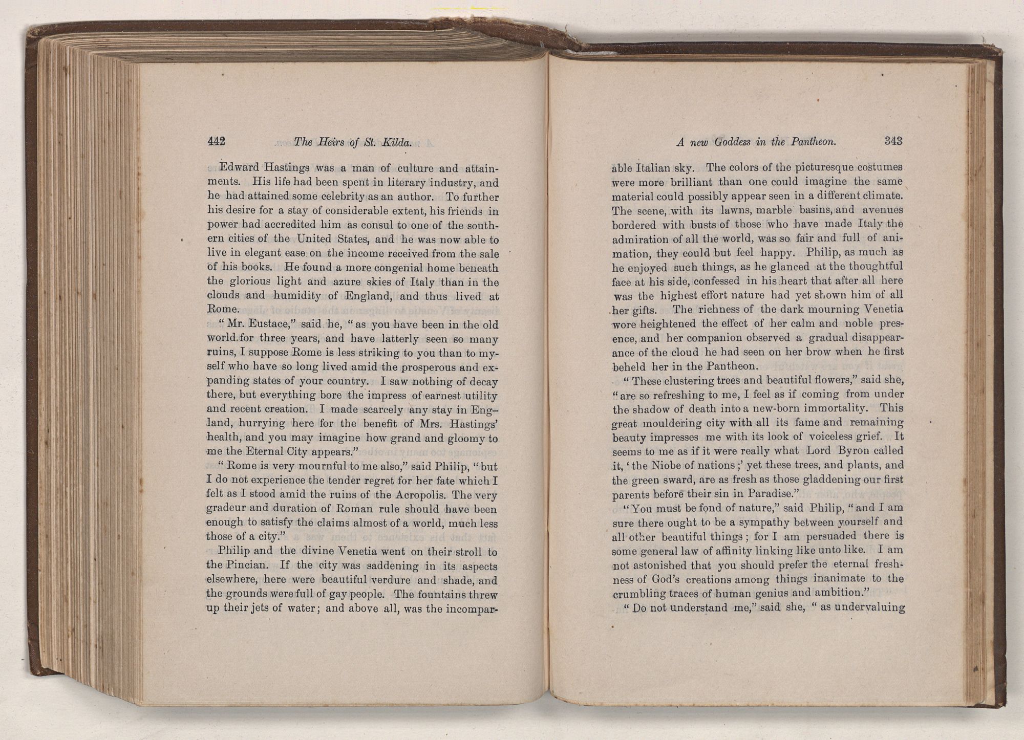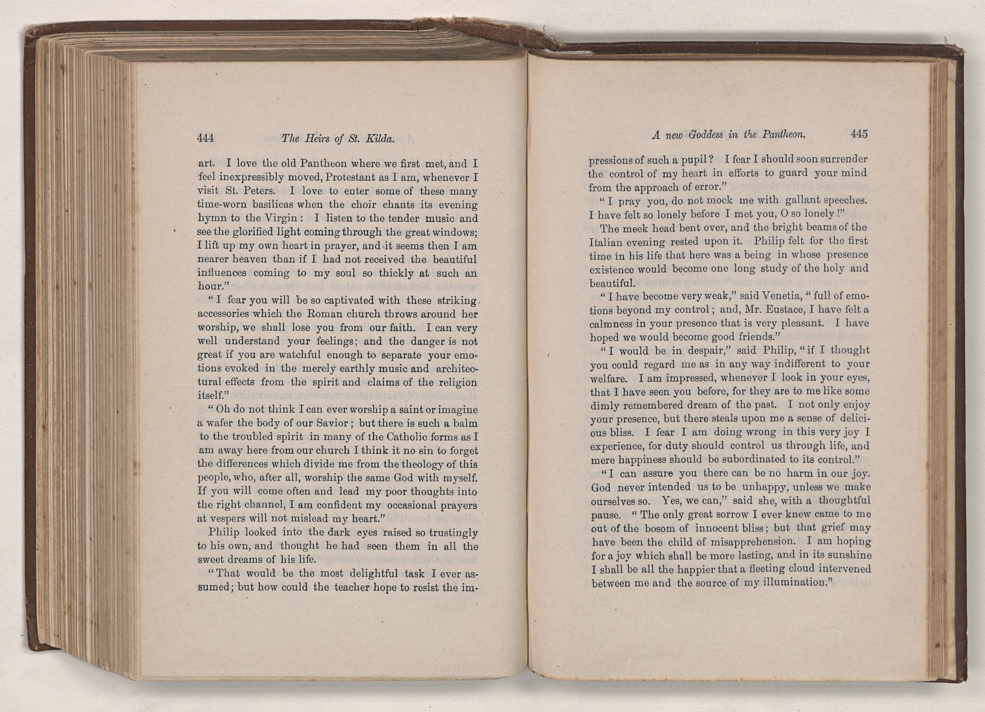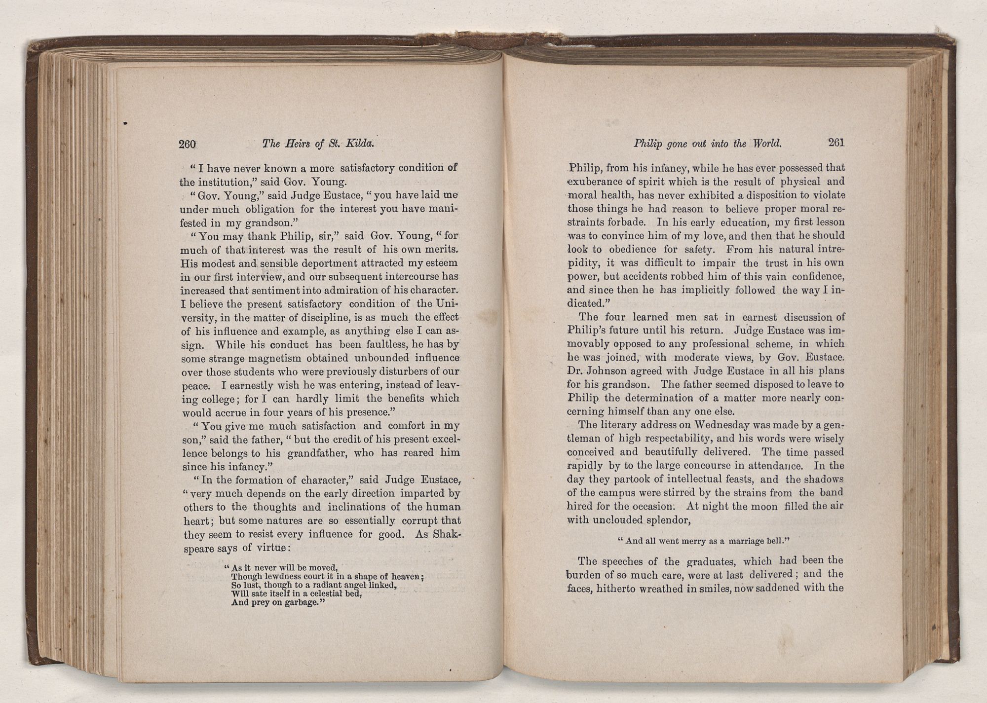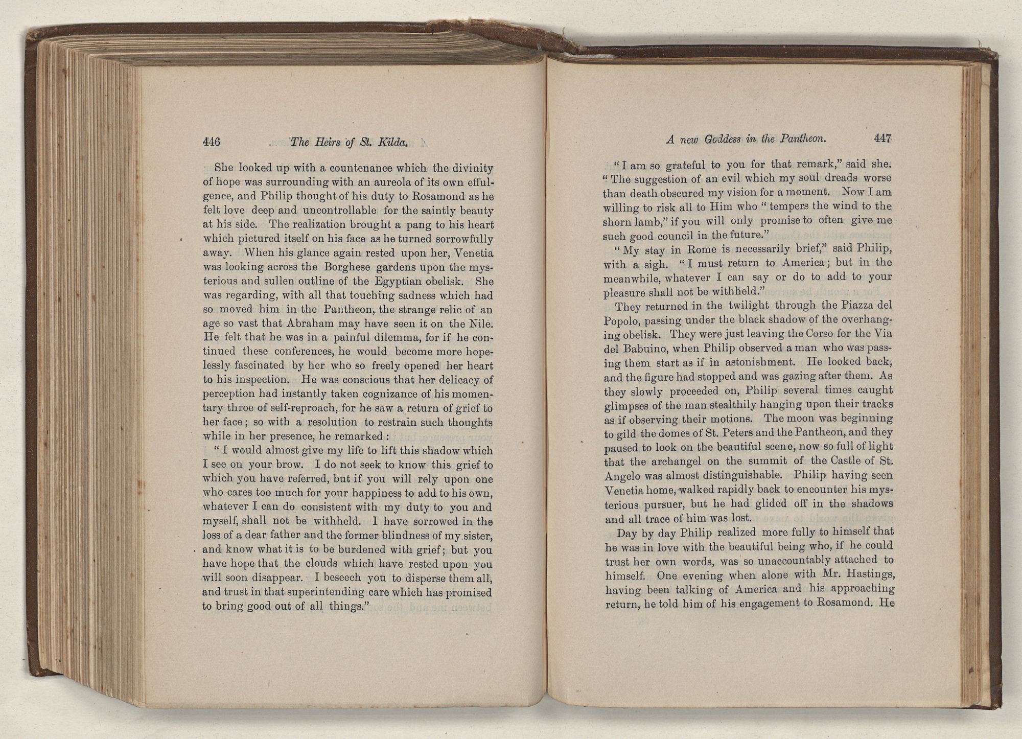 The heirs of St. Kilda; a story of the southern past. Raleigh : Edwards, Broughton, 1881 [c1880] 493 p. 21 cm.