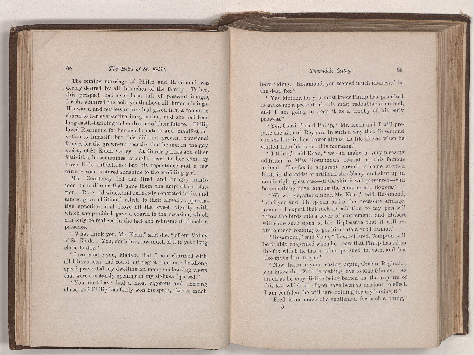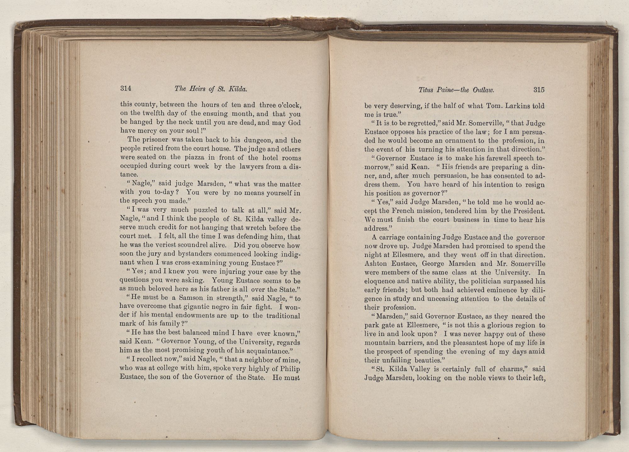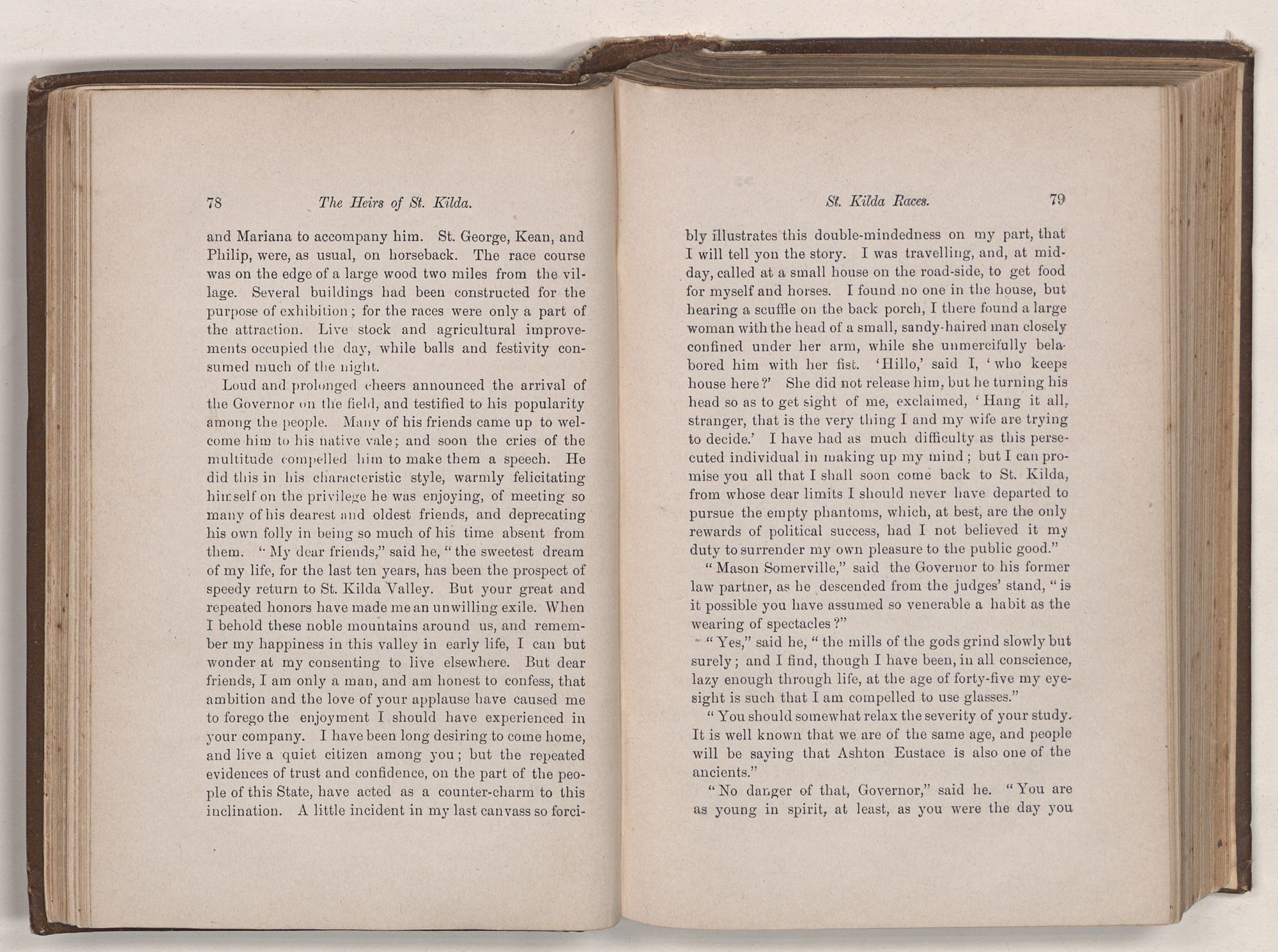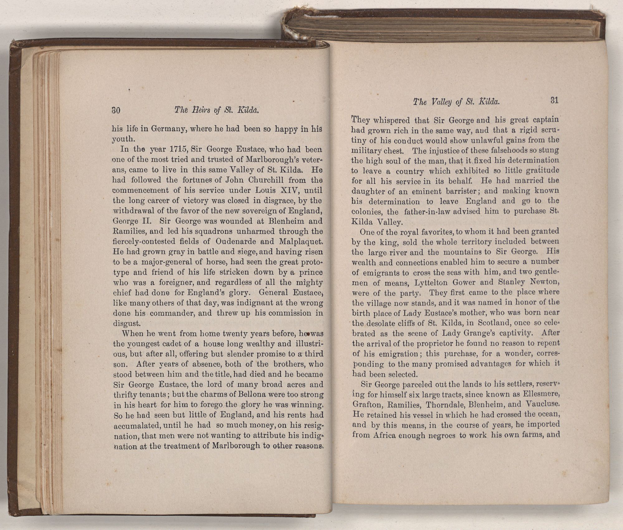 The inquisitive must determine for themselves the position of St. Kilda Valley, and the originals of the Eustace family. There are many witnesses to attest the fidelity of the portraits, and that nothing has been set down in malice will be patent to every reader.