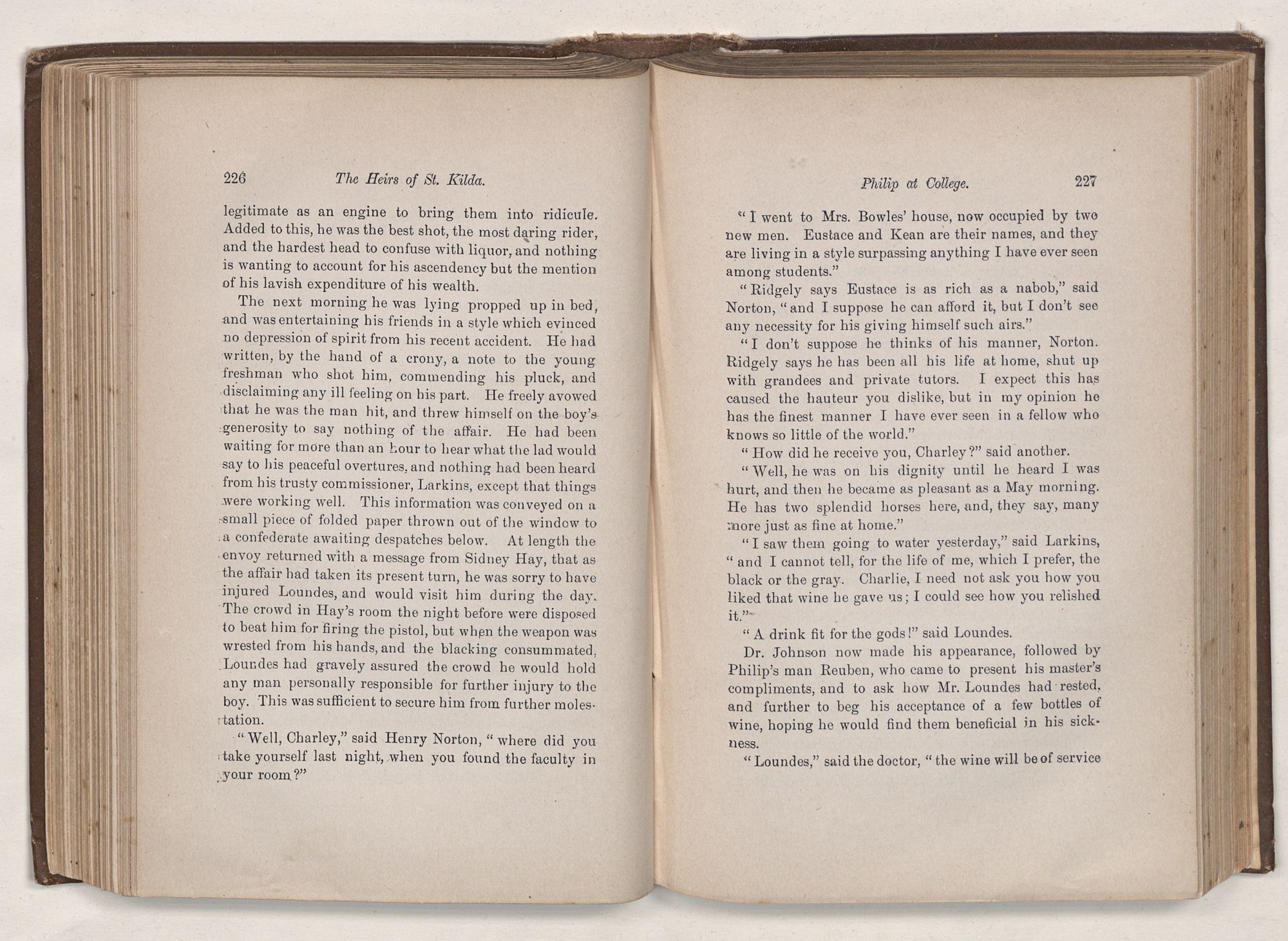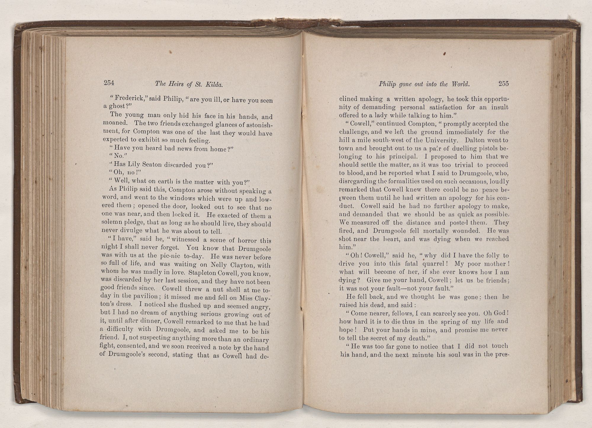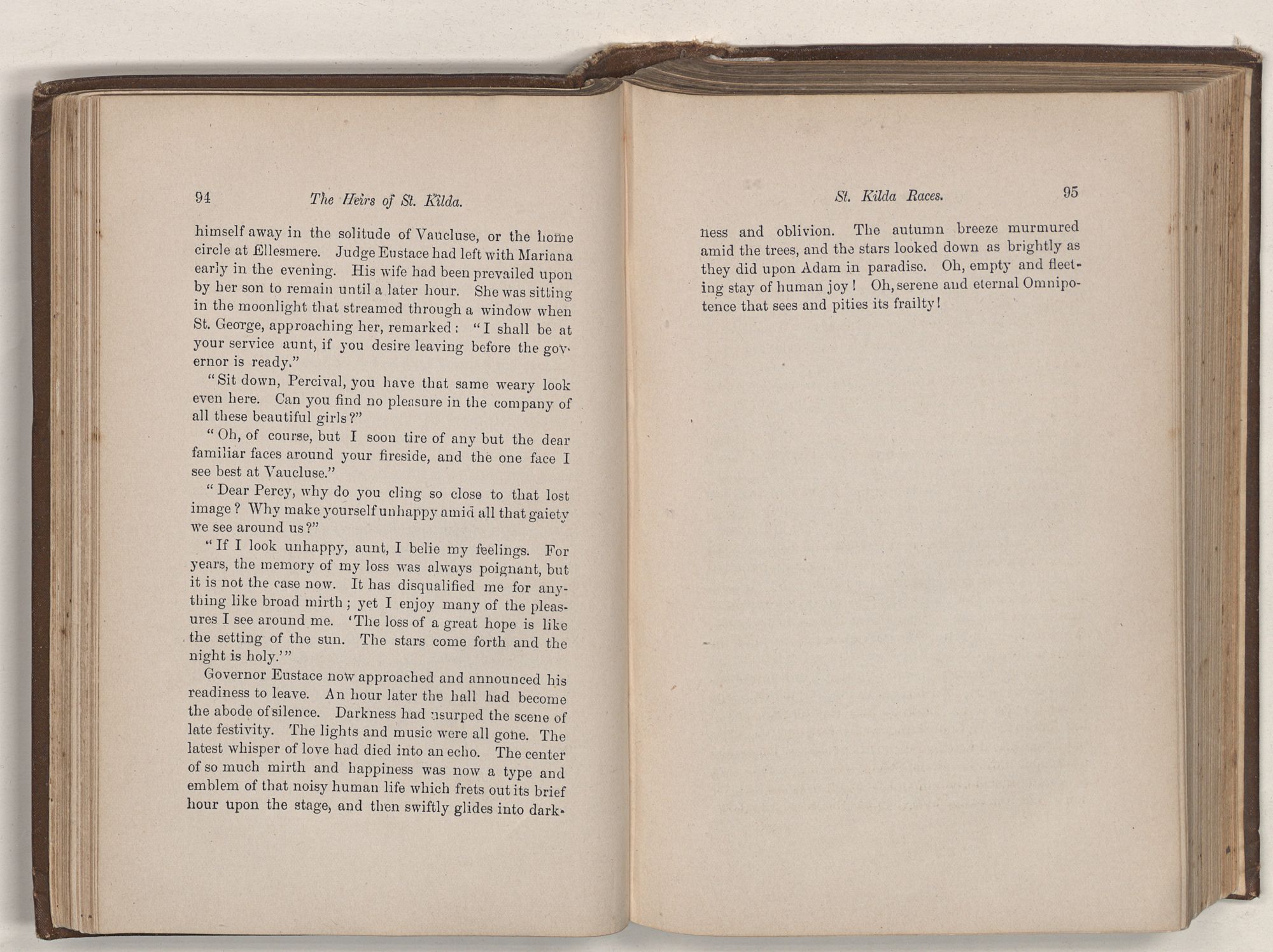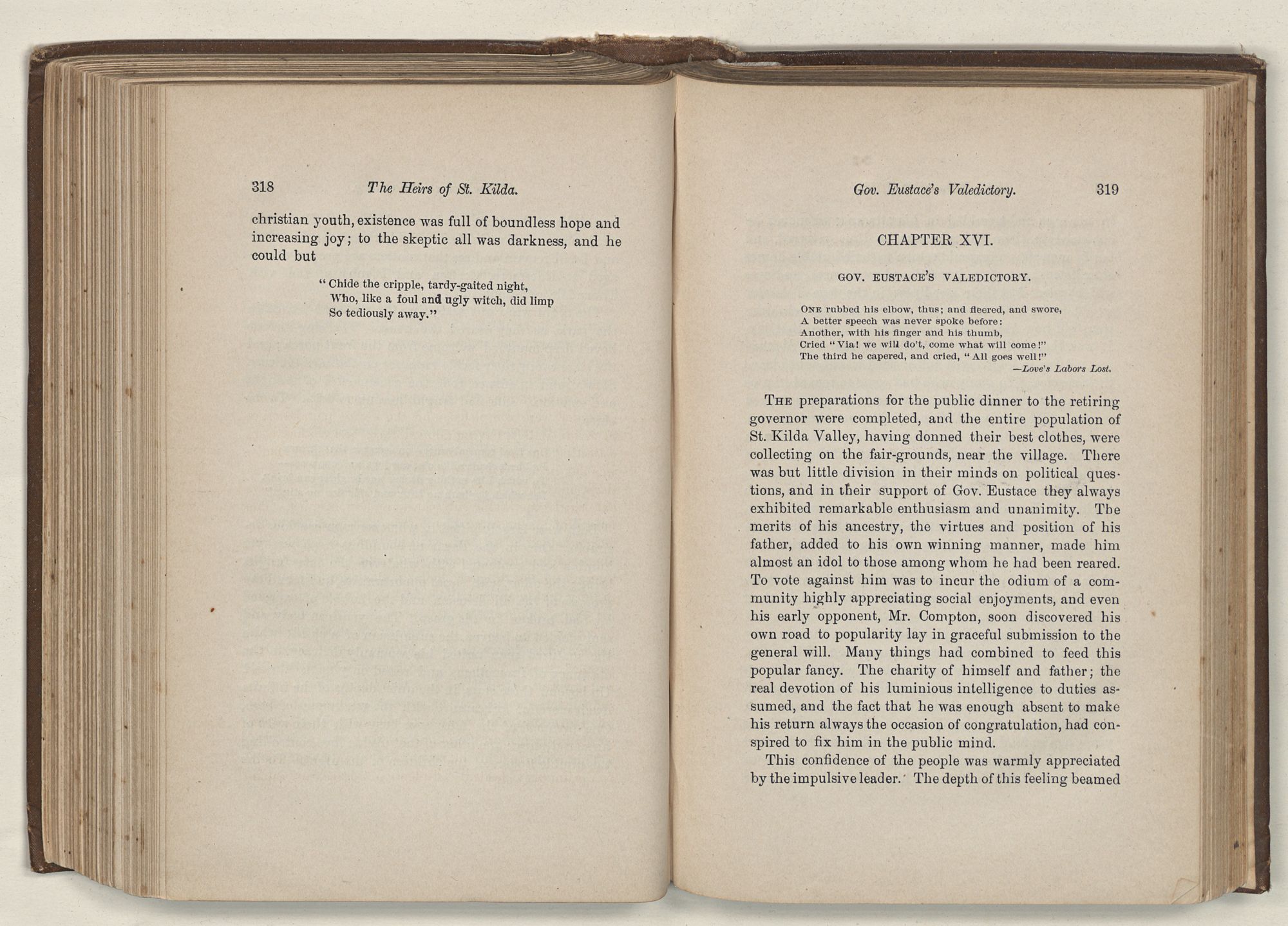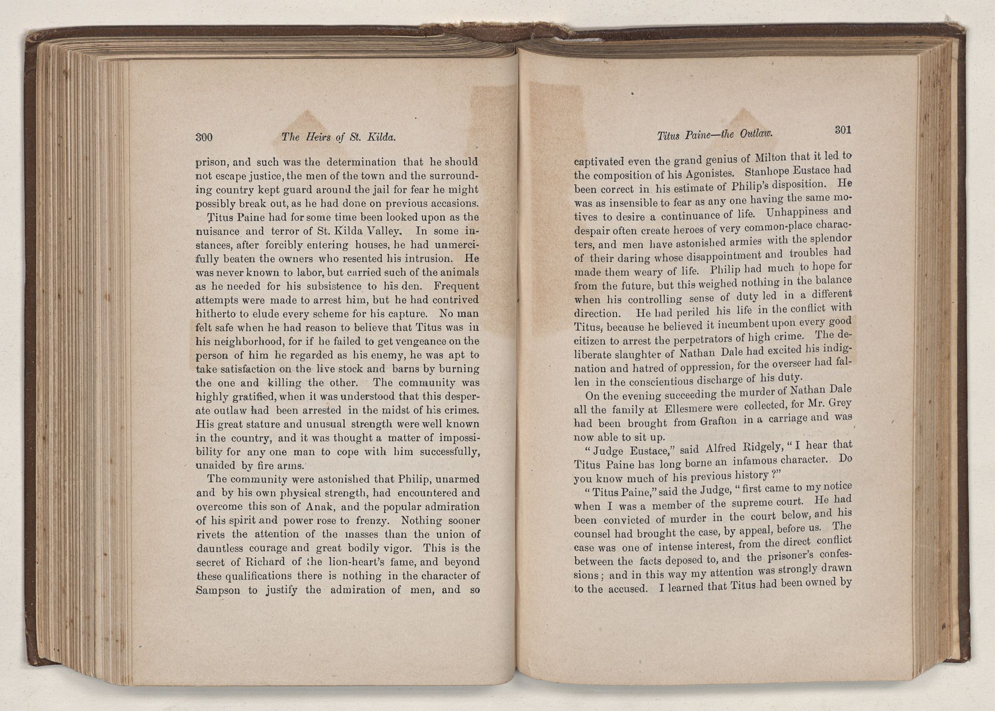 The inquisitive must determine for themselves the position of St. Kilda Valley, and the originals of the Eustace family. There are many witnesses to attest the fidelity of the portraits, and that nothing has been set down in malice will be patent to every reader.