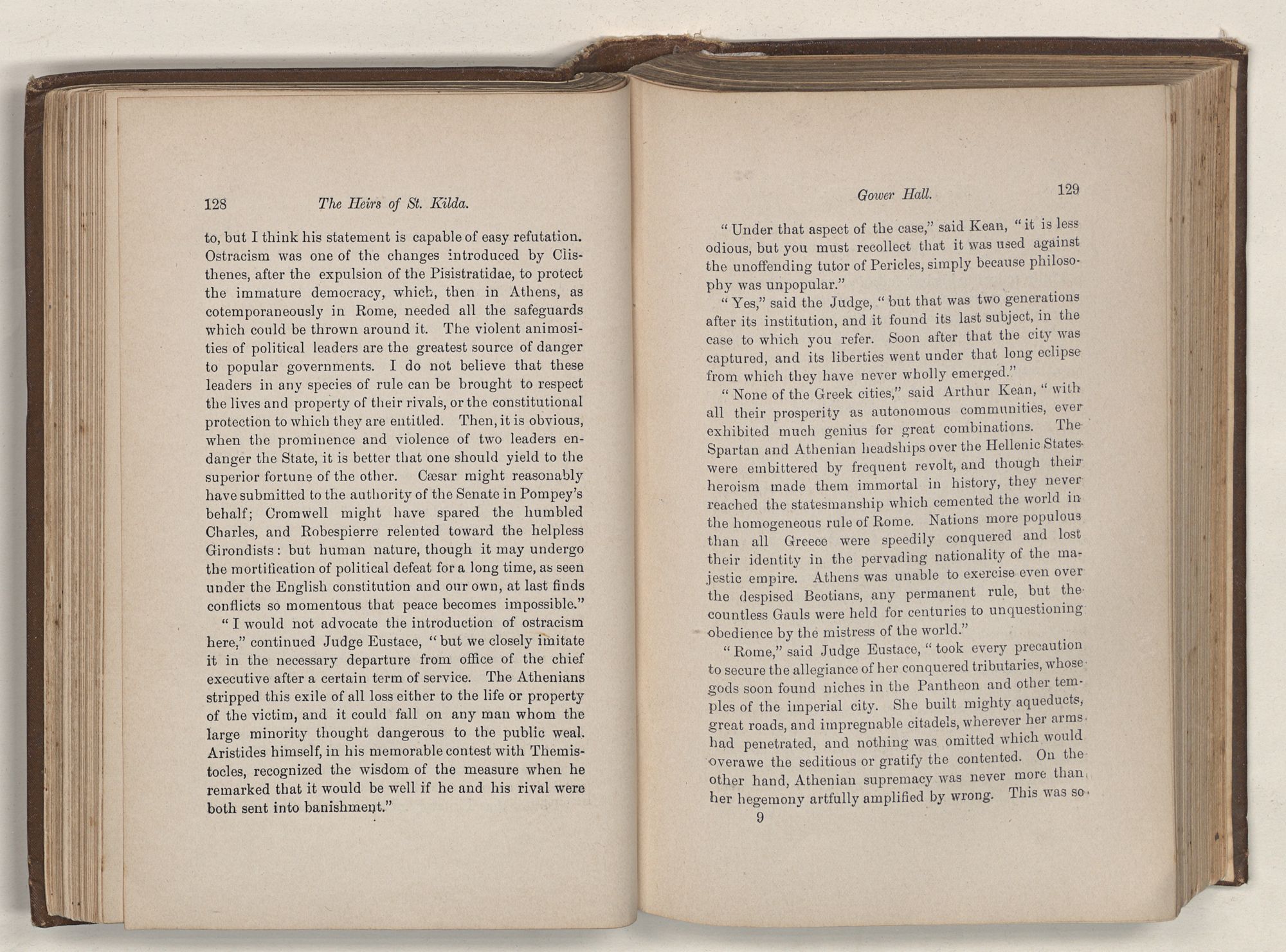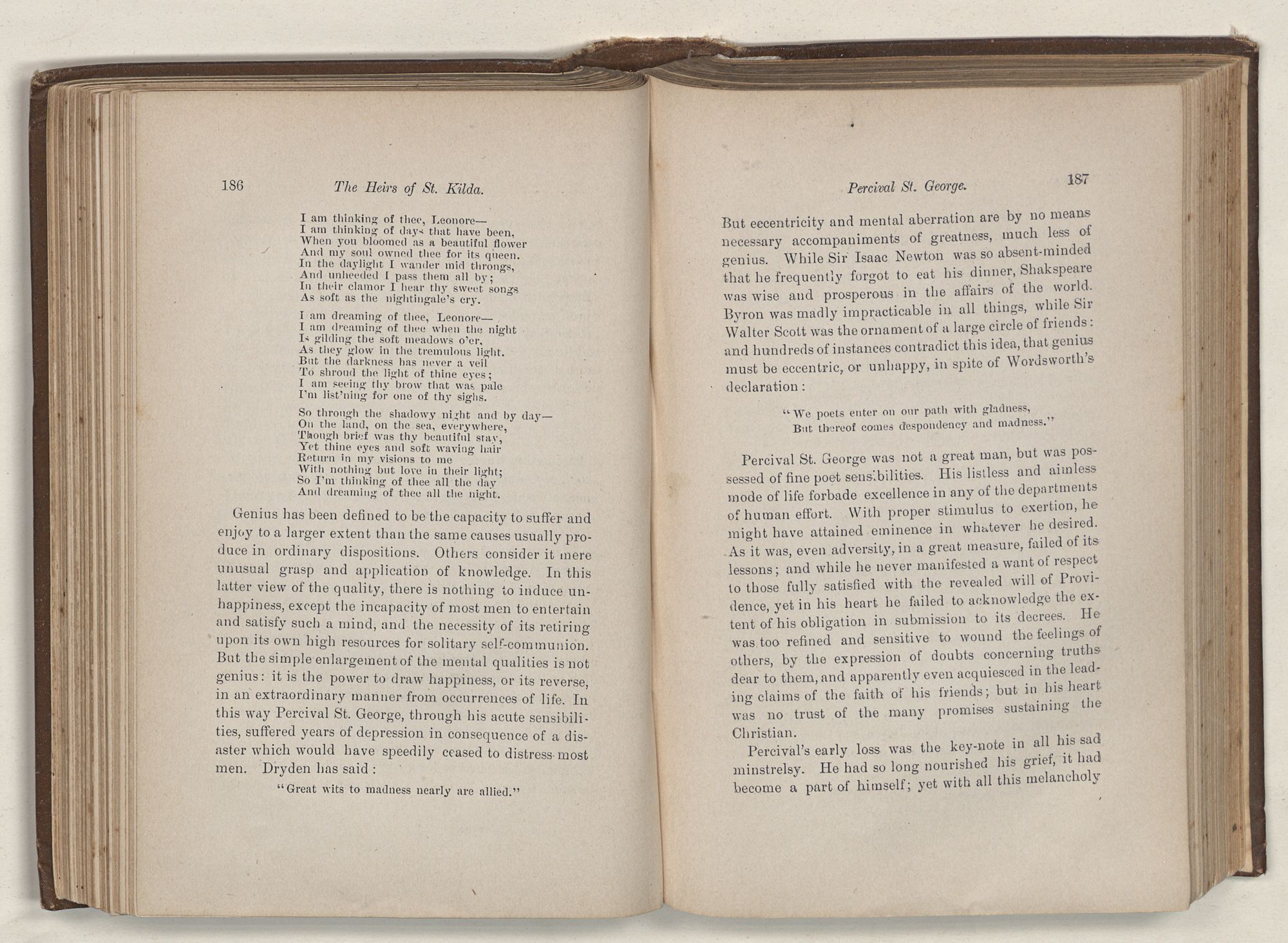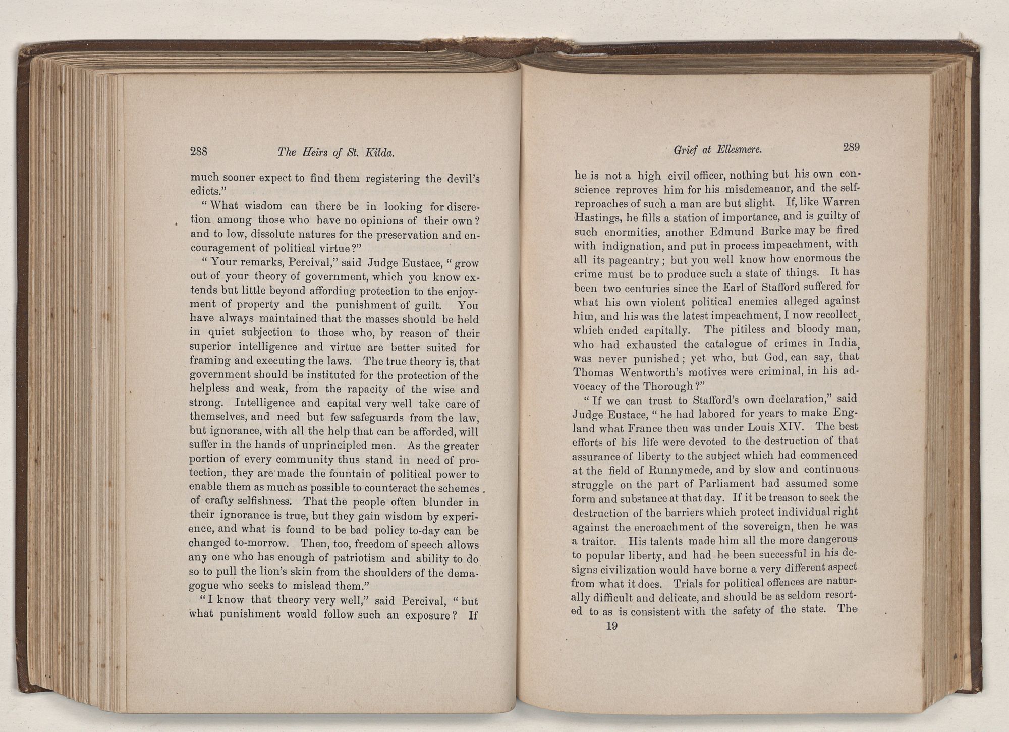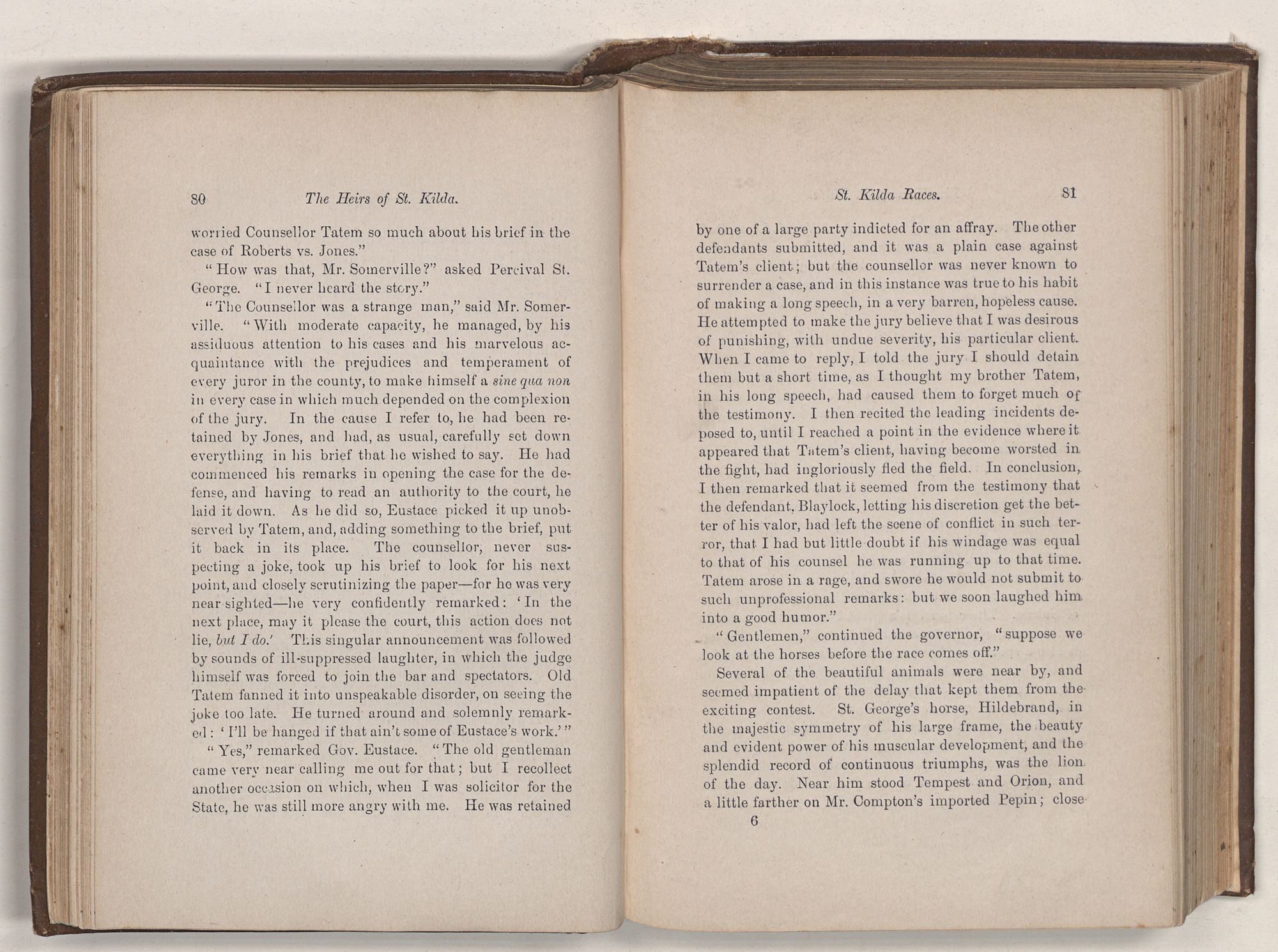 The inquisitive must determine for themselves the position of St. Kilda Valley, and the originals of the Eustace family. There are many witnesses to attest the fidelity of the portraits, and that nothing has been set down in malice will be patent to every reader.