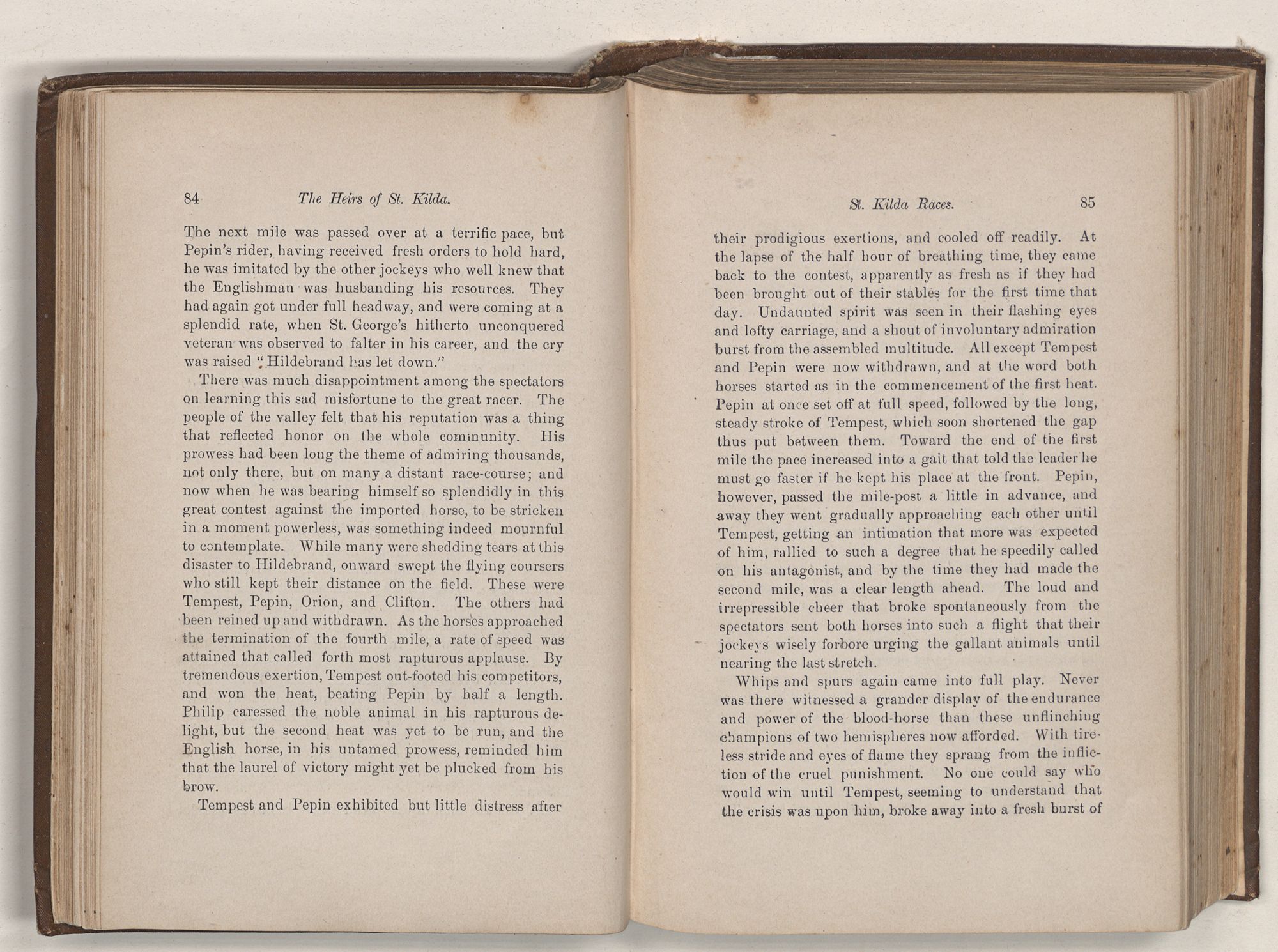 "If it be true," said Kean, "that Pepin was well backed for the Goodwood Cup this year, it proves that among competent judges he was regarded as one of the best English horses, and that is saying very much for him. I have seen most of the European studs, and my deliberate opinion is that the English thoroughbred is the sum and result of the different excellencies of all the breeds. So, Mr. St. George, you must look well to it in this new contest; your horse will have to do all in his power to maintain his ascendency against this new competitor."
