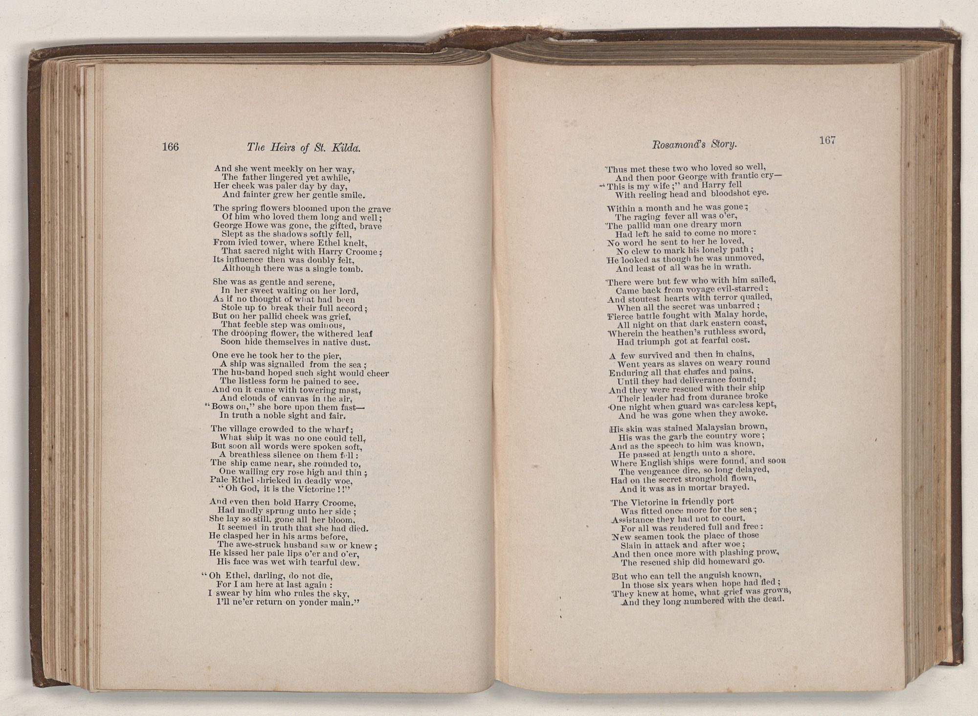 “That all this famous antique historyOf some, the abundance of an idle brainWill judged be, and painted forgeryRather than matter of just memory;Sith none that breathes living air doth knowWhere is that happy land of FaeryWhich I so much do vaunt yet no where show.”The inquisitive must determine for themselves the position of St. Kilda Valley, and the originals of the Eustace family. There are many witnesses to attest the fidelity of the portraits, and that nothing has been set down in malice will be patent to every reader.